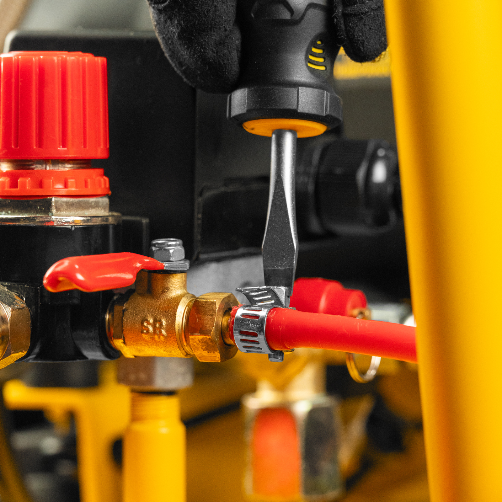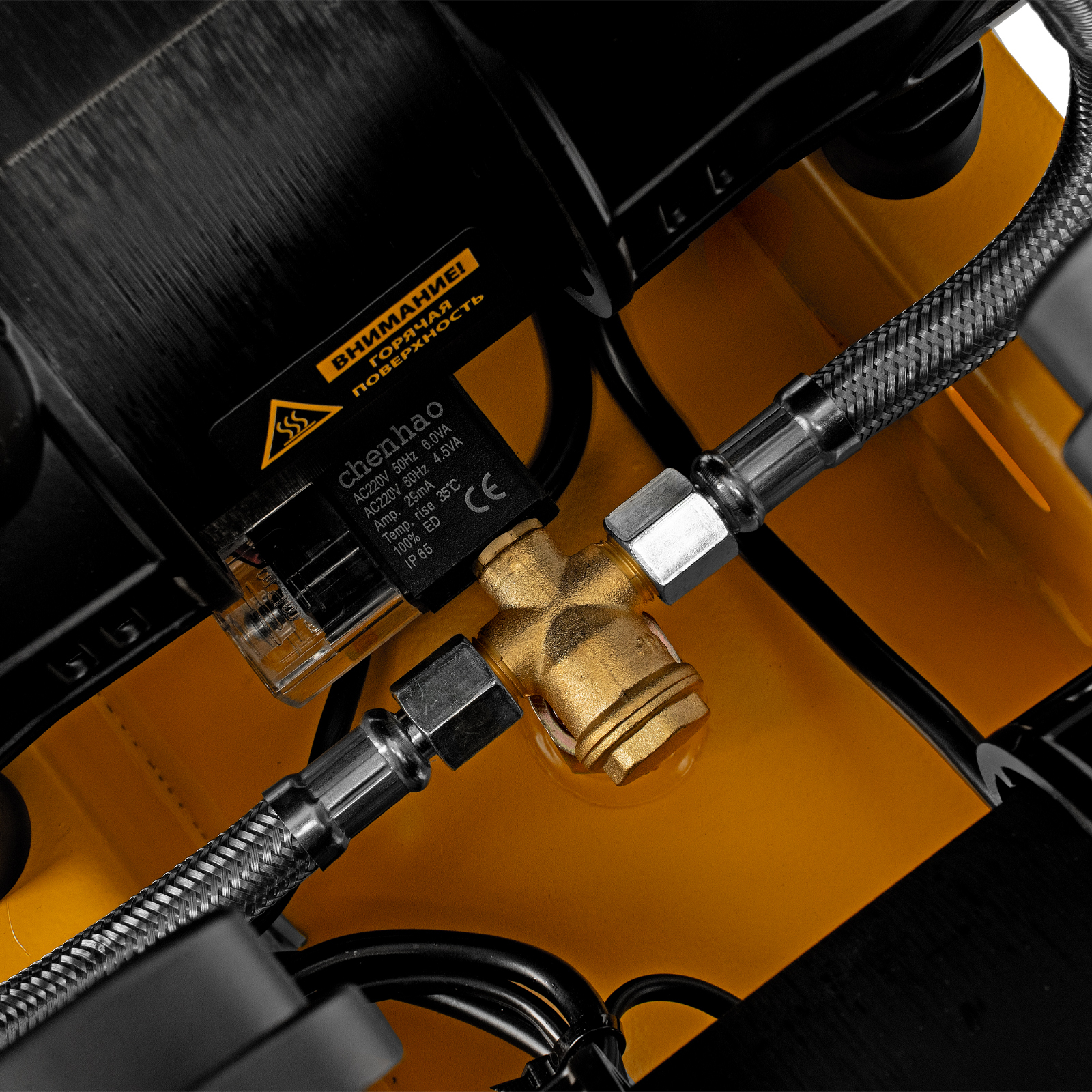 - Безопасность — в случае превышения максимального давления в ресивере срабатывает предохранительный клапан, что позволяет избежать аварийных ситуаций.