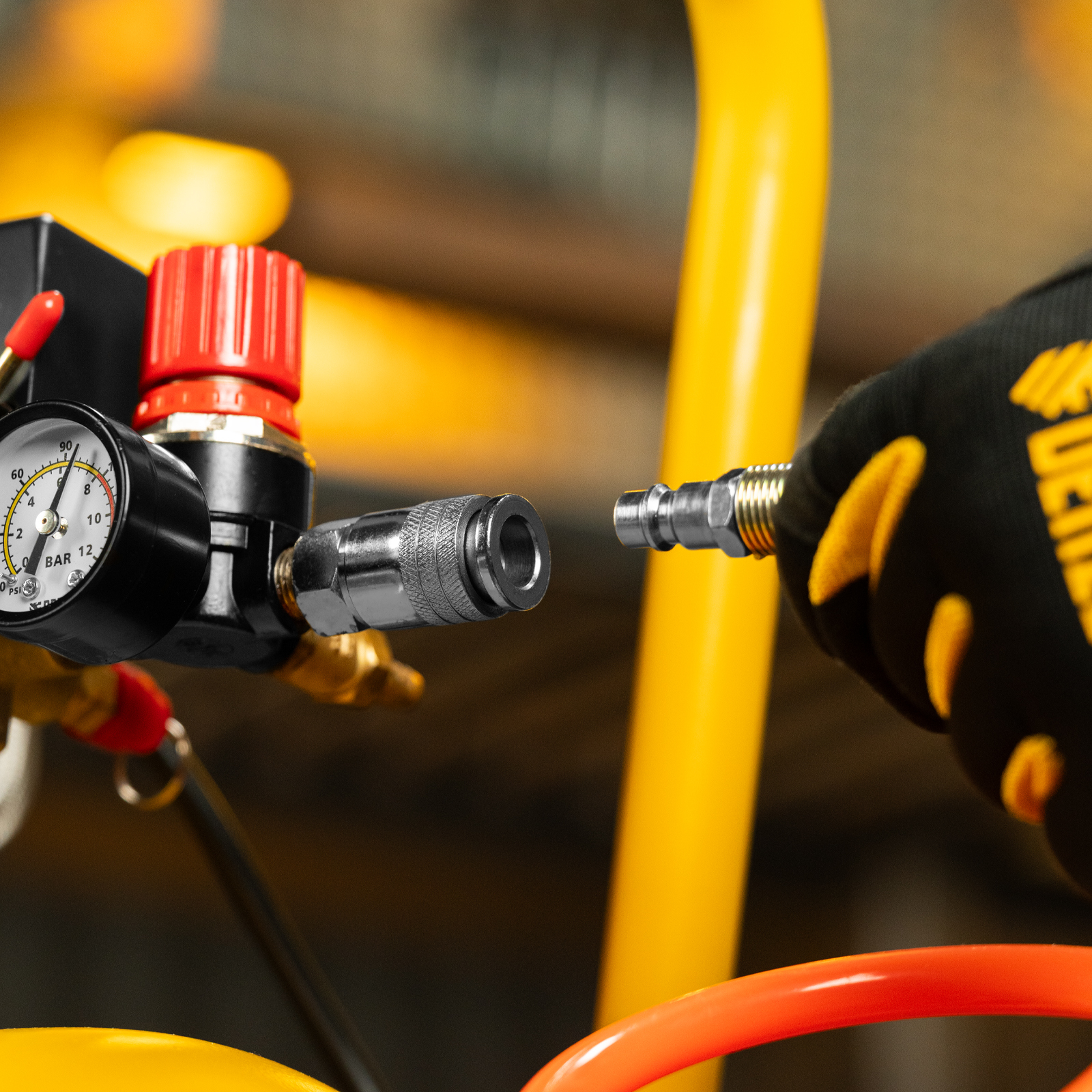 - Простое присоединение — благодаря быстросъемному коннектору подключение пневмоинструмента не занимает много времени.
