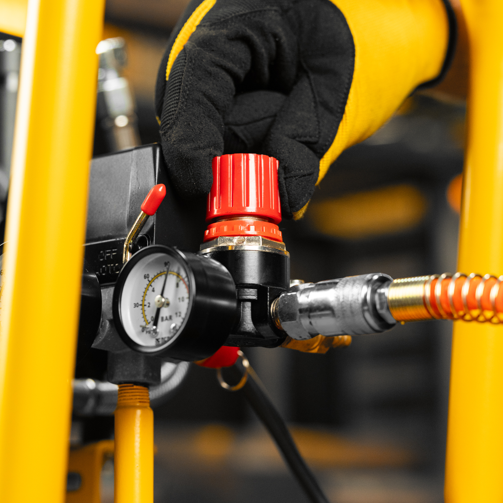 - Регулировка давления — можно установить необходимый уровень в зависимости от подключаемого инструмента.