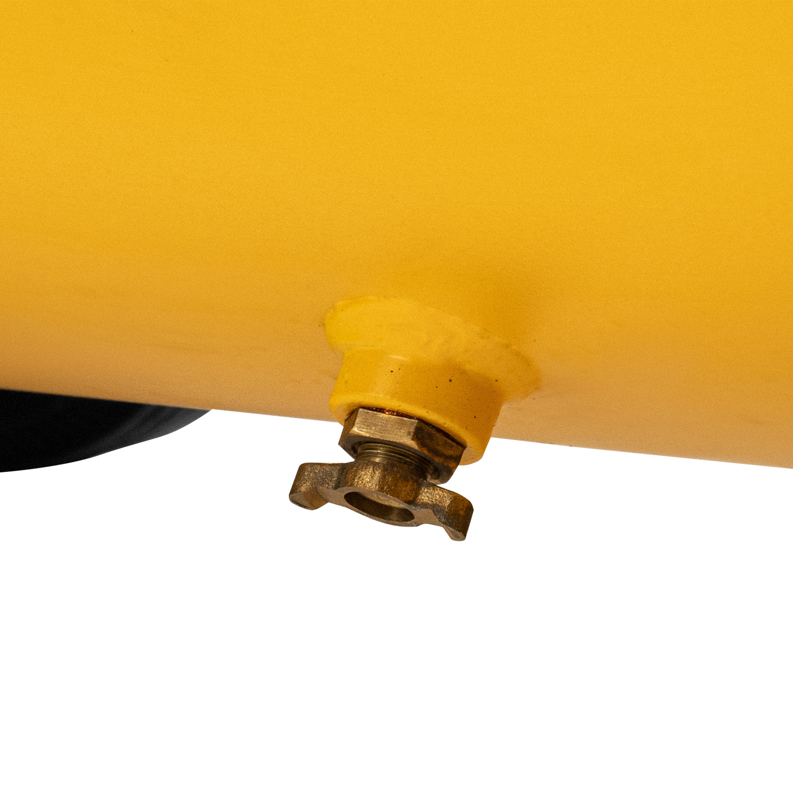 - Мобильность — 2 колеса и транспортировочная рукоятка упрощают перемещение компрессора по рабочей зоне.