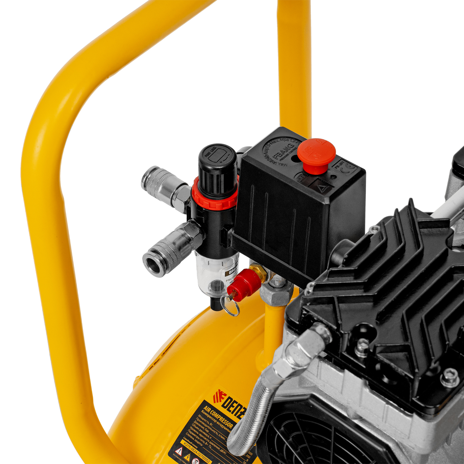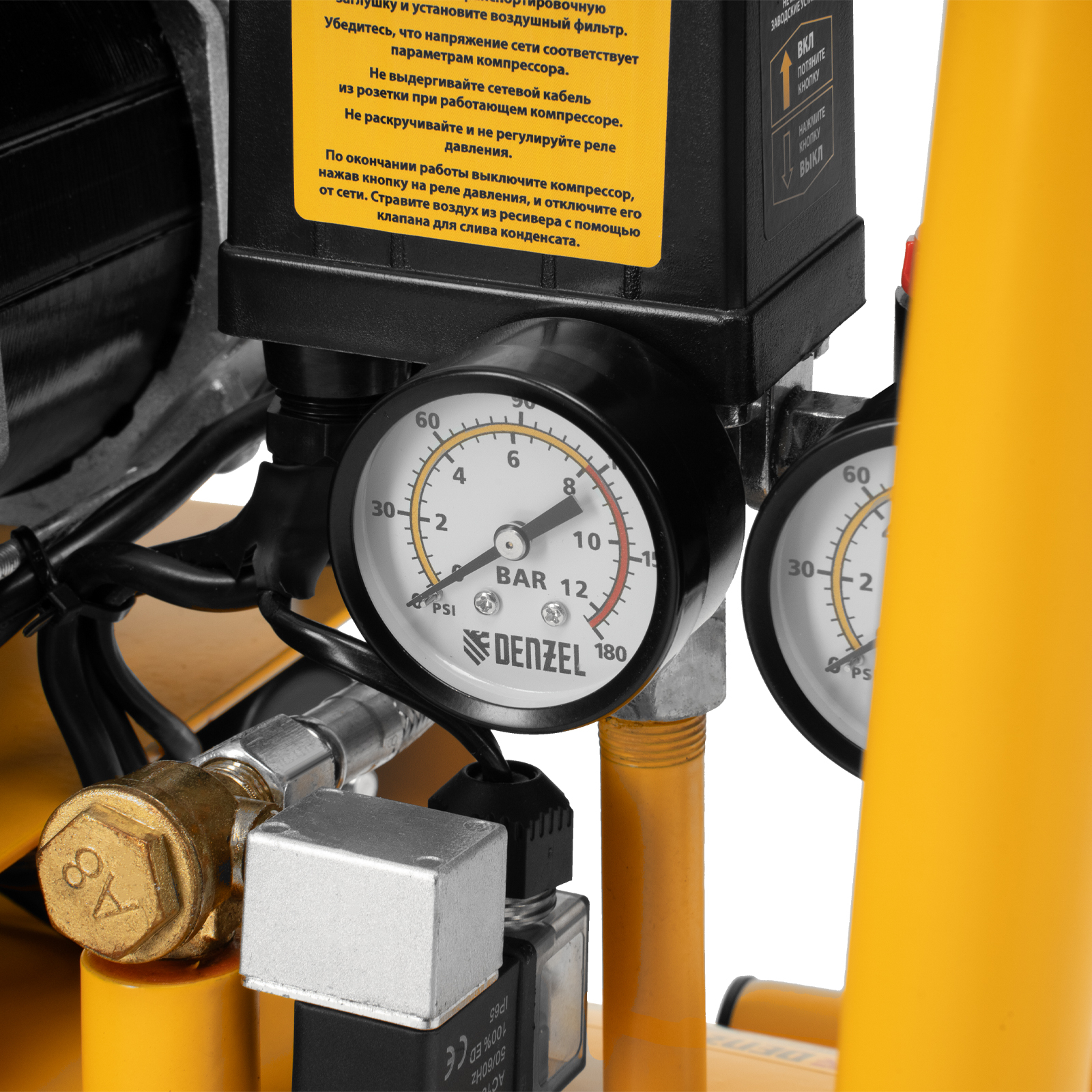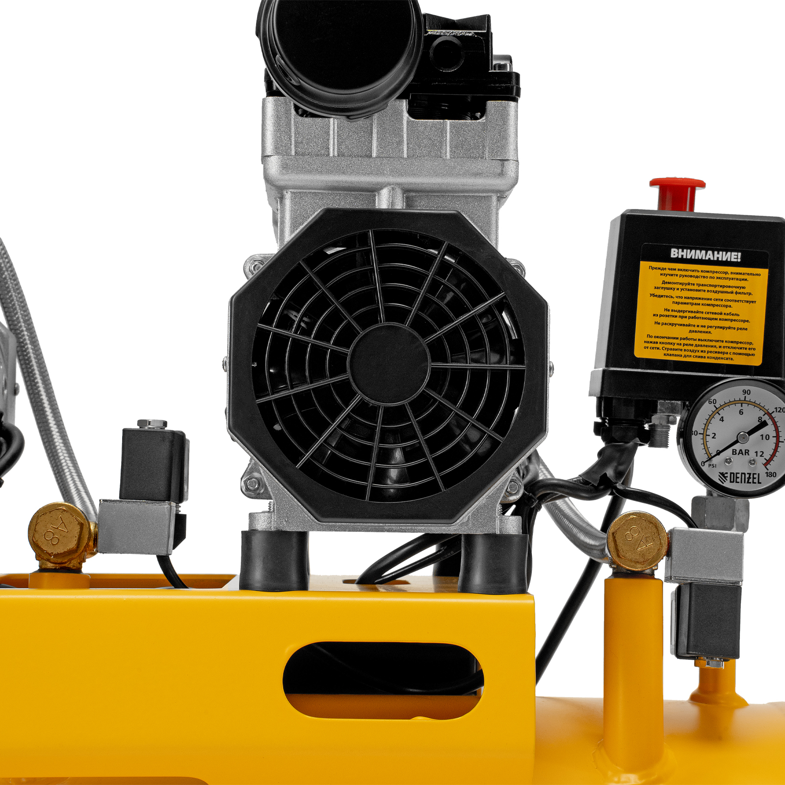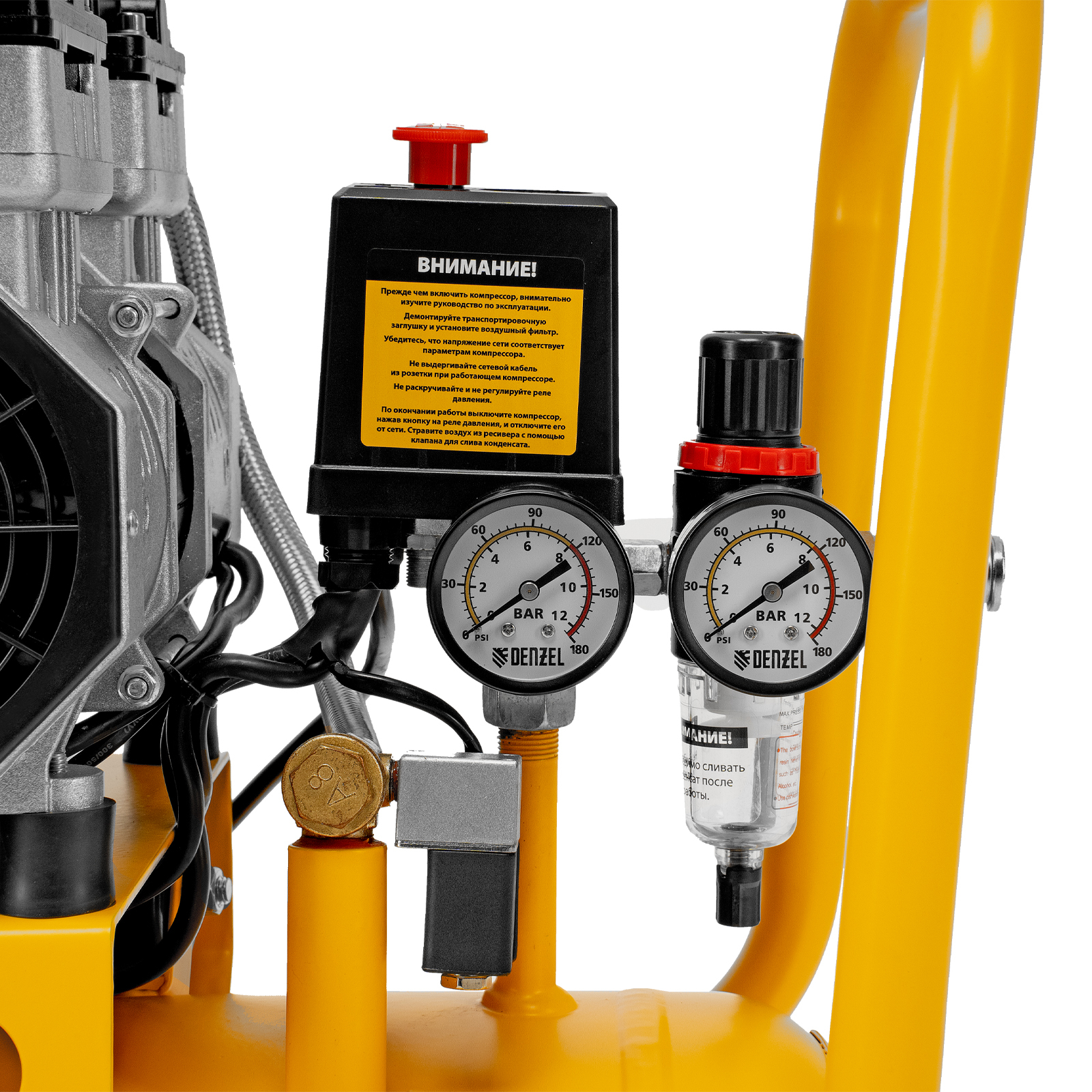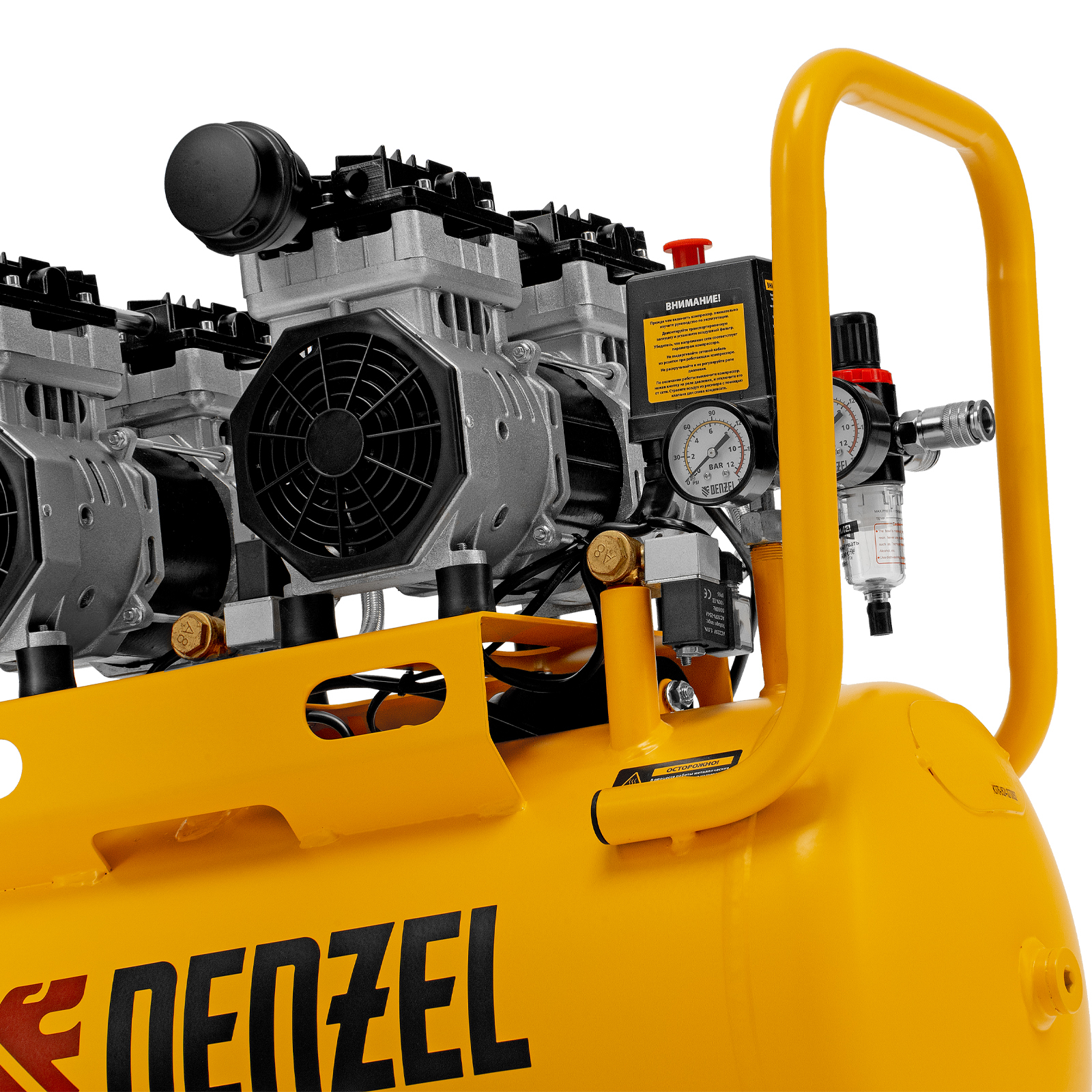 Компрессор безмасляный, малошумный DLS 1500/50, 1500 ВТ, 2x750, 50 л, 260 л/мин Denzel