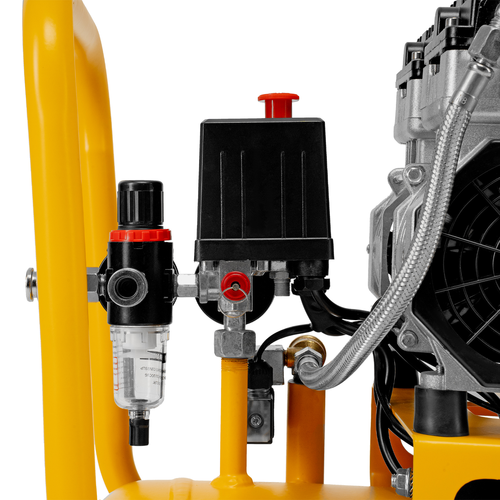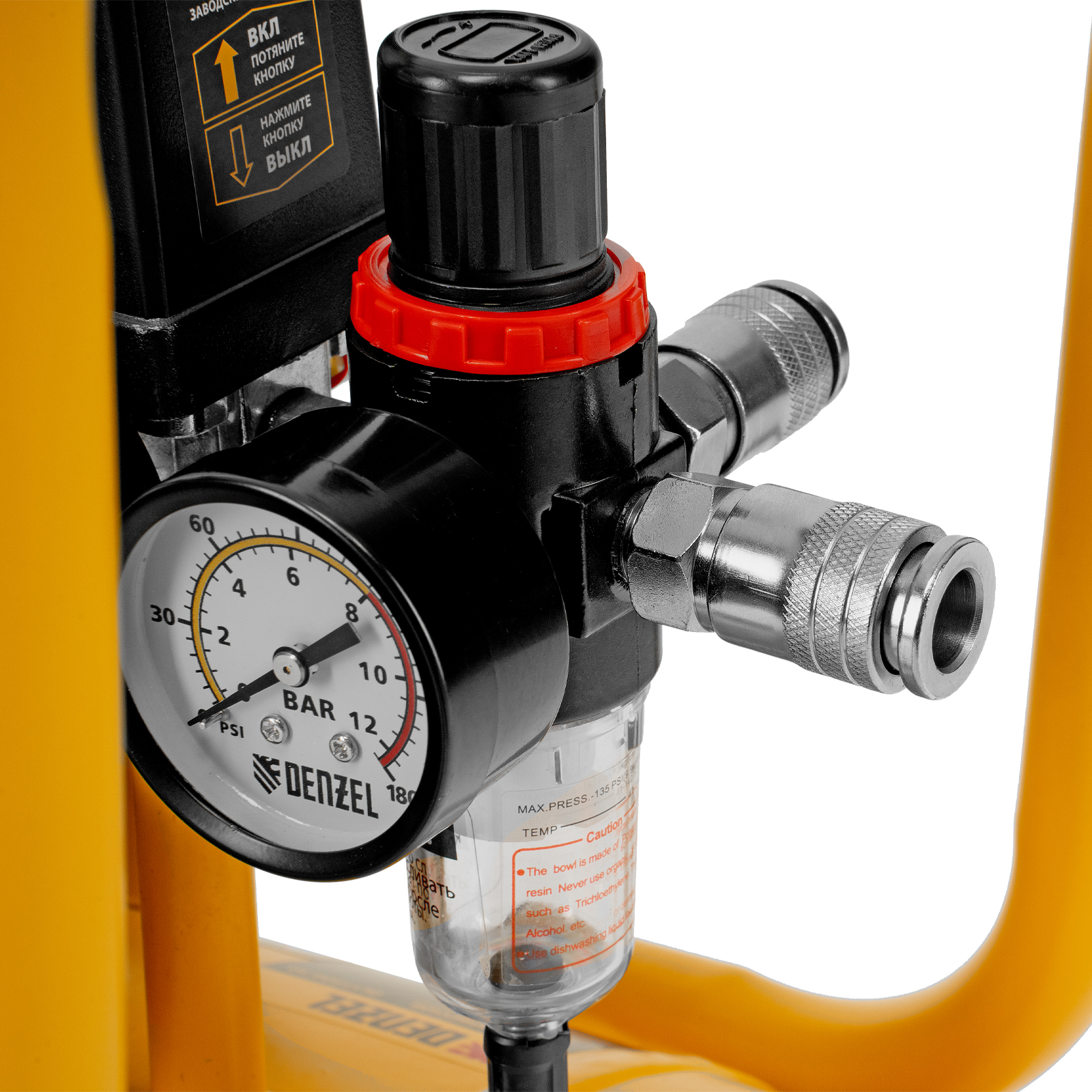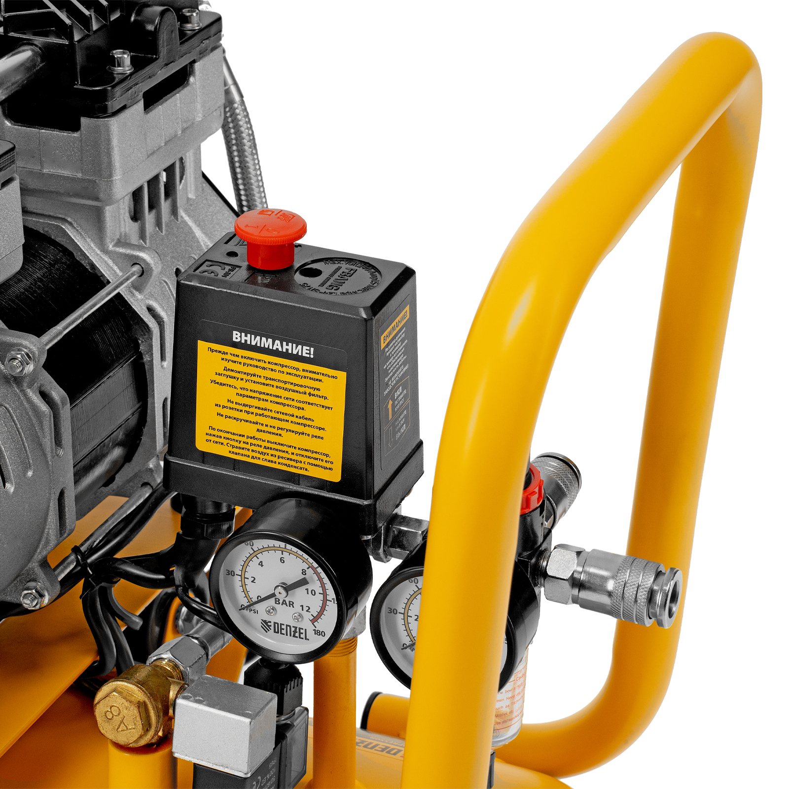 Безмасляный малошумный компрессор Denzel DLS 1500/50 58027 мощностью 1500 (2 х 750) Вт, объемом ресивера 50 л и производительностью 260 л/мин предназначен для обеспечения пневмоинструмента сжатым воздухом, подаваемым под давлением до 8 бар. Позволяет подключить пневматический заклепочник, дрель и т.д. Оптимален для работы с краскопультом и для продувки электронных компонентов, т. к. в сжатом воздухе отсутствуют частицы масла. Компрессор пригодится в мастерской, гараже, на строительной площадке.