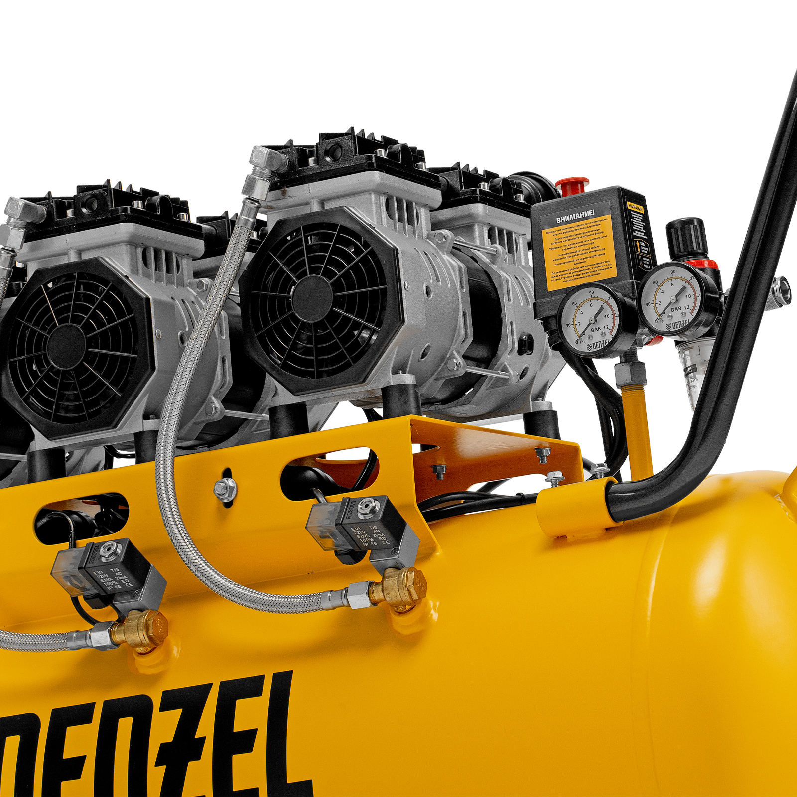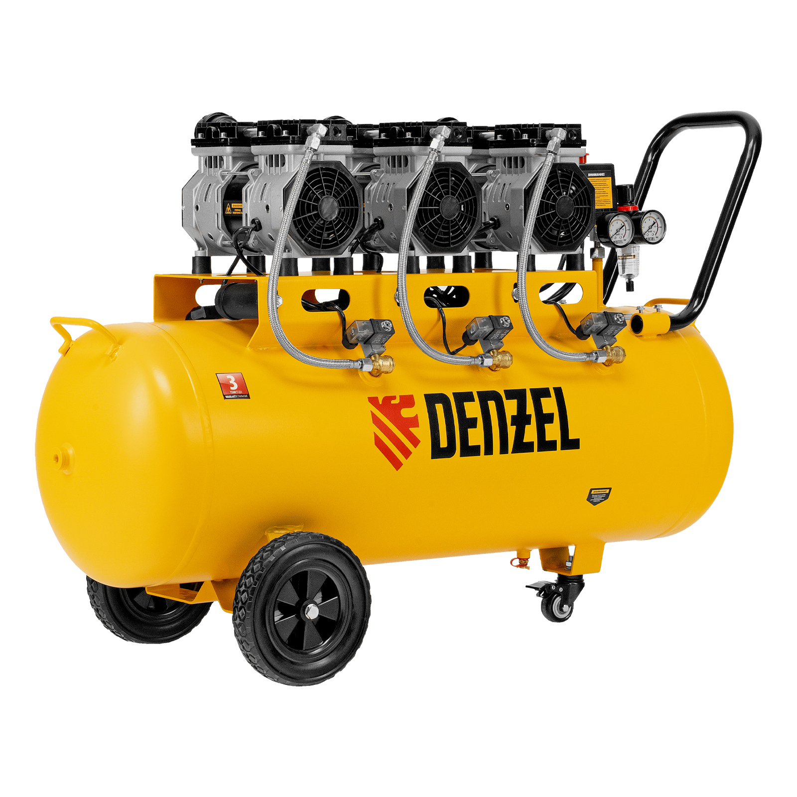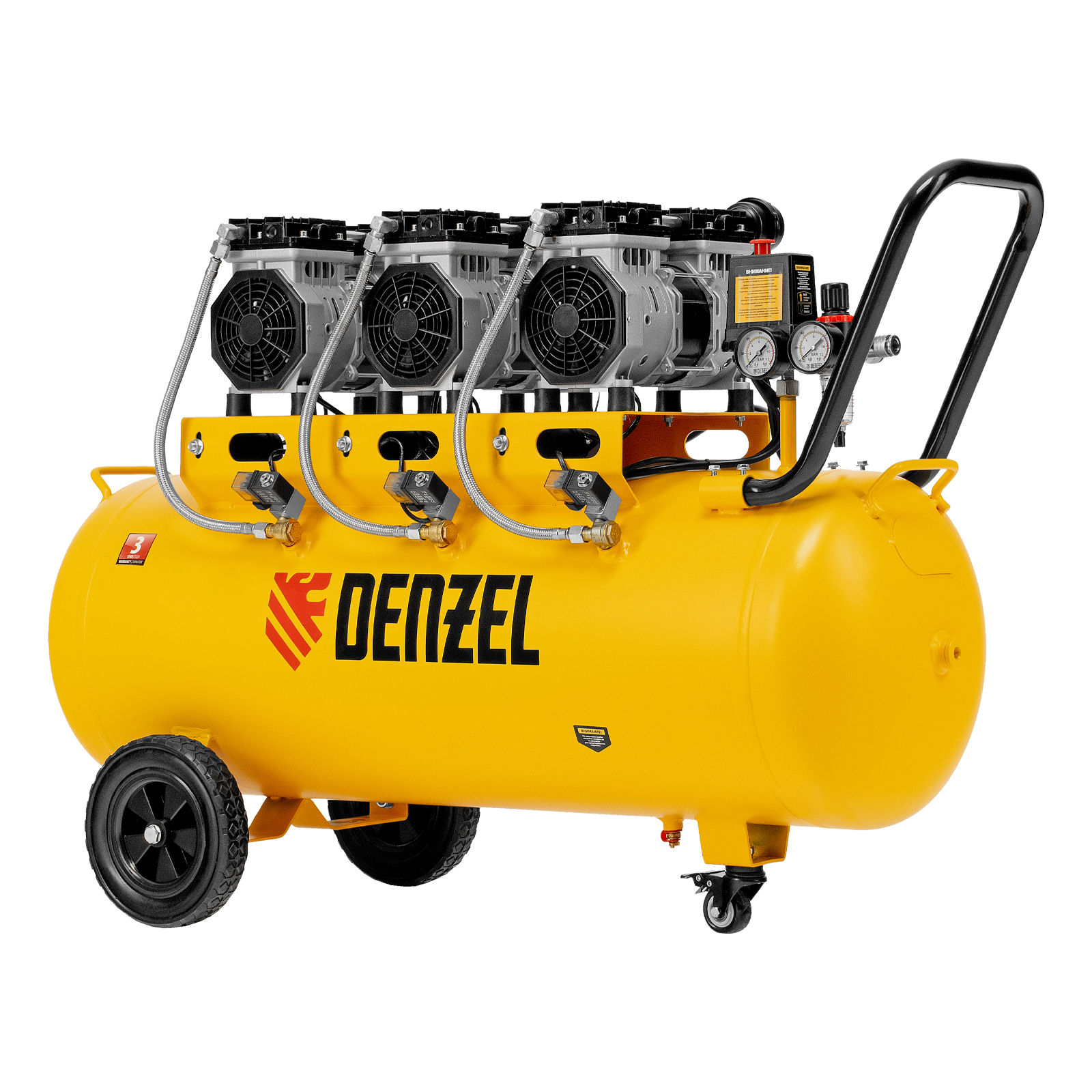 Компрессор безмасляный, малошумный DLS 1800/100,1800 Вт, 3x600, 100 л, 345 л/мин Denzel