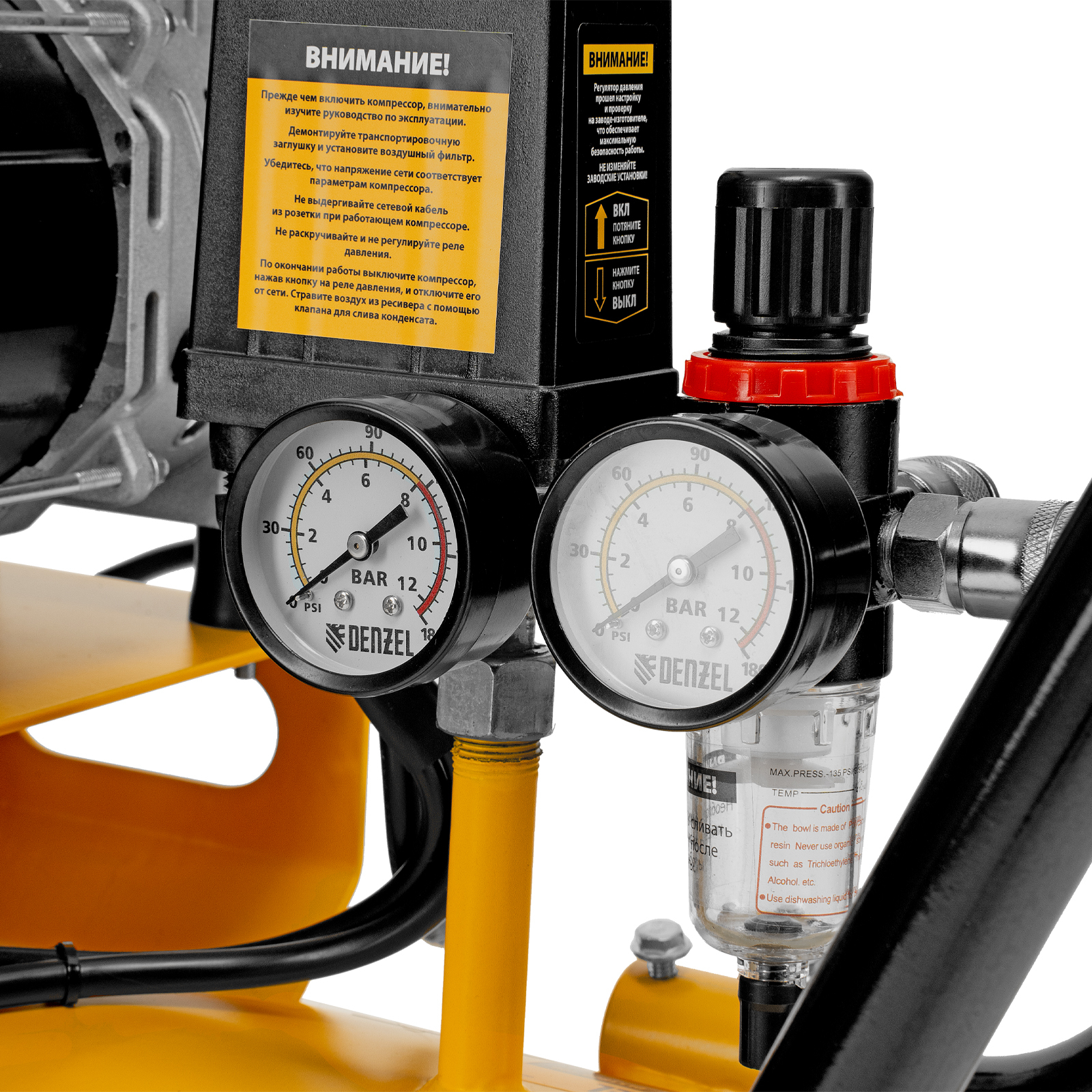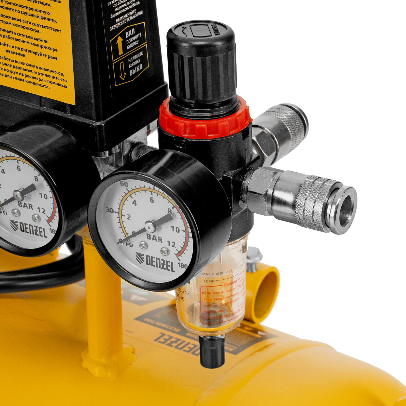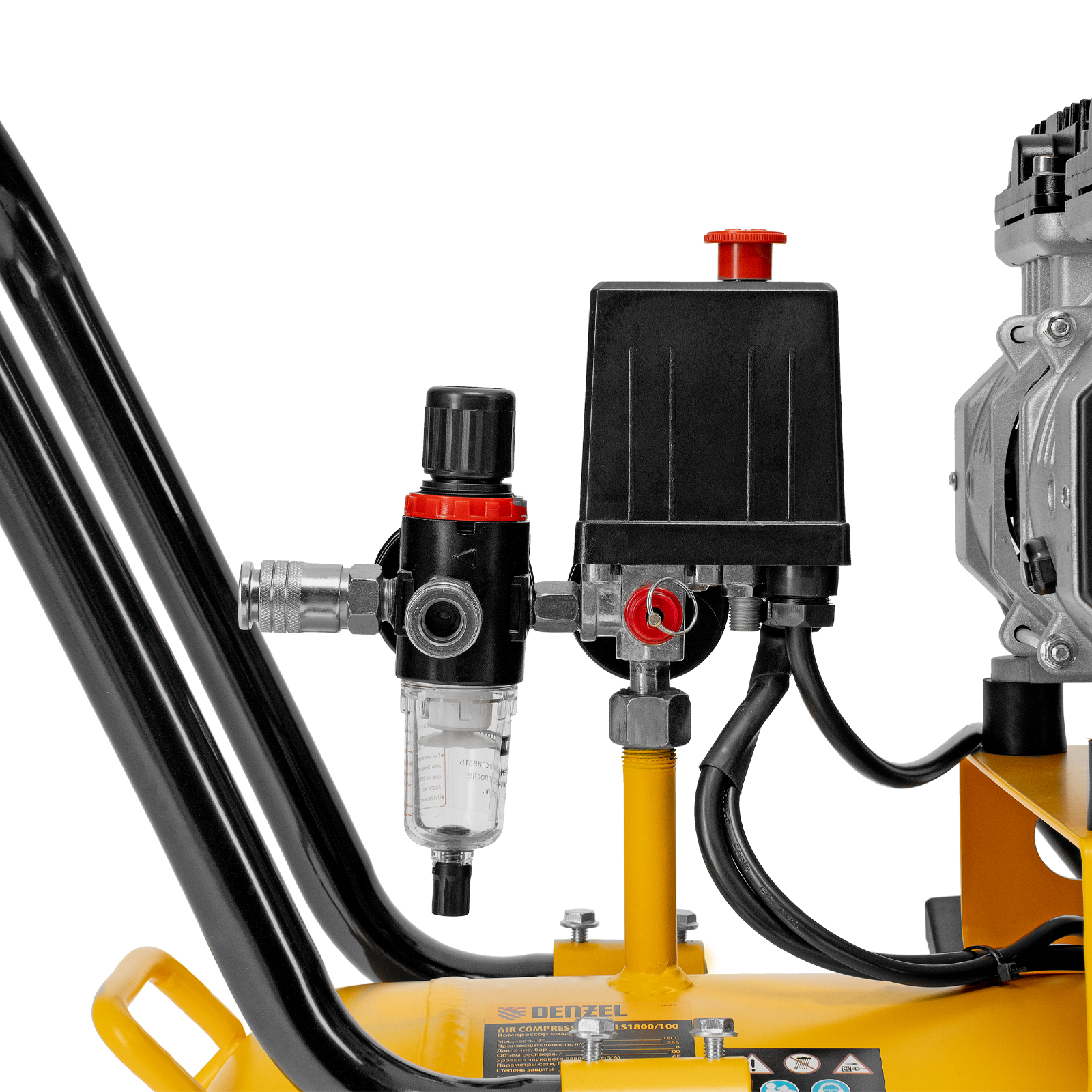 Компрессор безмасляный, малошумный DLS 1800/100,1800 Вт, 3x600, 100 л, 345 л/мин Denzel