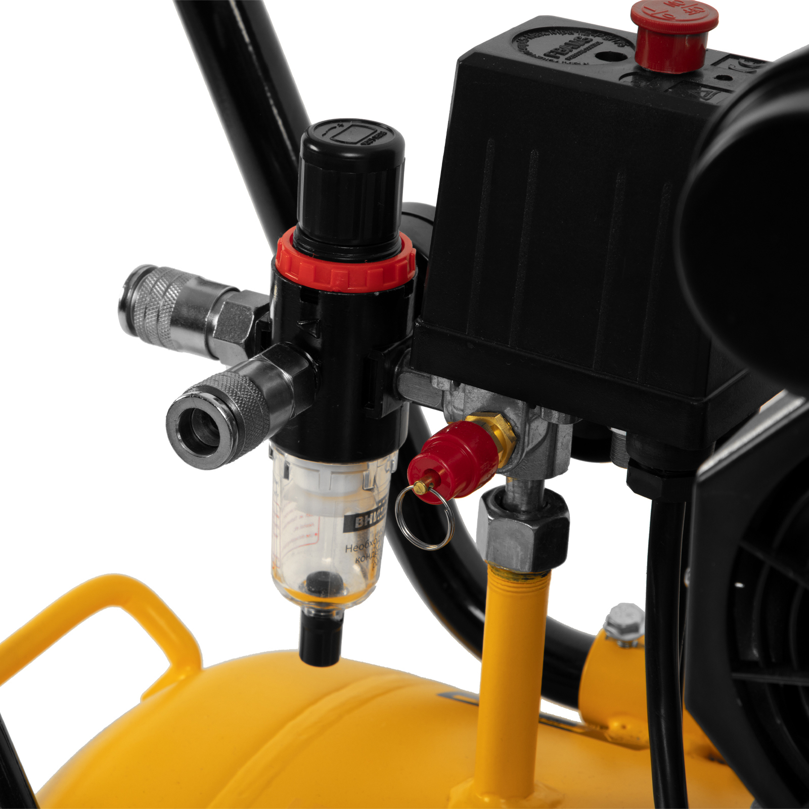 - Регулятор давления на выходе — можно выбрать оптимальный режим подачи воздуха в соответствии с характеристиками пневмоинструмента.