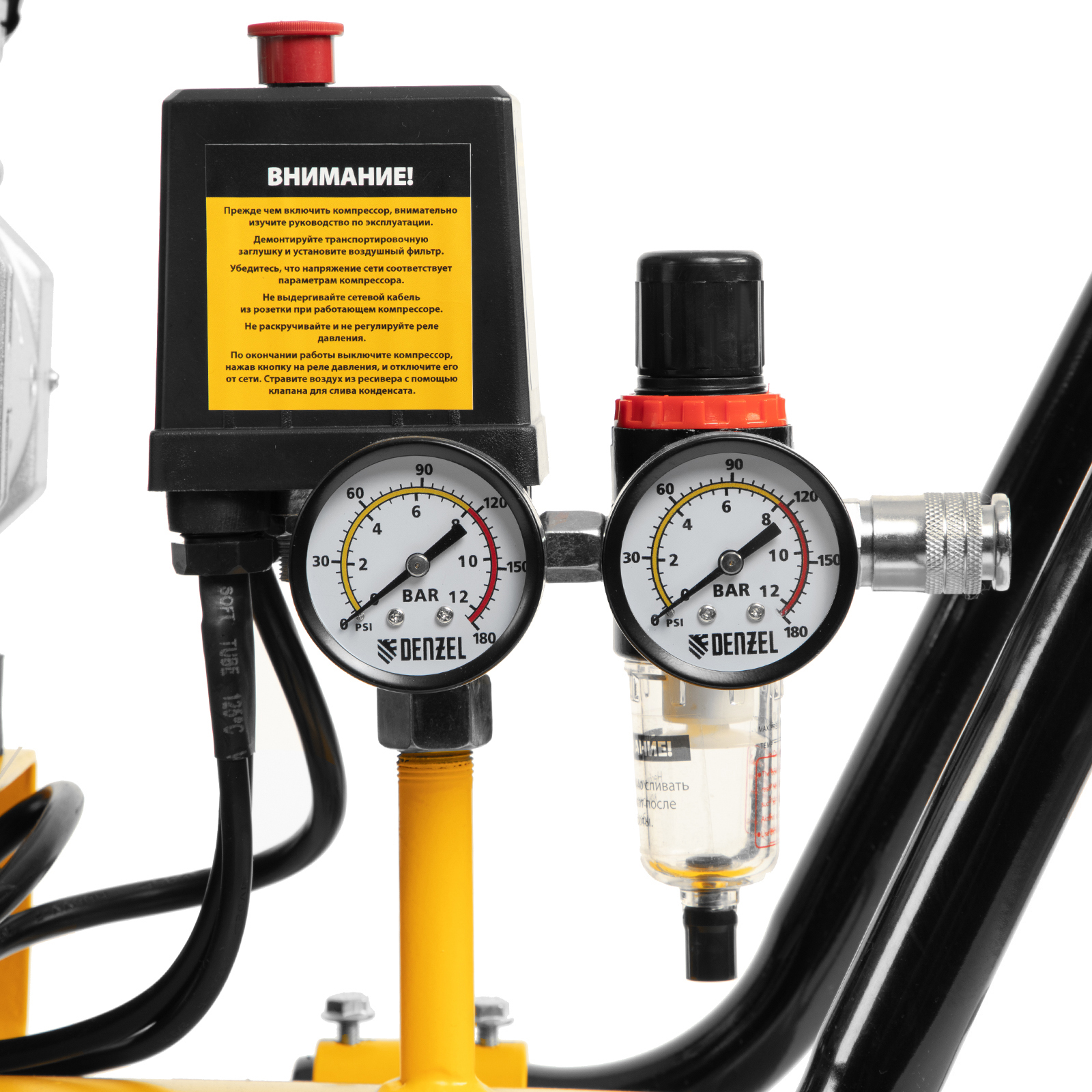 Безмасляный малошумный компрессор Denzel DLS 1800/100 58028 мощностью 1800 (3 х 600) Вт, объемом ресивера 100 л и производительностью 345 л/мин предназначен для обеспечения пневмоинструмента сжатым воздухом, подаваемым под давлением до 8 бар. Позволяет подключить пневматический заклепочник, дрель, шлифмашину и т.д. Оптимален для работы с краскопультом и для продувки электронных компонентов, т. к. в сжатом воздухе отсутствуют частицы масла. Компрессор пригодится в мастерской, гараже, на строительной площадке.