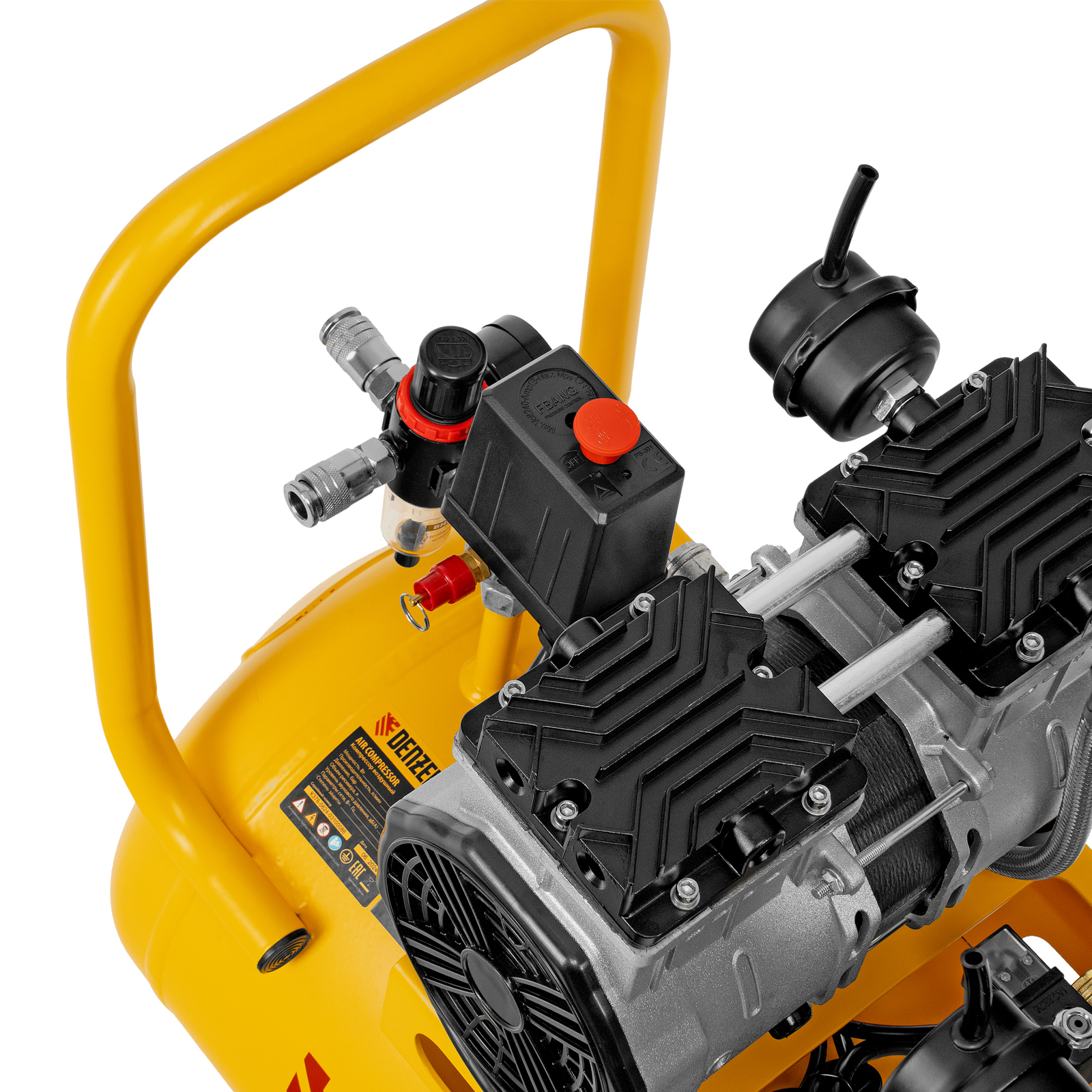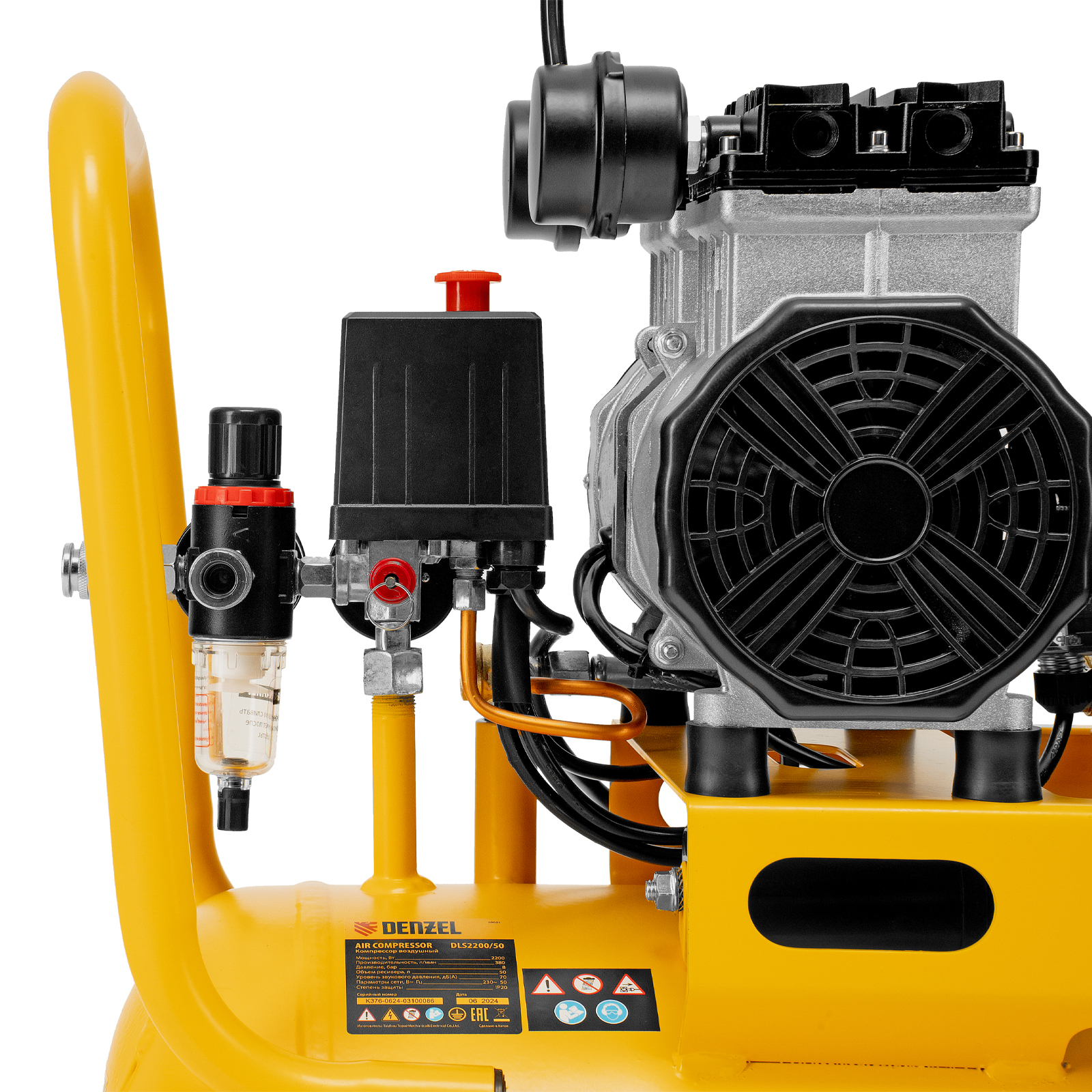 Компрессор безмасляный, малошумный DLS 2200/50, 2200 Вт, 2x1100, 50 л, 380 л/мин Denzel