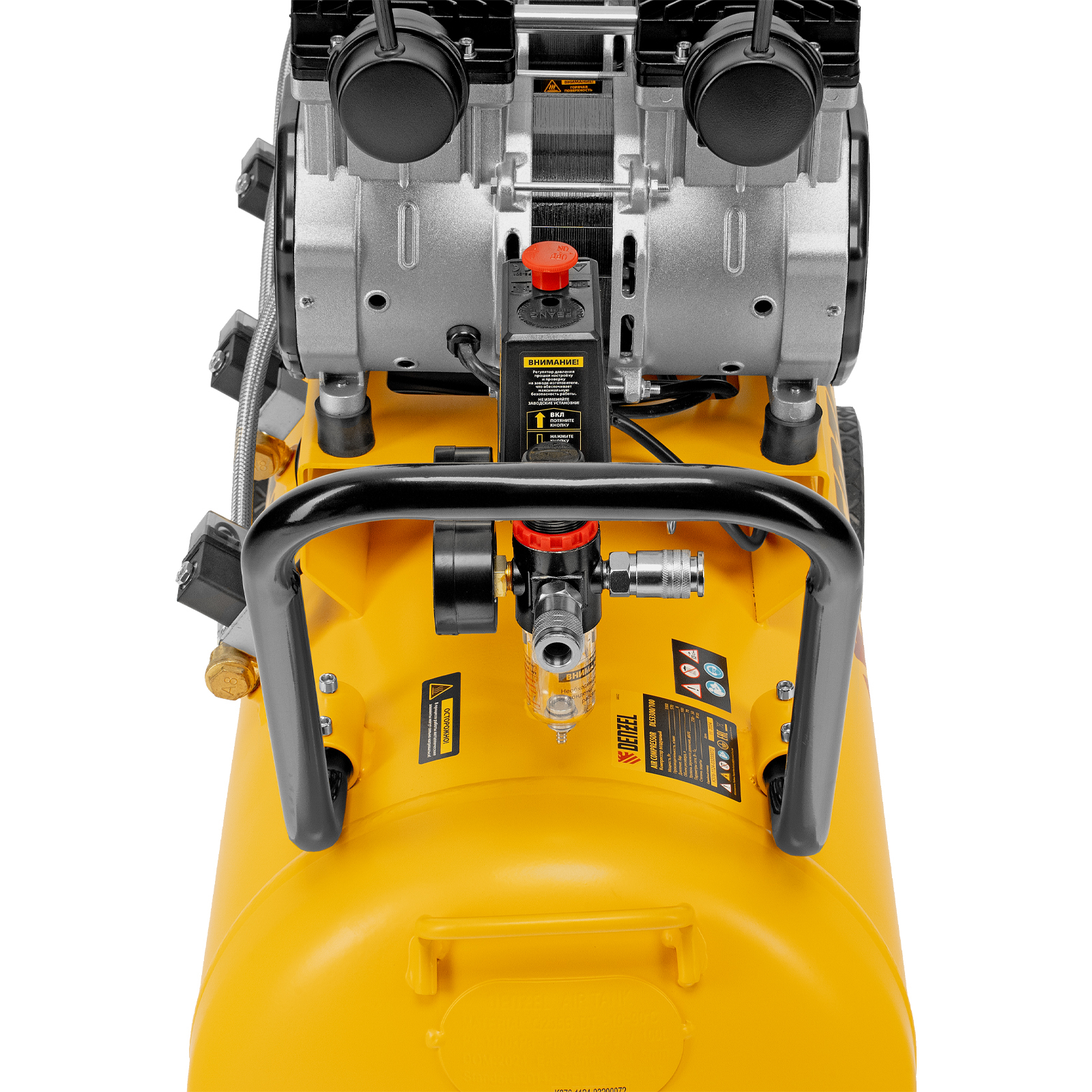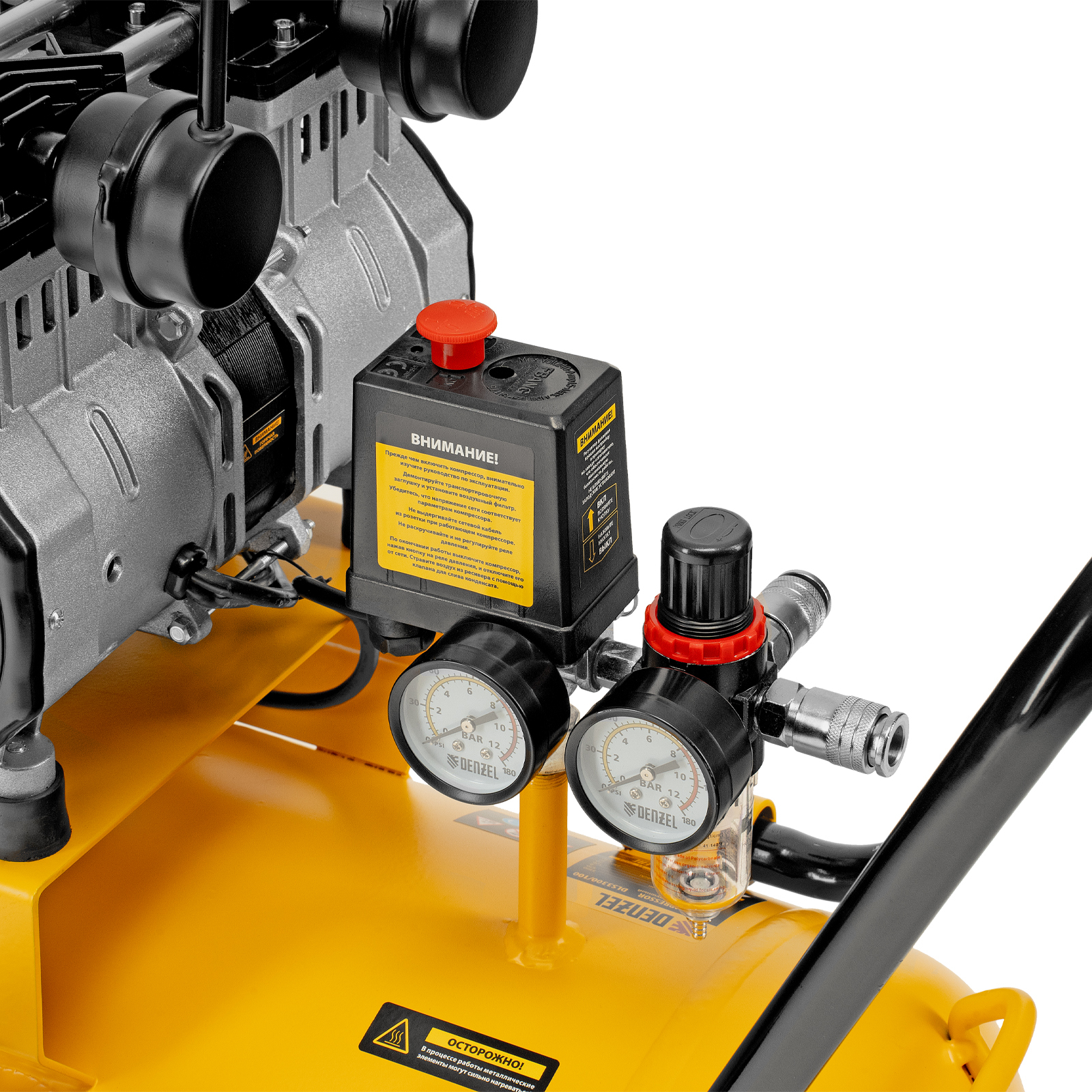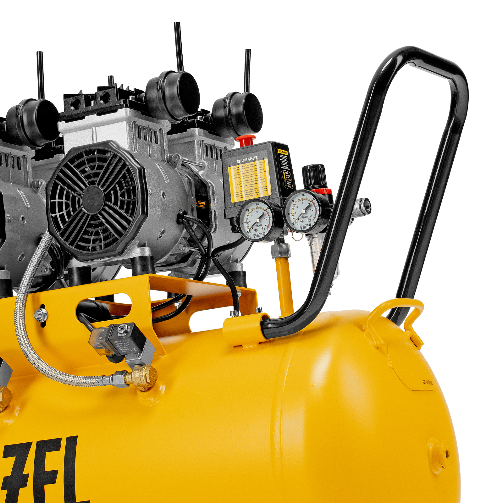 Компрессор безмасляный, малошумный DLS 3300/100, 3300 Вт,3x1100, 100 л, 570 л/мин ,блок управления Denzel