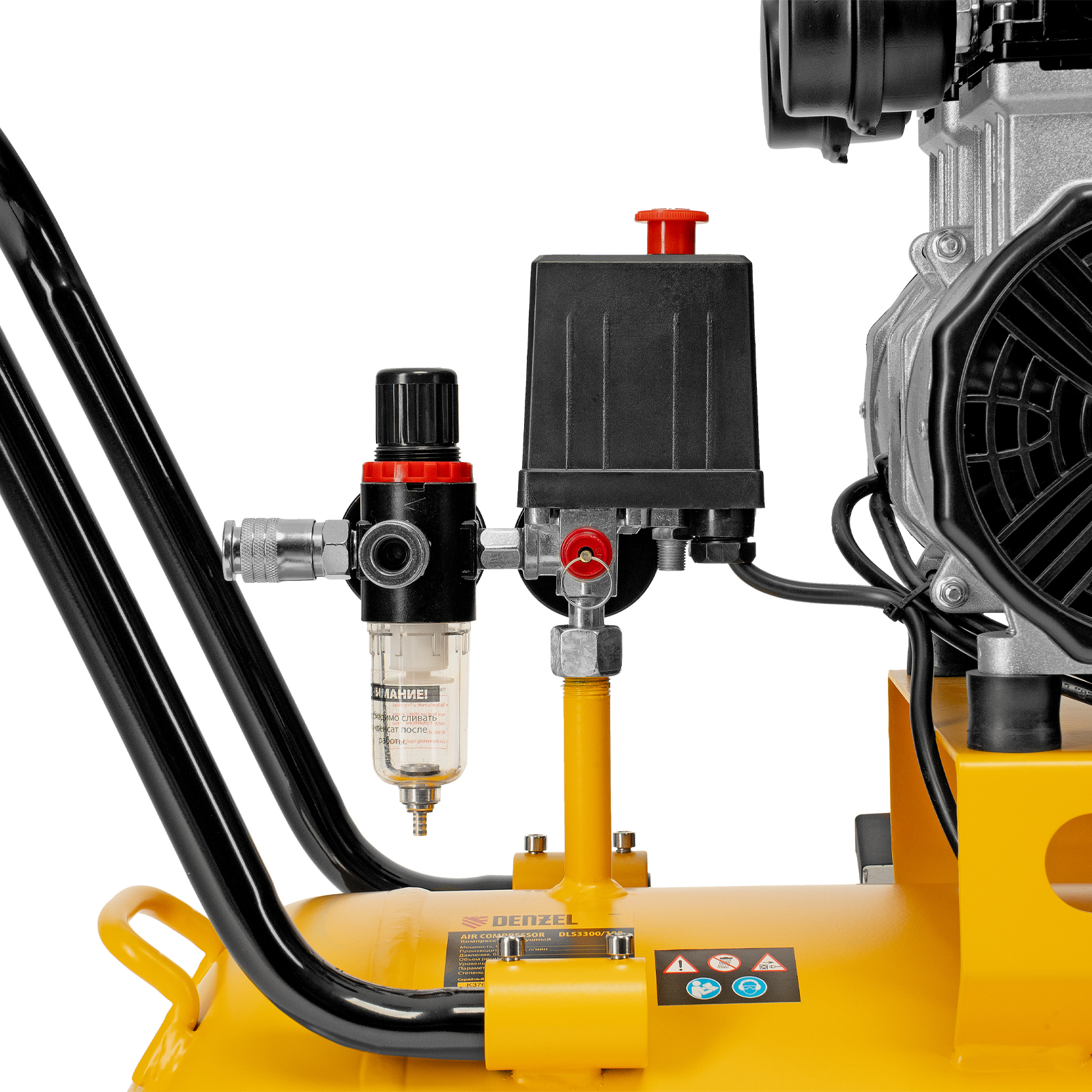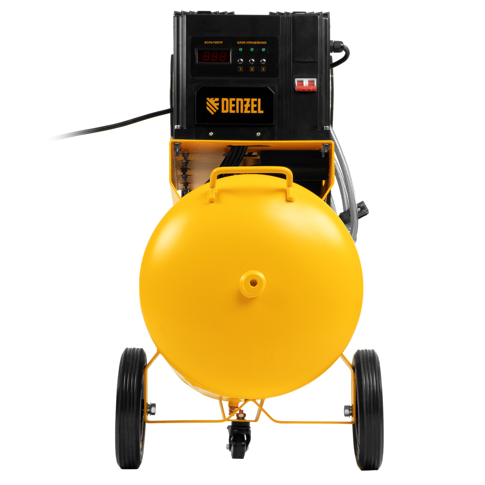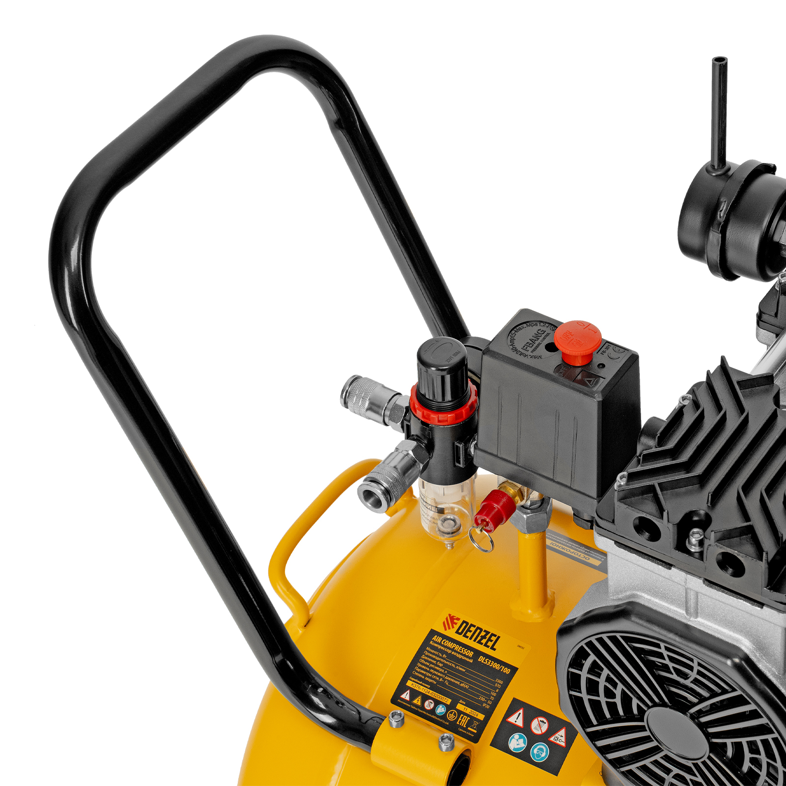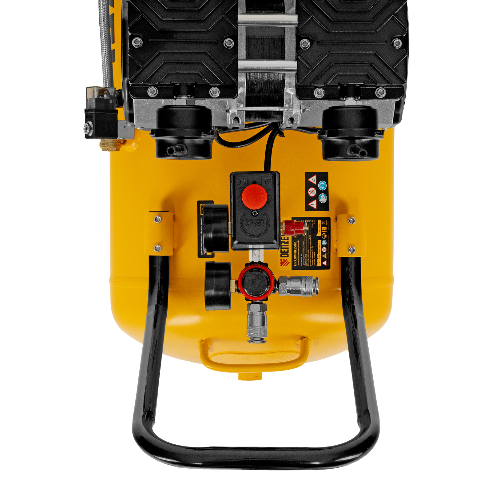 Компрессор безмасляный, малошумный DLS 3300/100, 3300 Вт,3x1100, 100 л, 570 л/мин ,блок управления Denzel