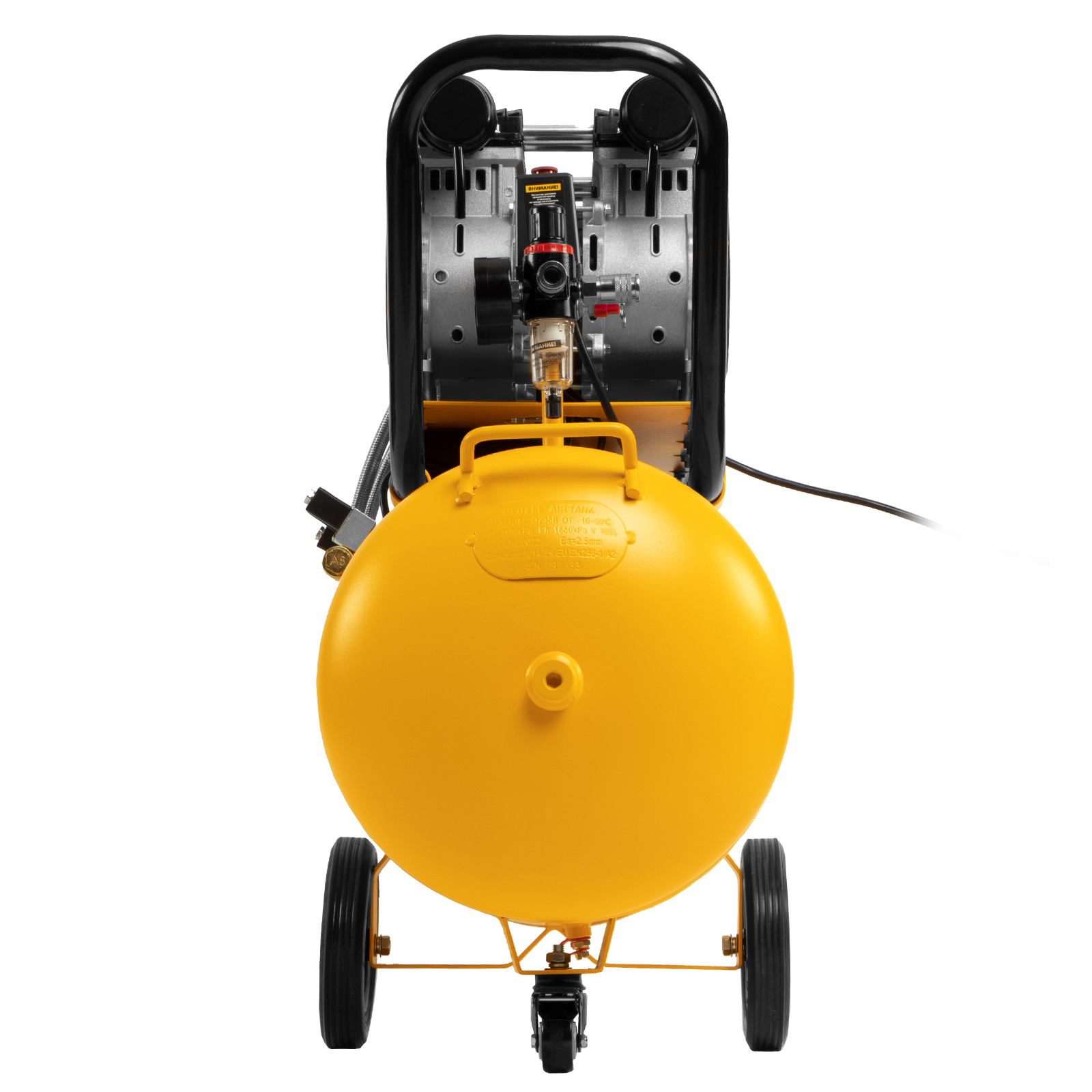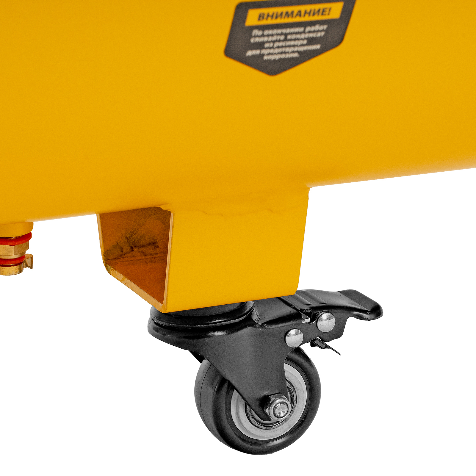 - Мобильность — компрессор оборудован ручкой и 3 колесами (из них 1 поворотное) для удобного разворота и перемещения.