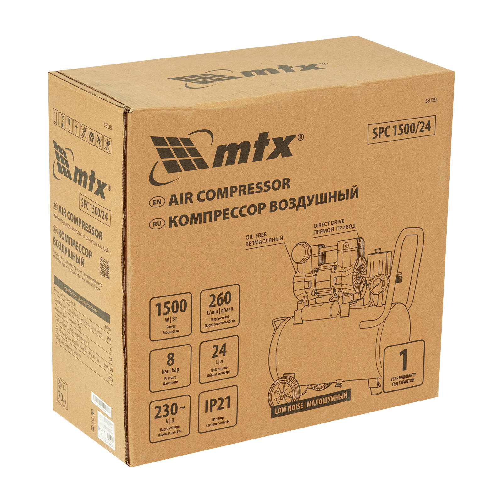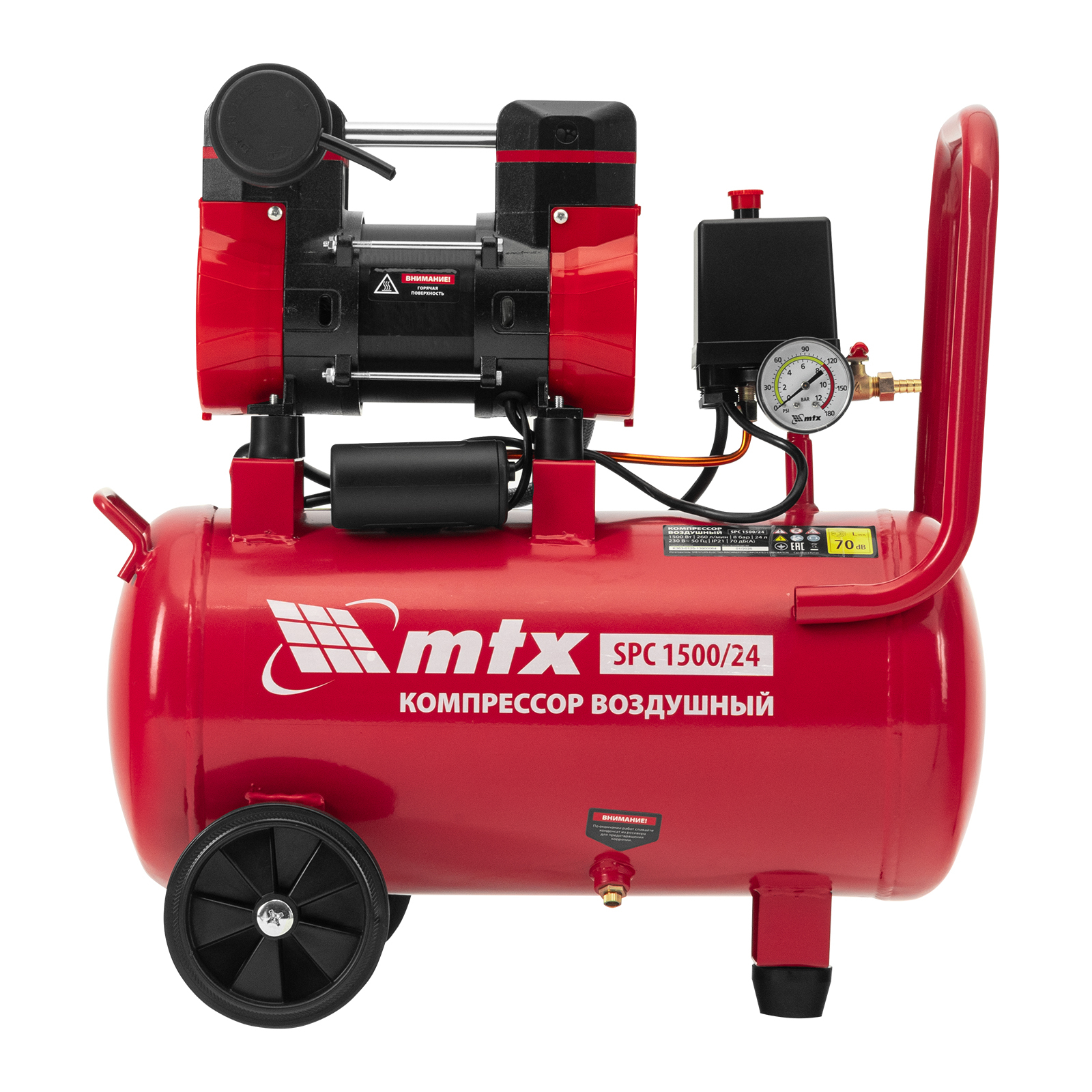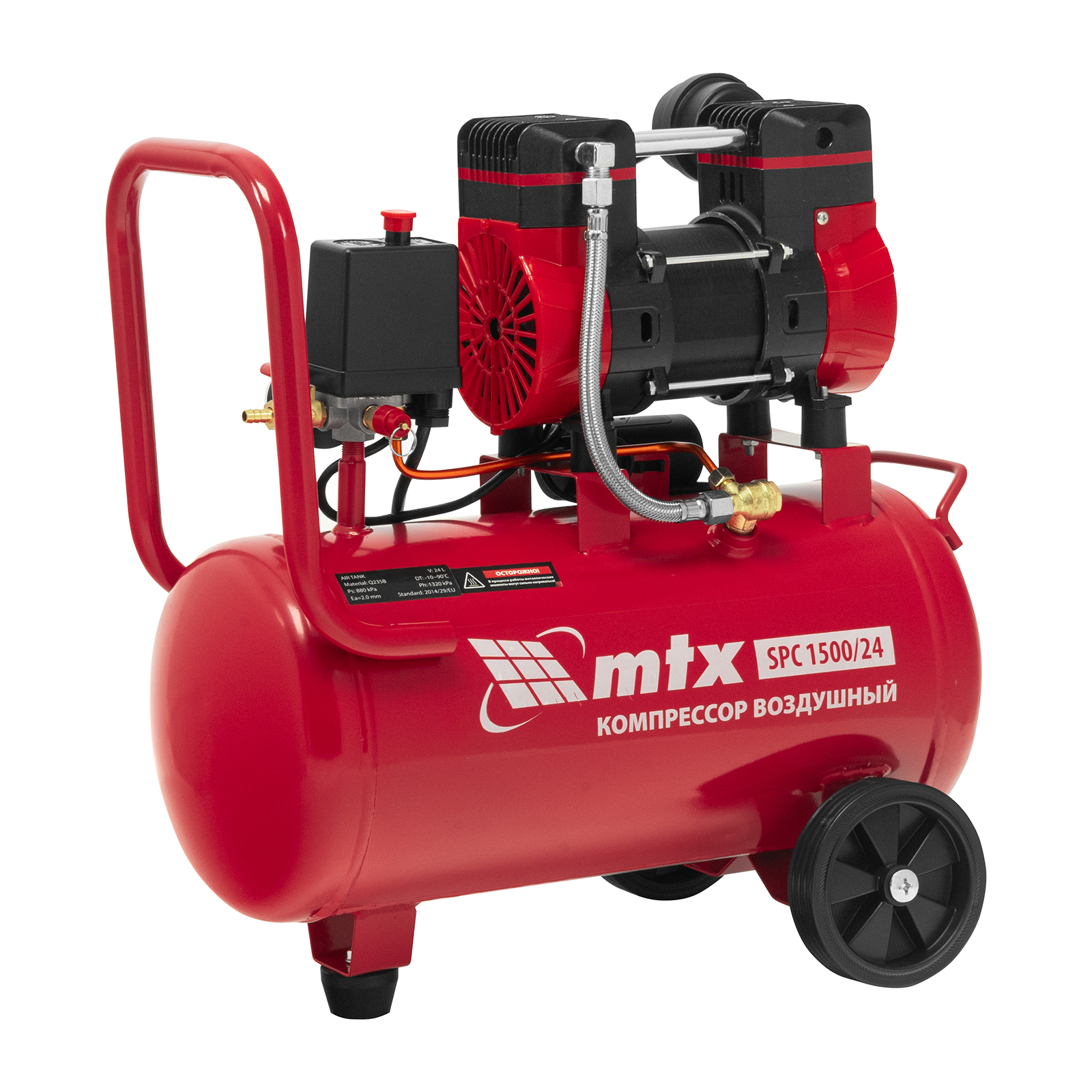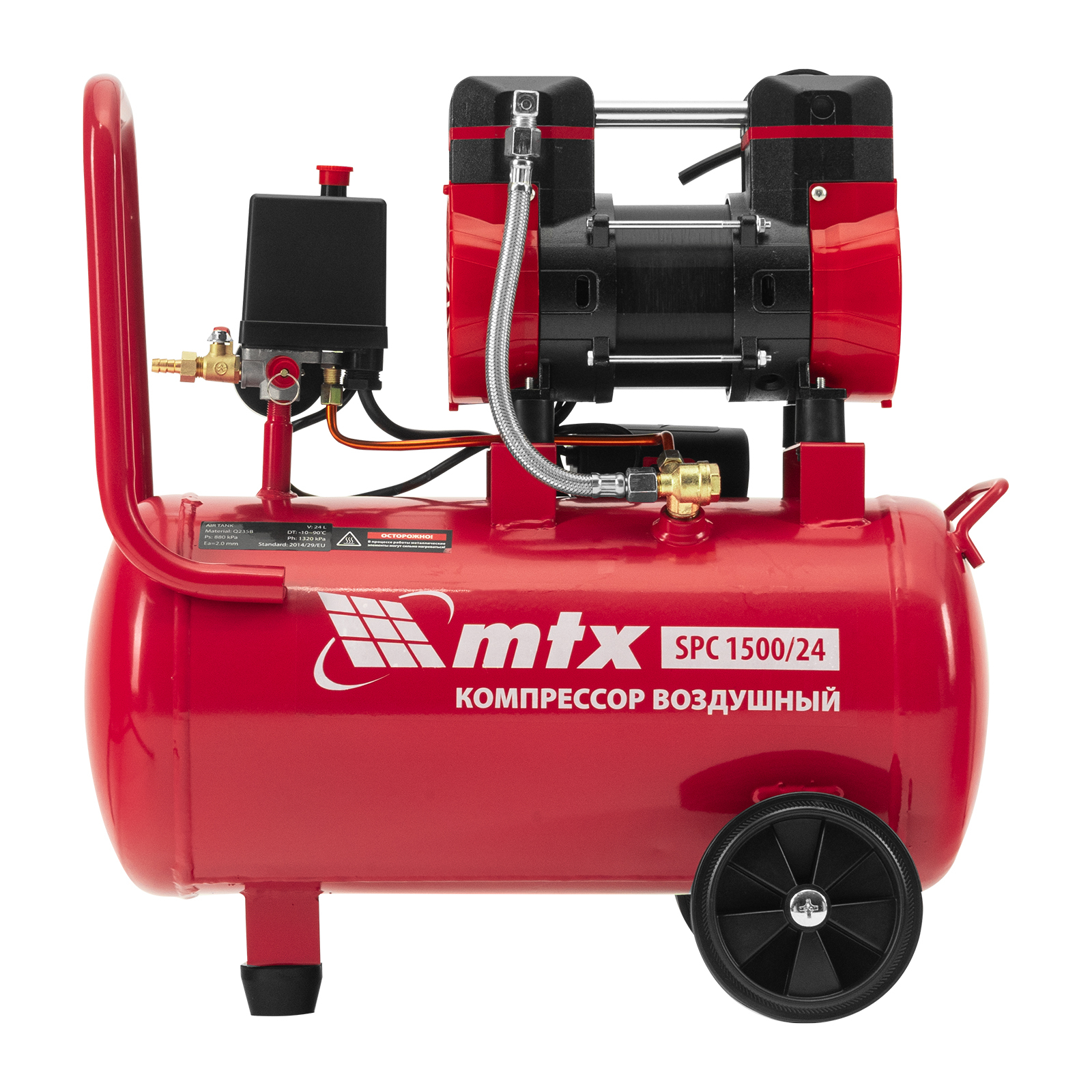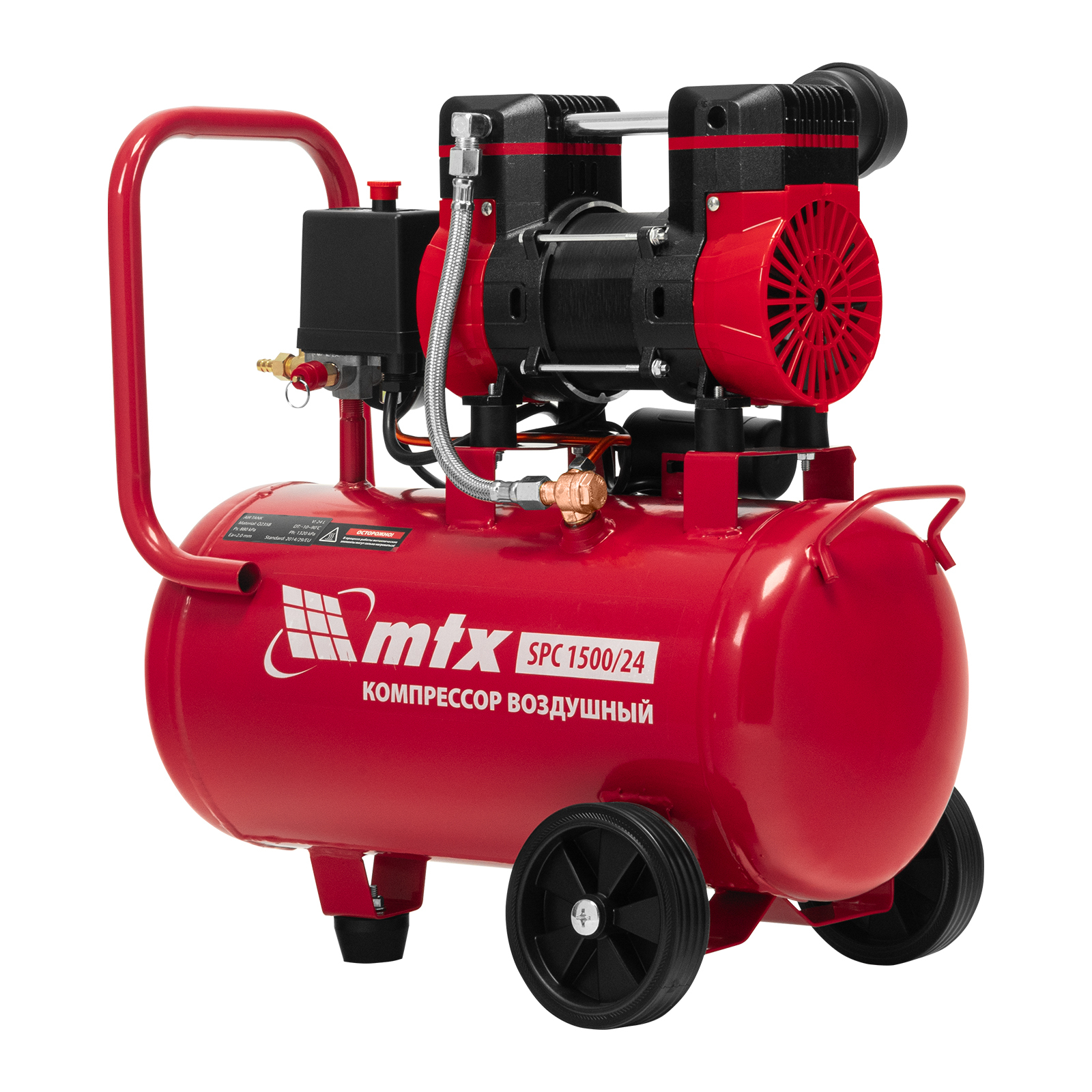 Компрессор безмасляный малошумный SPC 1500/24, 1500 Вт, ресивер 24 л, 260 л/мин// MTX