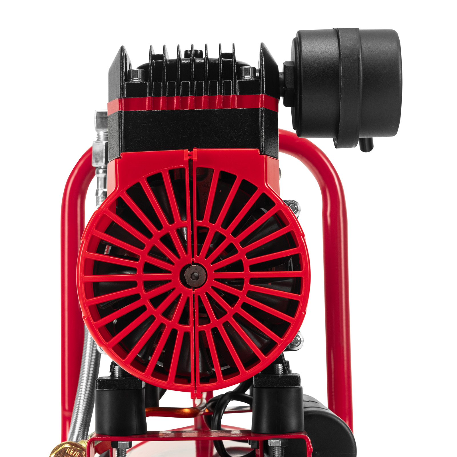 - Мобильность — благодаря транспортировочной рукоятке и колесам компрессор удобно перемещать по рабочей площадке.