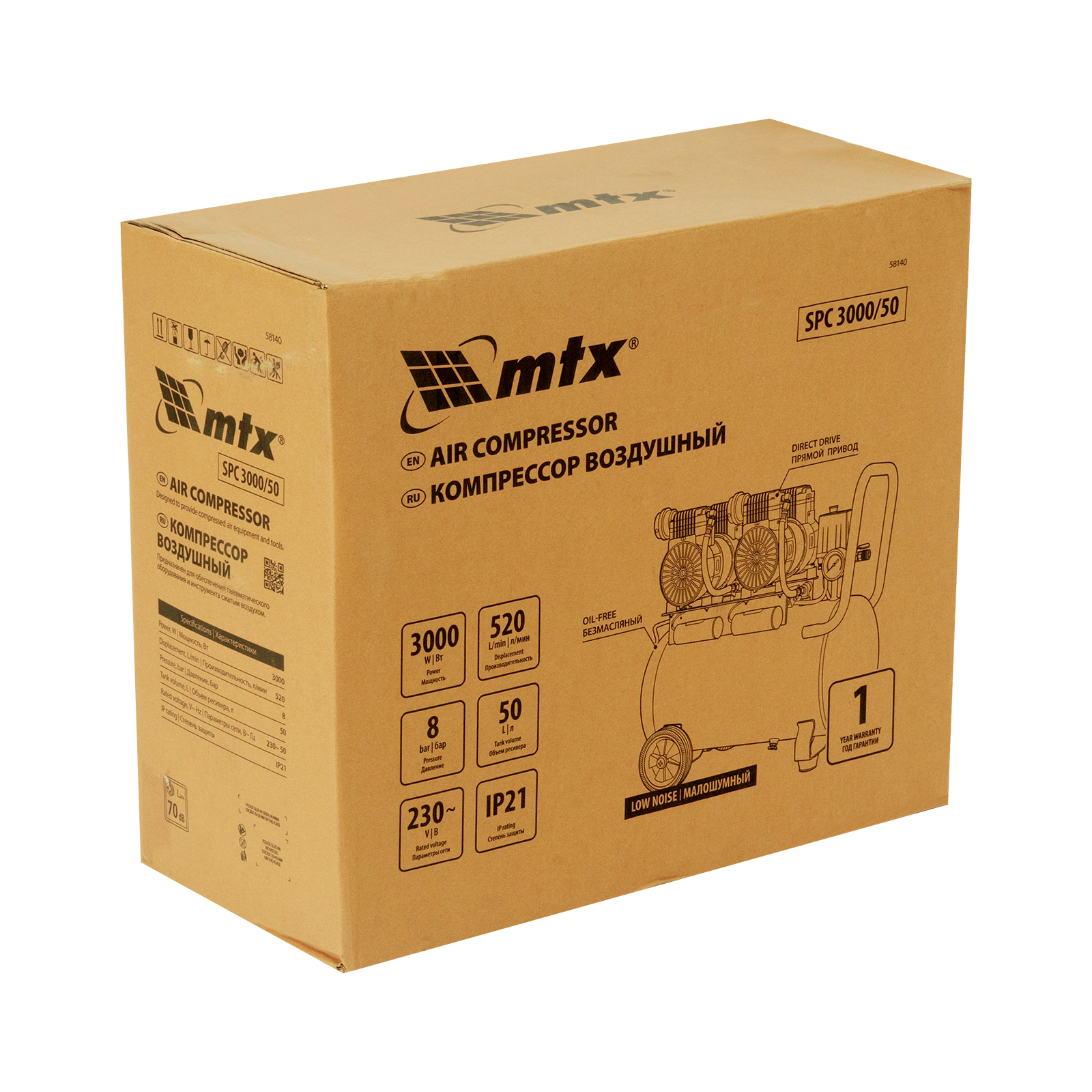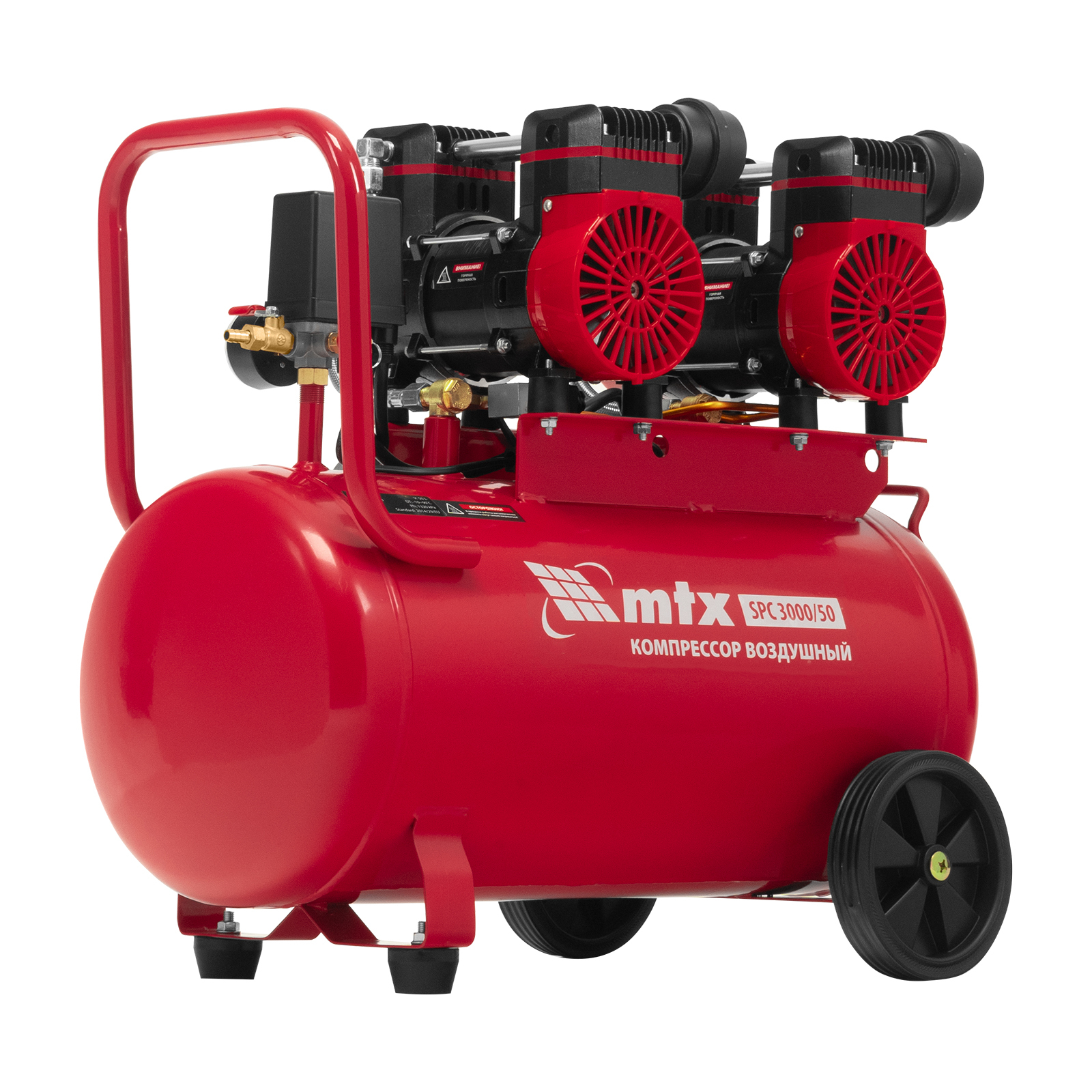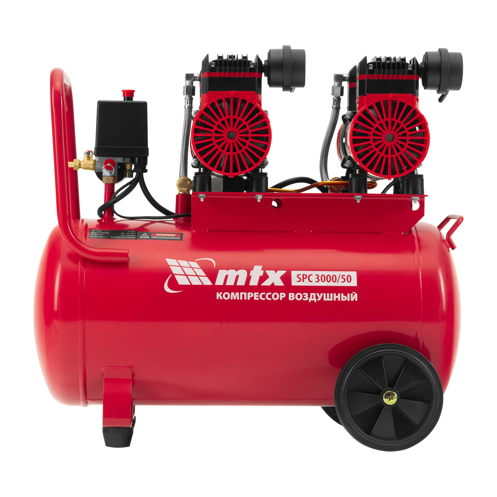 Компрессор безмасляный малошумный SPC 3000/50, 3000 Вт, ресивер 50 л, 520 л/мин// MTX