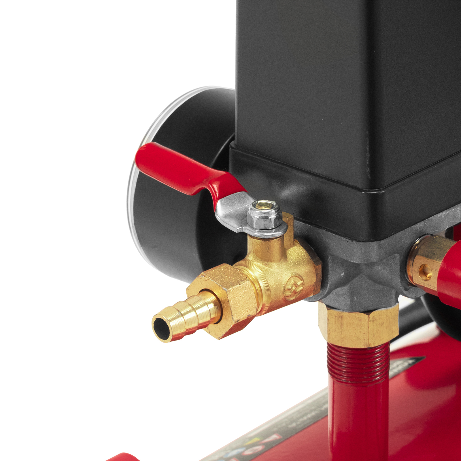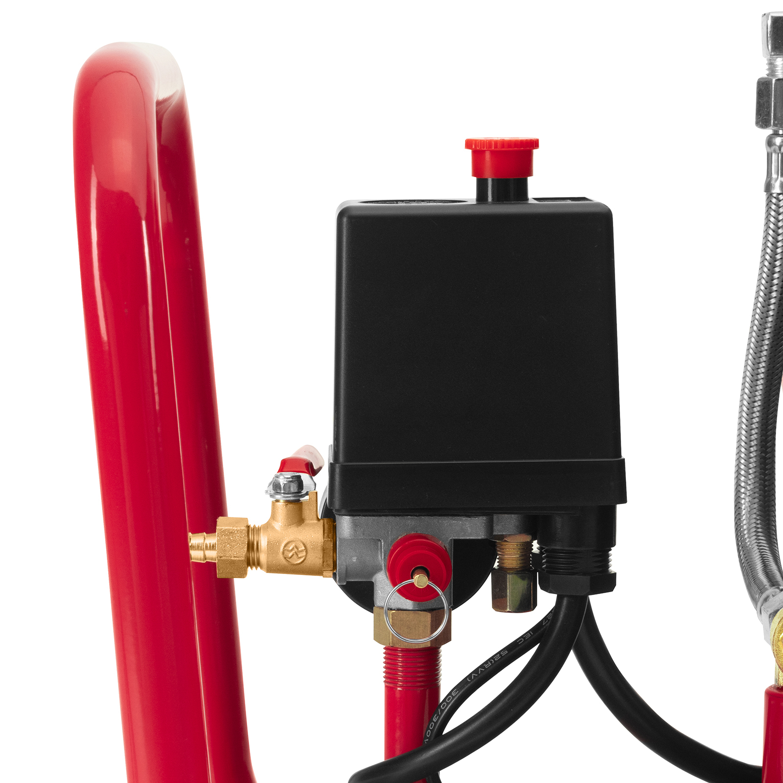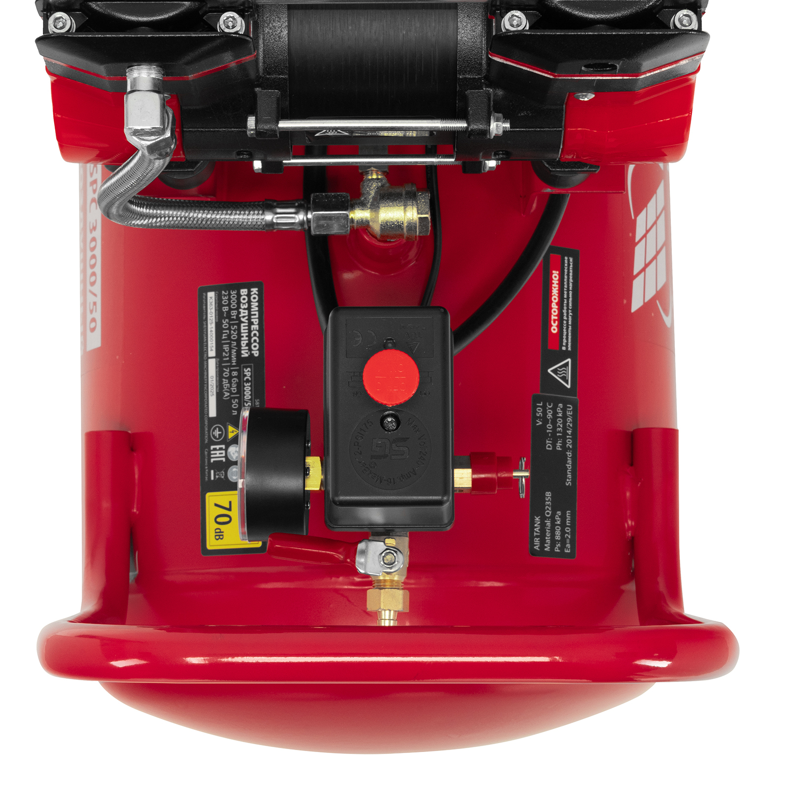 - Автономная работа — прессостат осуществляет автоматический контроль давления воздуха в ресивере, запуская и останавливая компрессор при необходимости.