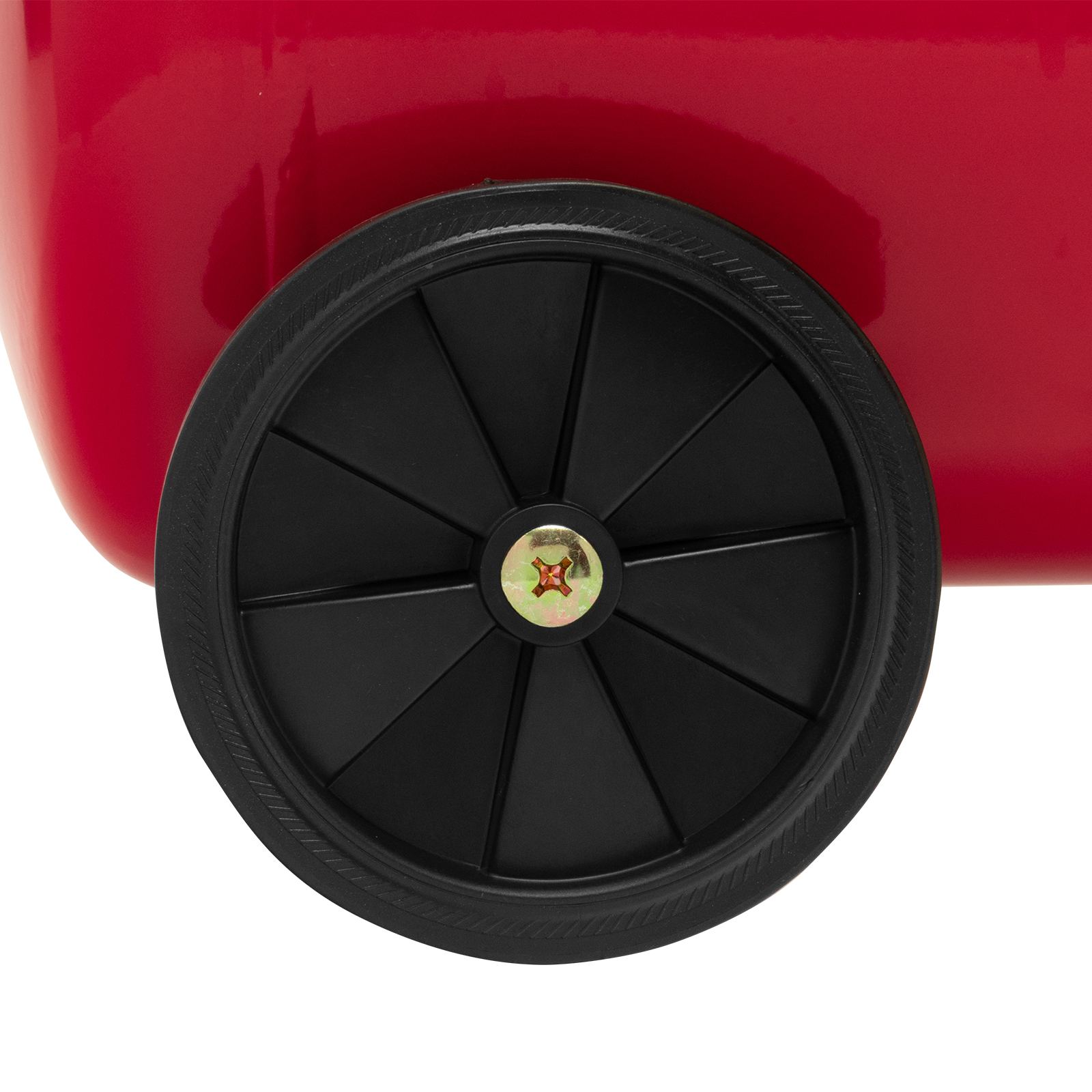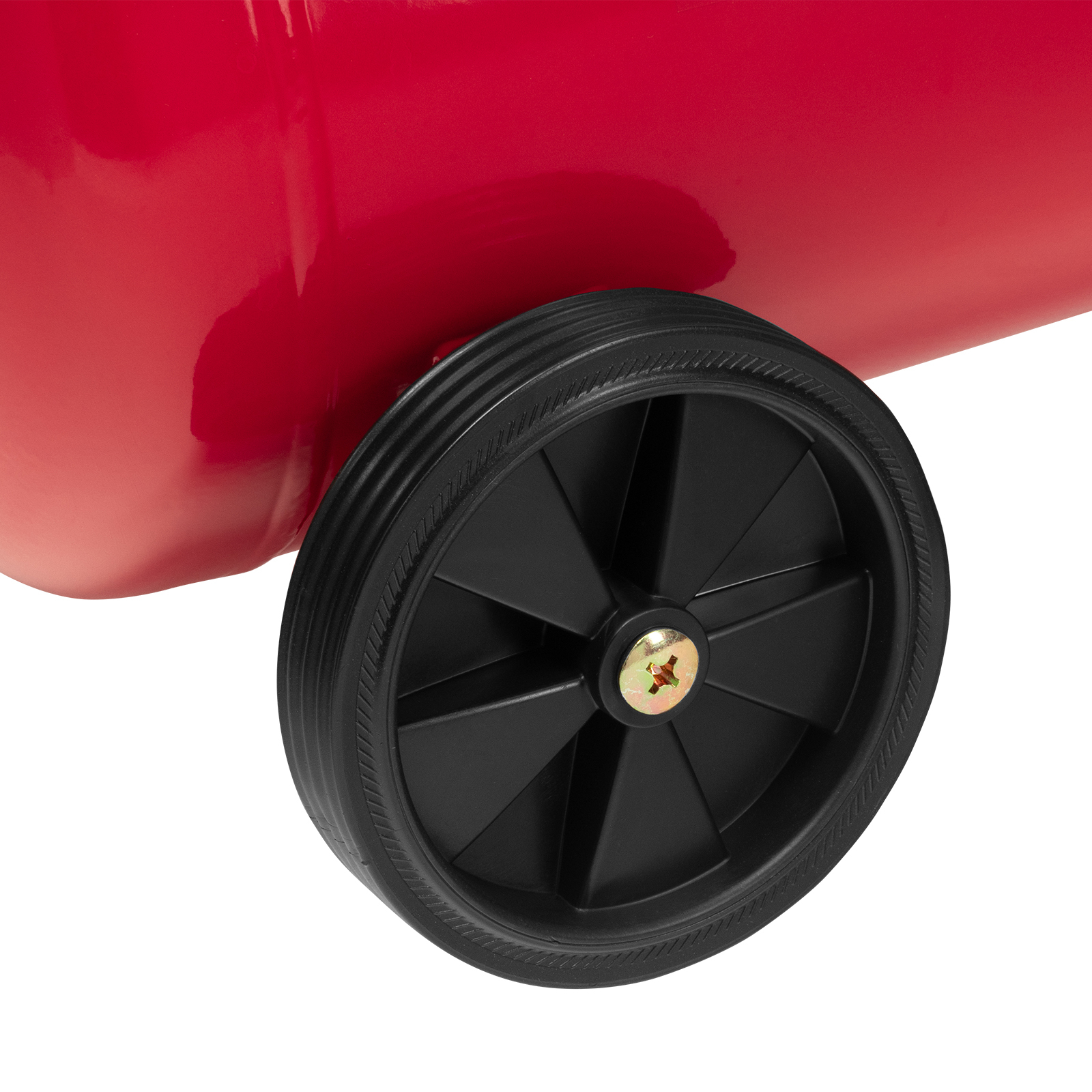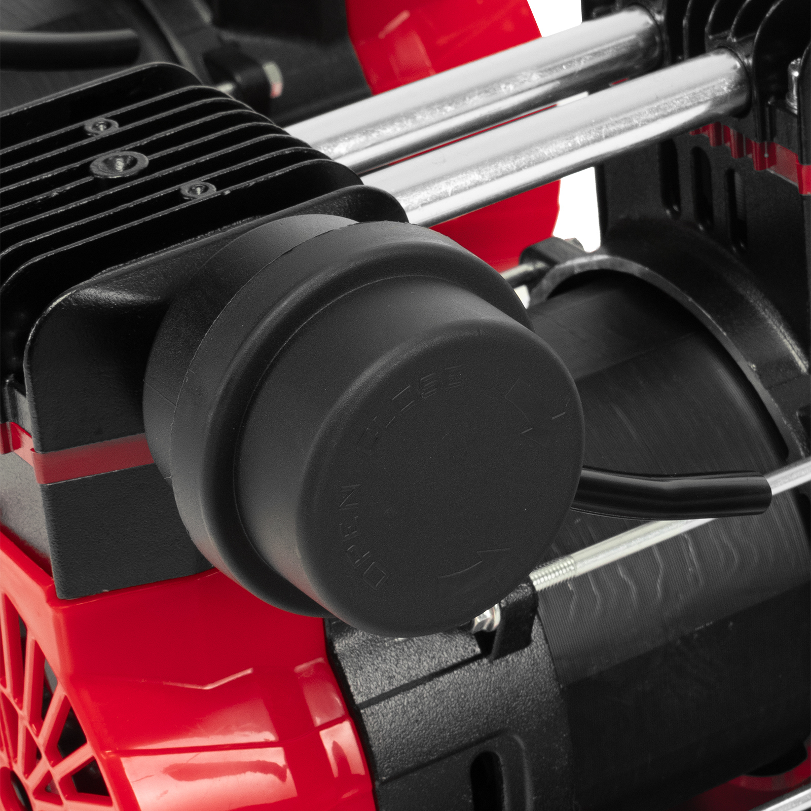 - Мобильность — благодаря транспортировочной рукоятке и колесам компрессор удобно перемещать по рабочей площадке.