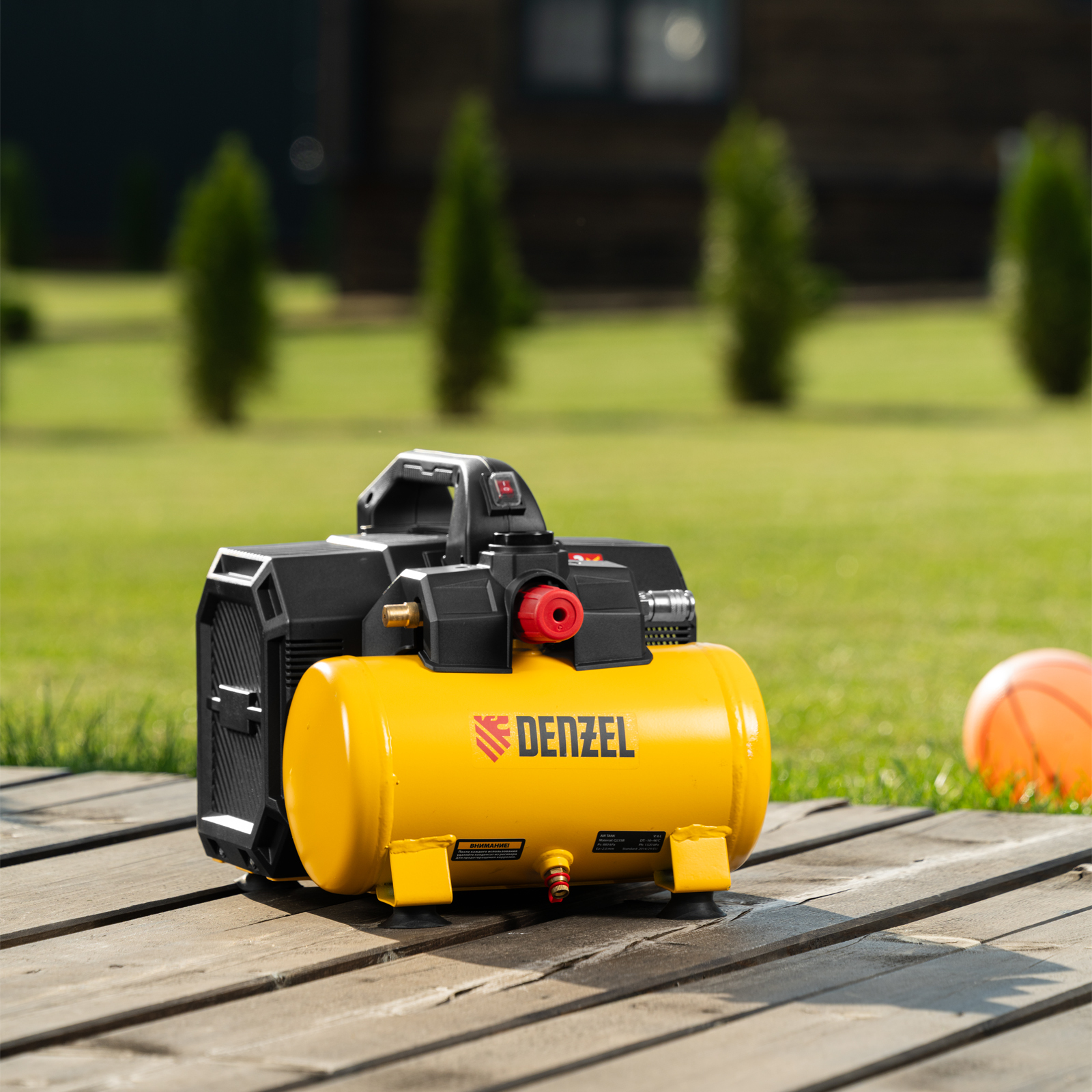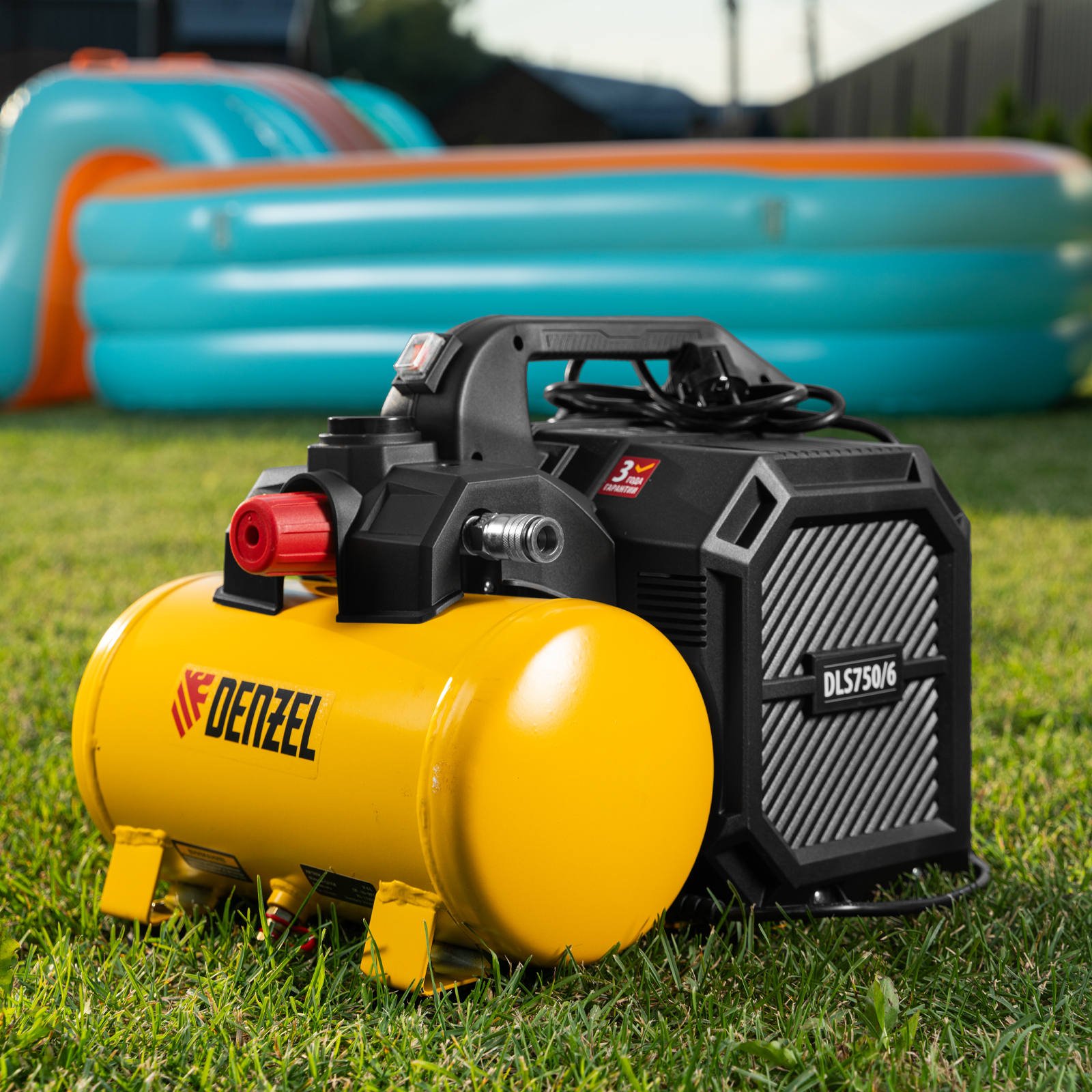 Компрессор безмасляный малошумный Denzel DLS750/6 58019 мощностью 750 Вт, с ресивером объемом 6 л, имеет производительность на входе 140 л/мин и предназначен для обеспечения пневмоинструмента сжатым воздухом. Оптимален для работы с краскораспылителем и продувочным пистолетом, т.к. воздух на выходе не содержит частиц масла. Рабочий узел закрыт сплошным кожухом, благодаря чему уровень шума во время работы не превышает 65 дБ. Компрессор можно использовать в жилом помещении и на дачном участке.