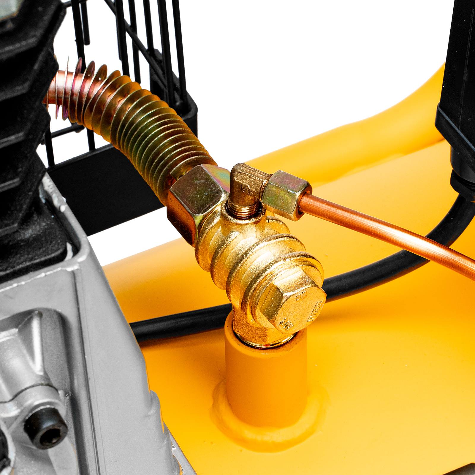 - Отслеживание рабочих параметров — 2 манометра позволяют контролировать давление в ресивере и пневмомагистрали.