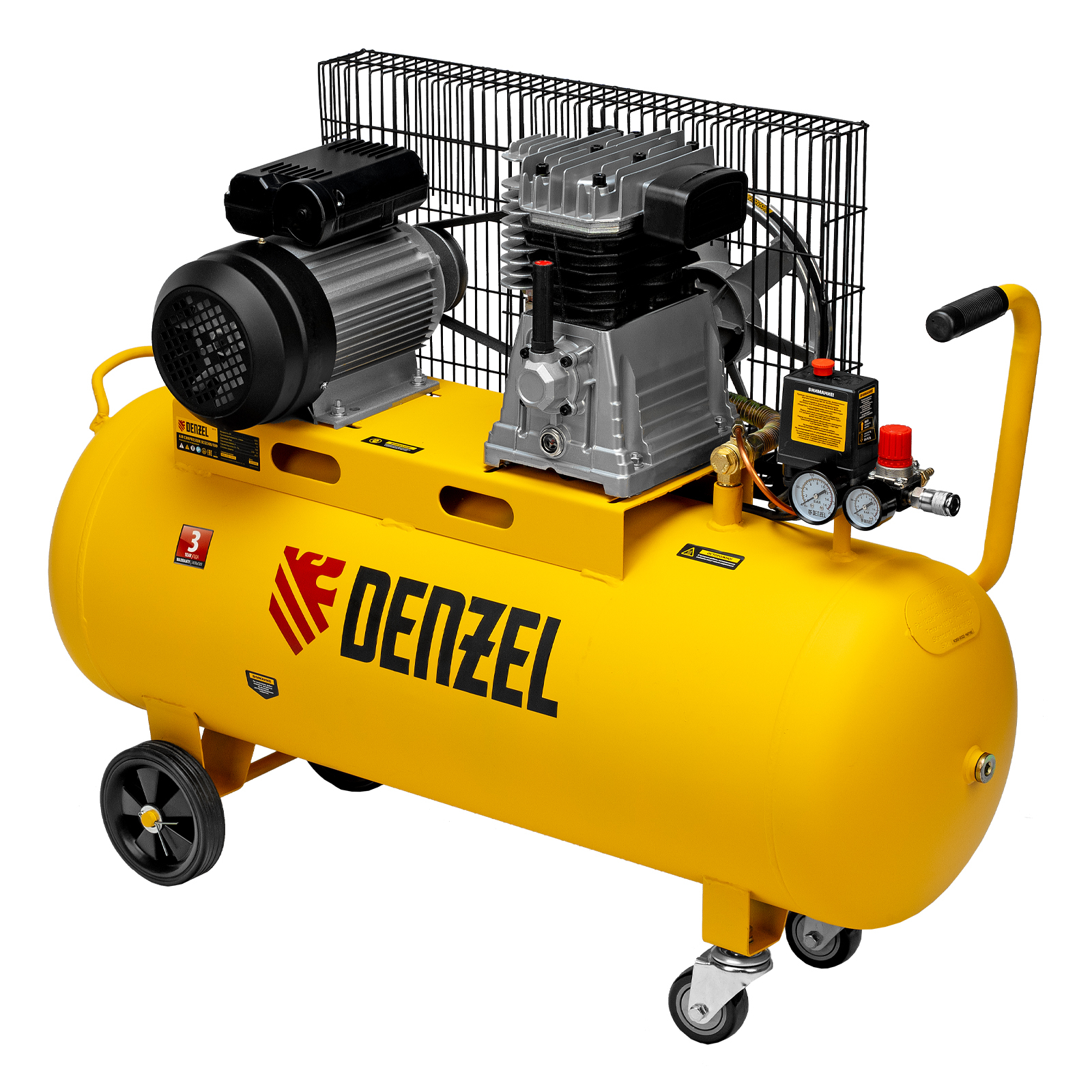 Компрессор воздушный BCI2300/100, ременный привод, 2.3 кВт, 100 литров, 400 л/мин Denzel
