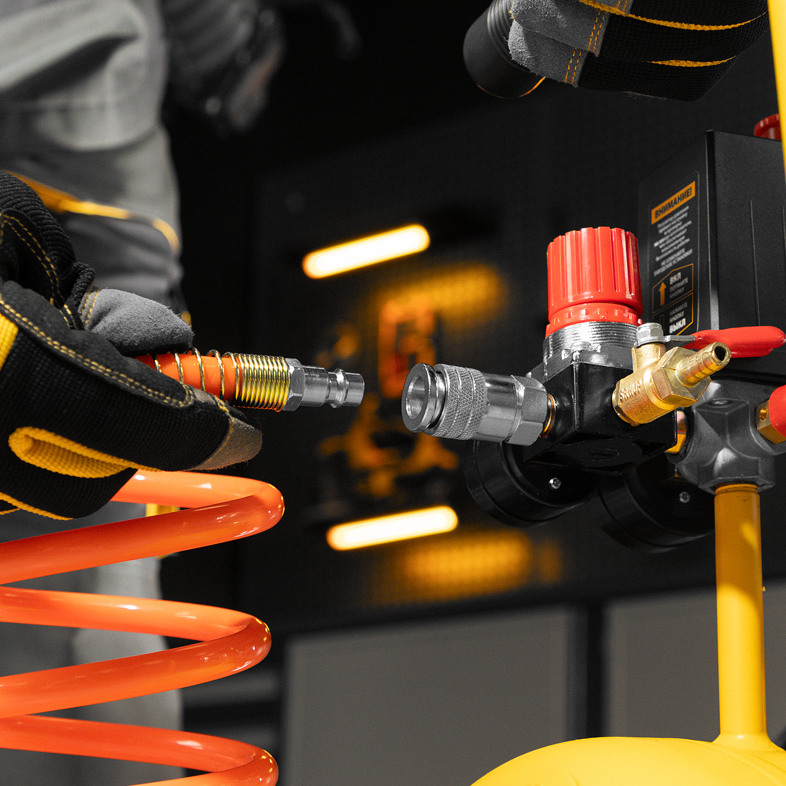 - Удобное подключение — коннекторы «Рапид» и «Елочка» позволяют работать с разными пневмомагистралями, делая компрессор незаменимым помощником на рабочей площадке.