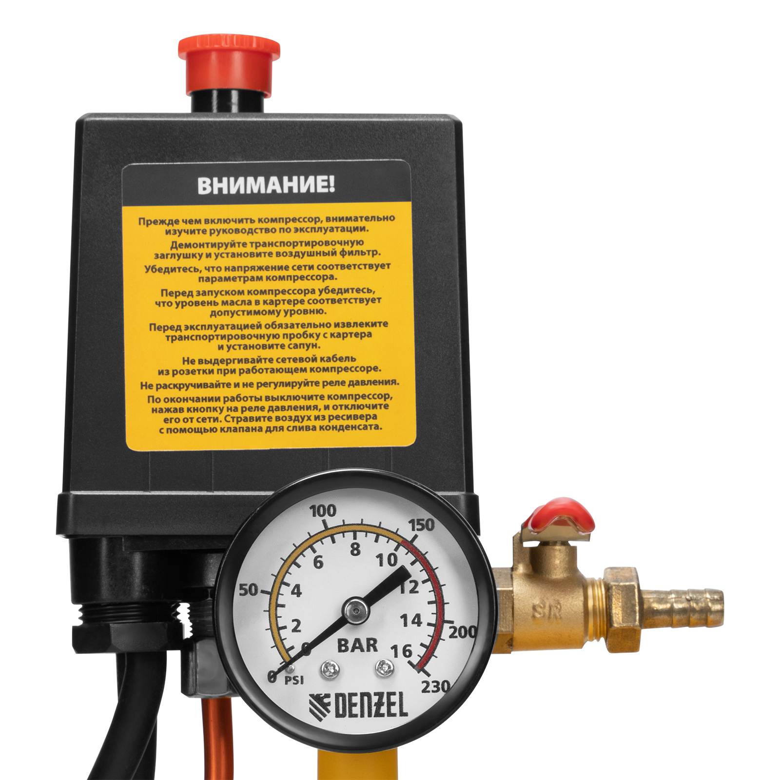 - Автоматизация работы — реле отключает двигатель при достижении максимально допустимого давления и автоматически включает, когда оно ниже установленной нормы.