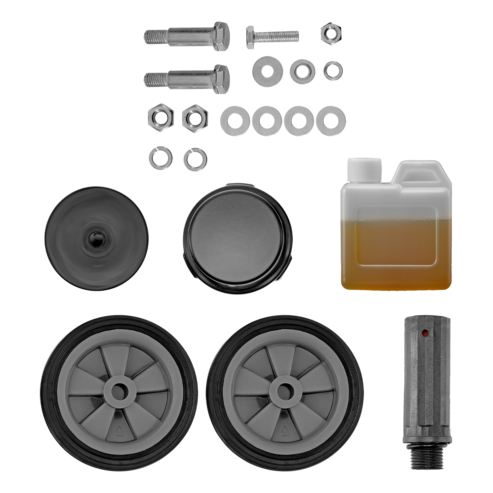 - Комфортное перемещение по рабочей зоне — компактный компрессор оснащен 2 колесами и ручкой.