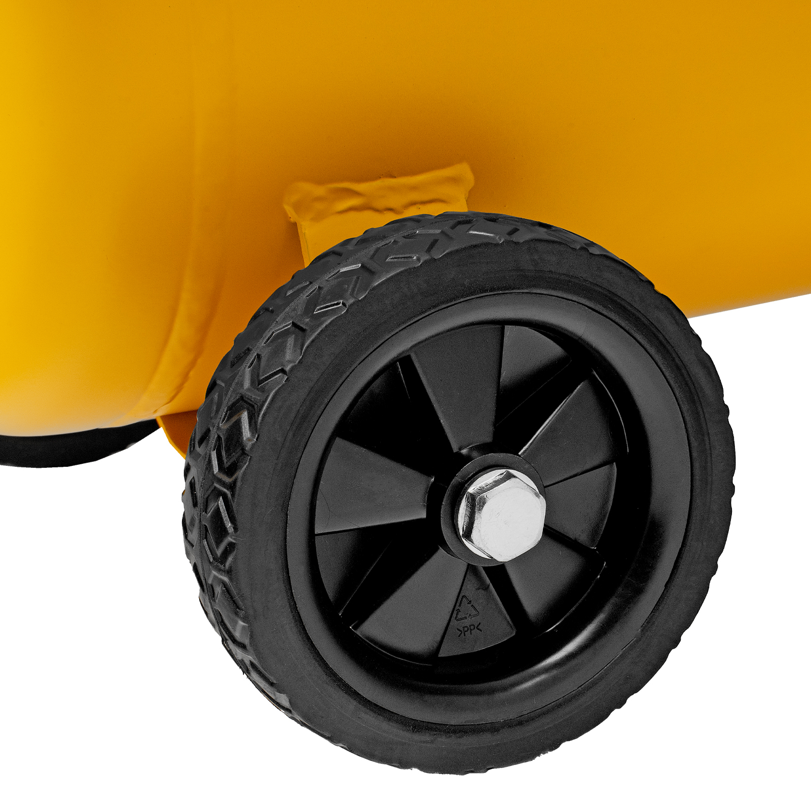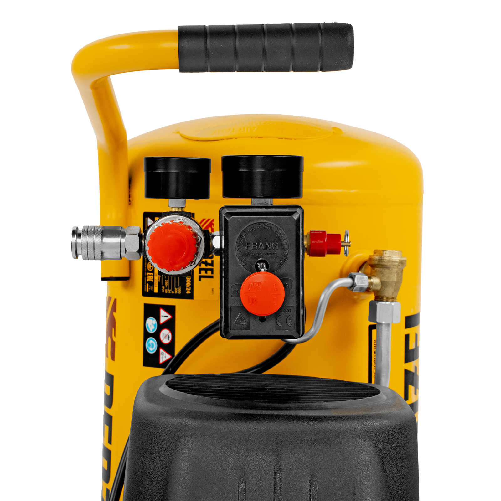 - Мобильность — компрессор, оснащенный ручкой и колесами, весит 22,6 кг, что упрощает его транспортировку.