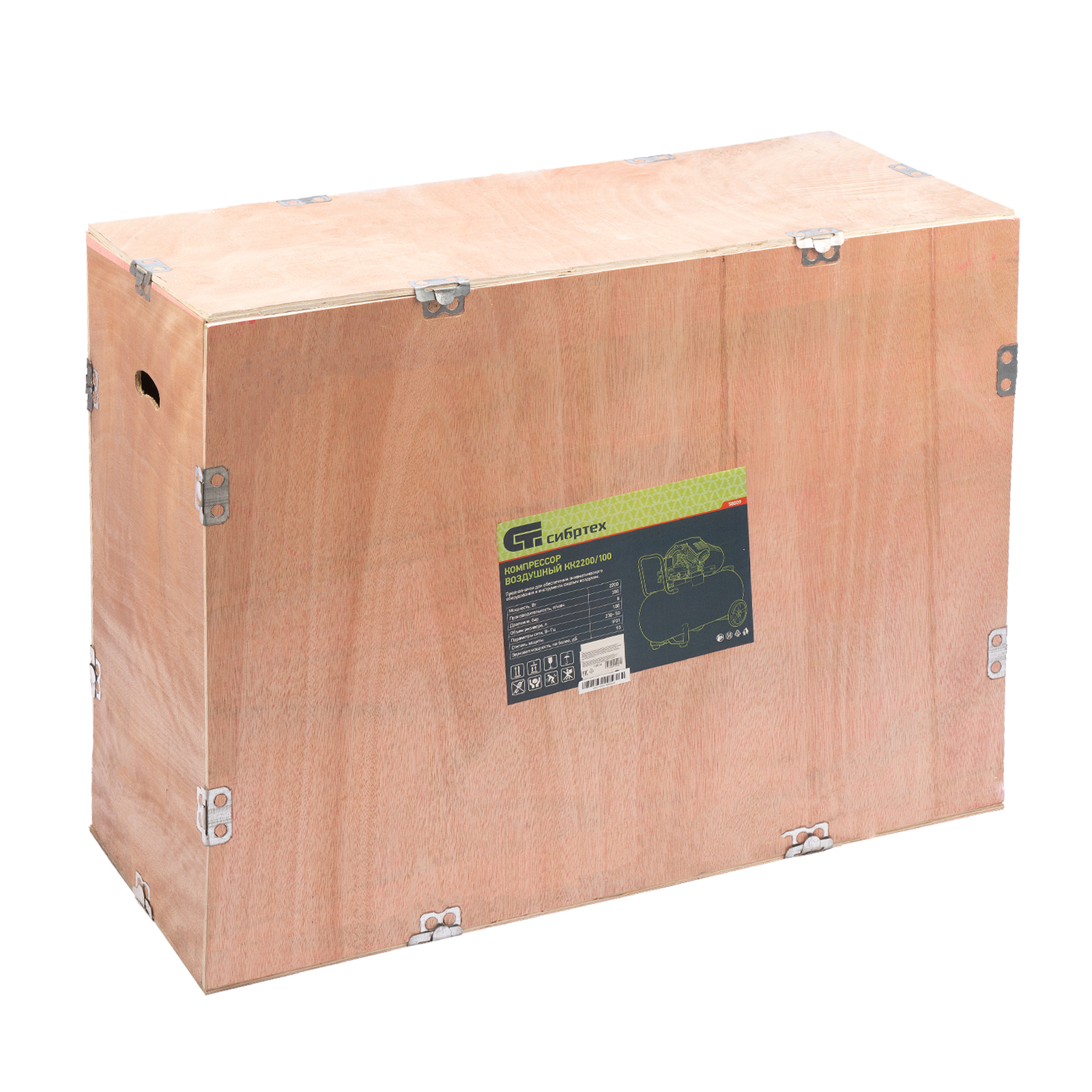 Компрессор воздушный КК-2200/100, 2,2 кВт, 350 л/мин, 100 л, прямой привод, масляный Сибртех