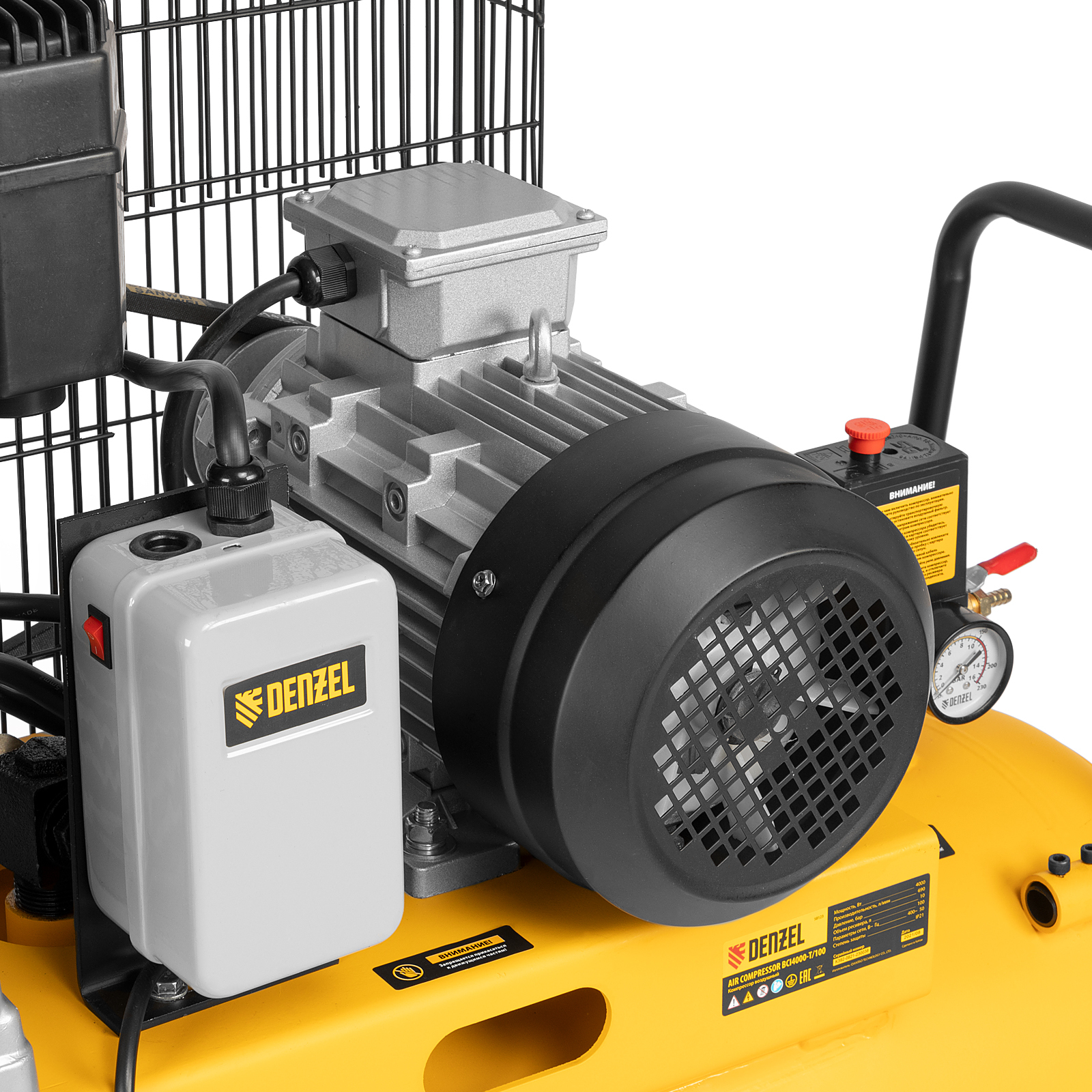 Компрессор воздушный, ременный привод BCI4000-T/100, 4.0 кВт, 100 литров, 690 л/мин Denzel