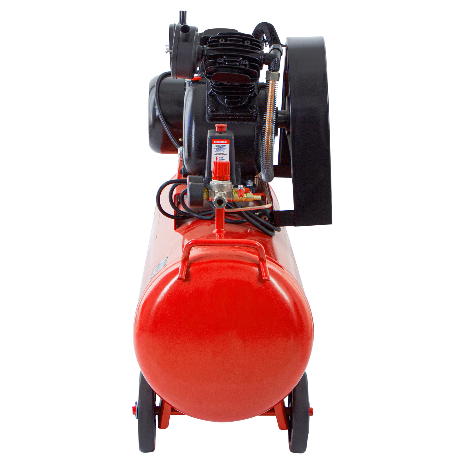 - Мобильность — для удобного перемещения компрессор оснащен колесами и ручкой.