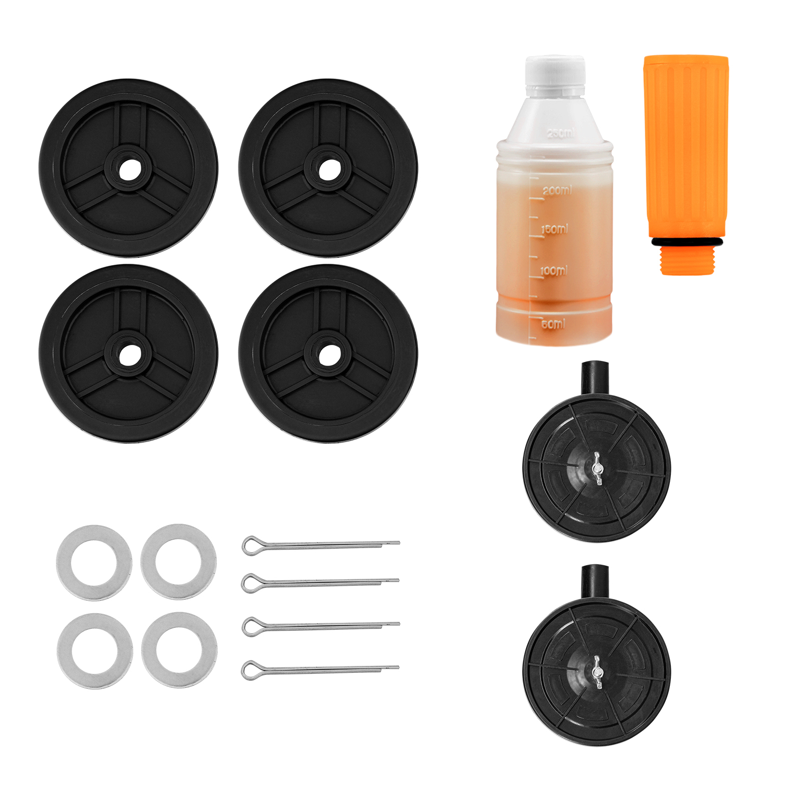 Компрессор - 1 штКолесо - 4 штКомплект крепежа - 1 штСапун - 1 штМасло компрессорное минеральное марка DAA100 - 500 млРуководство по эксплуатации - 1 штГарантийный талон - 1 шт