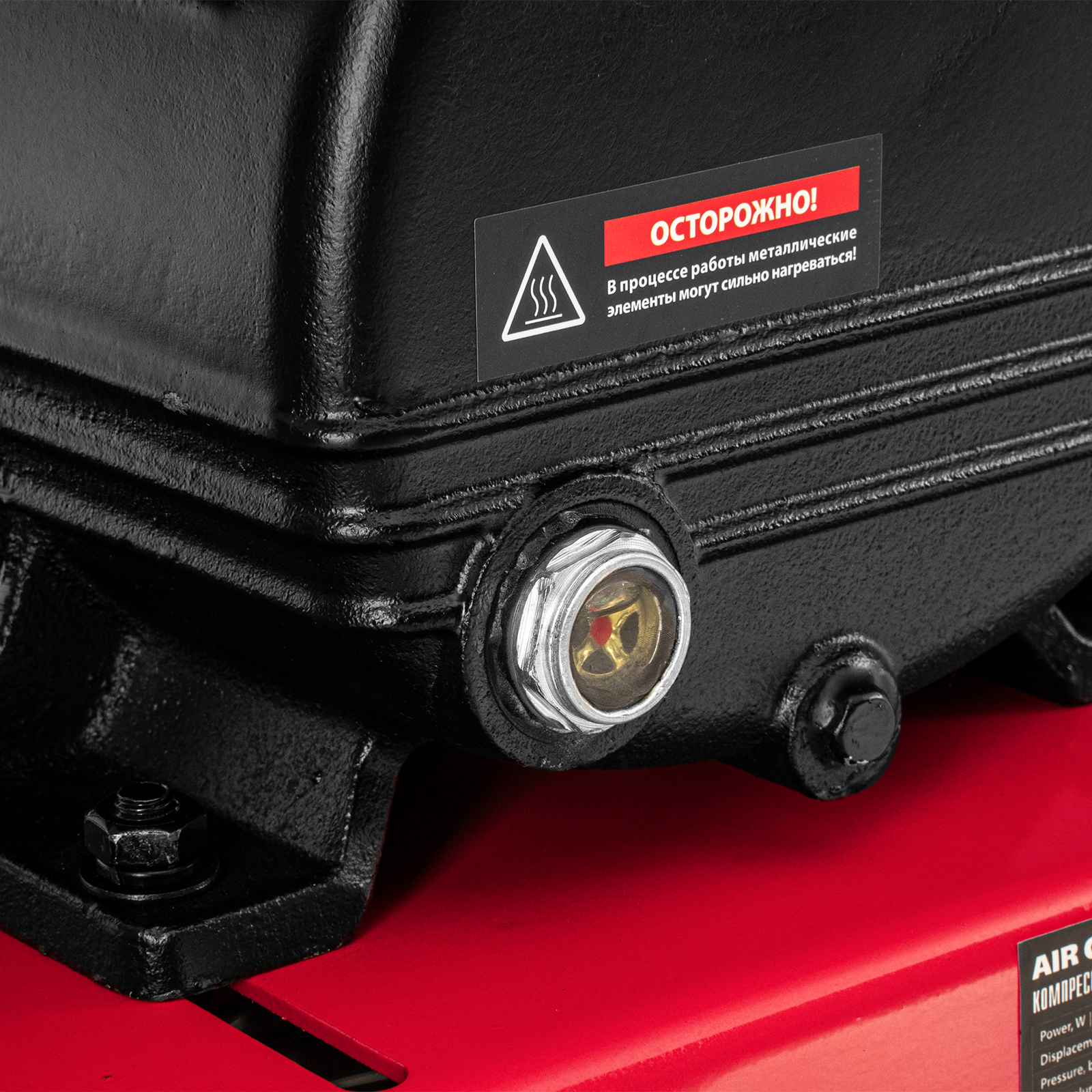 - Удобный контроль давления в ресивере и пневмомагистрали — компрессор оснащен двумя механическими манометрами.