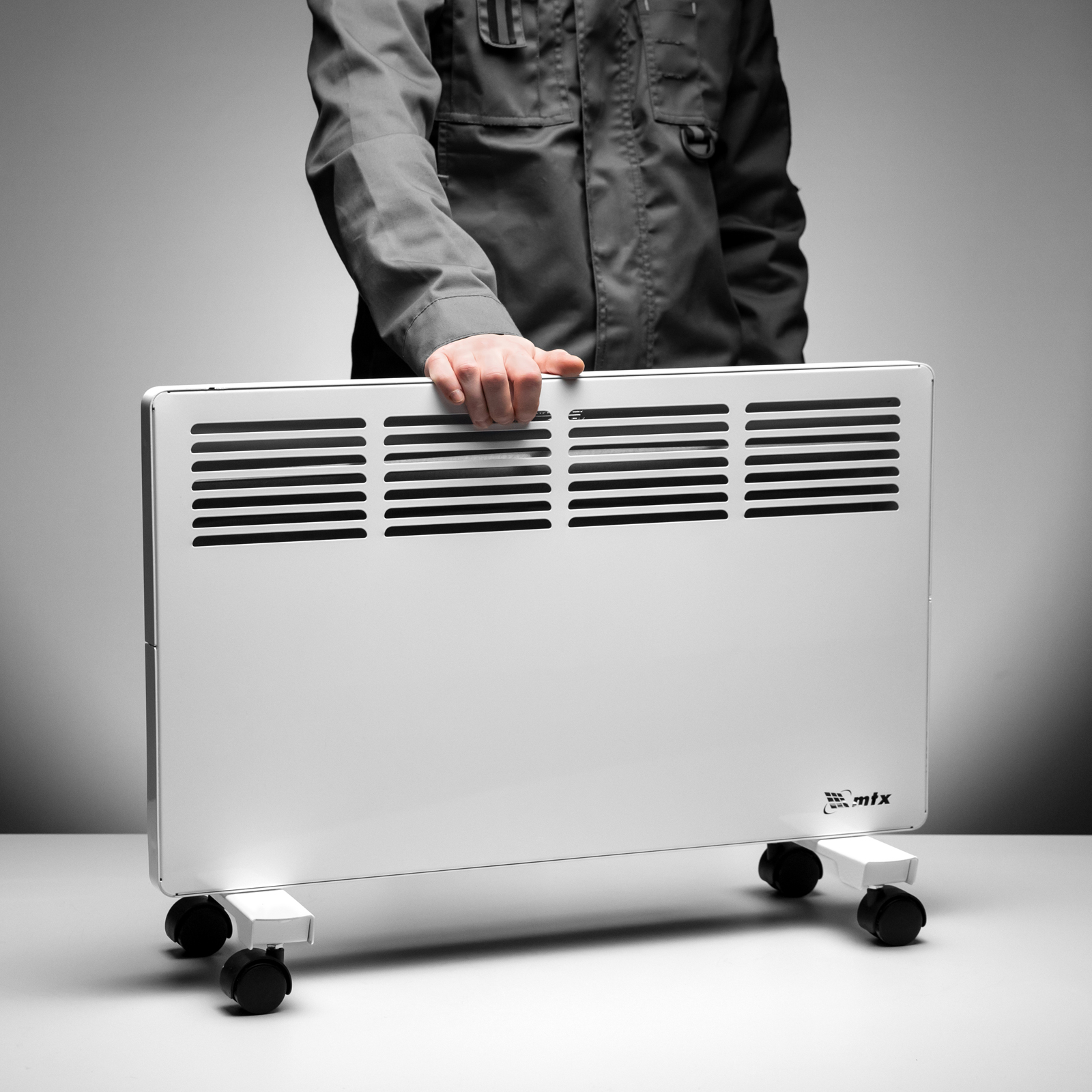 Конвектор электрический MTX KM-2000.2 98126 с X-образным нагревателем, колесами и термостатом, мощностью 2000 Вт, предназначен для использования в закрытых помещениях: квартирах, офисах, на производствах, в общественных местах и т.д. Рекомендуемая площадь обогрева составляет 25 кв.м. Х-образный нагревательный элемент обеспечивает быстрый и равномерный прогрев помещения до необходимой температуры, при этом не сушит воздух.