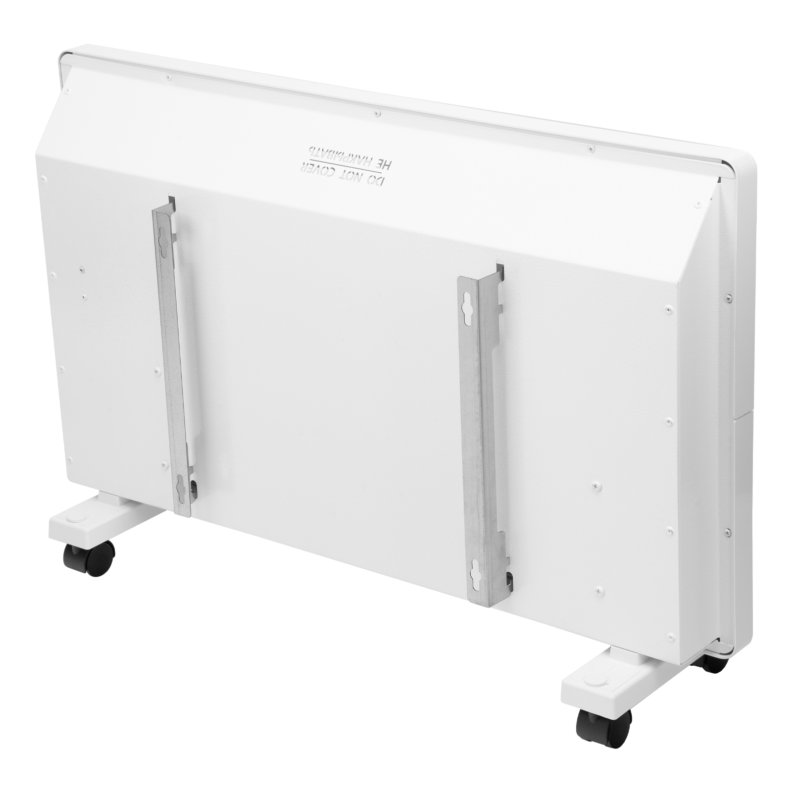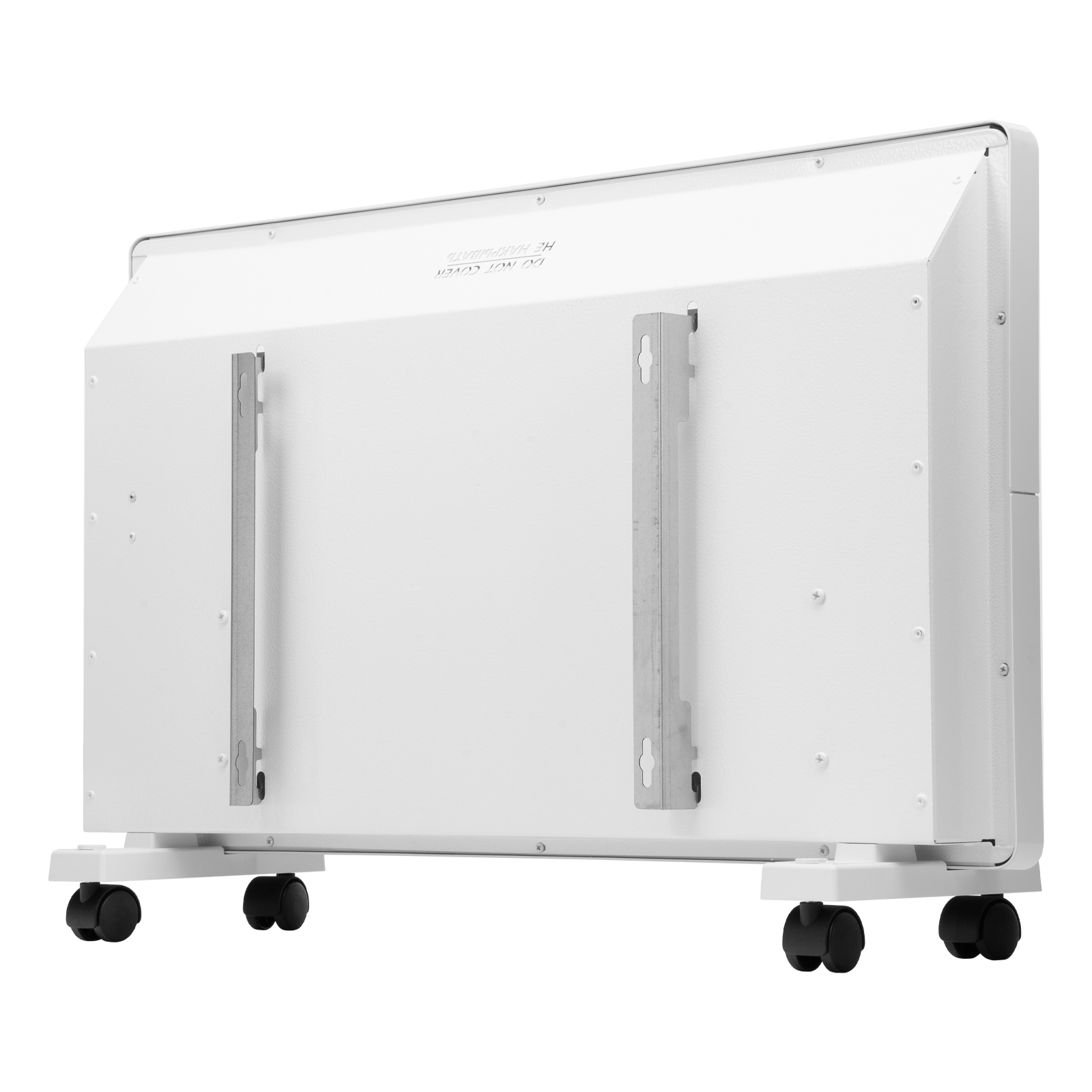- Два варианта монтажа — конвектор можно расположить на полу или повесить на стену (колесные пары и кронштейн входят в комплект поставки).