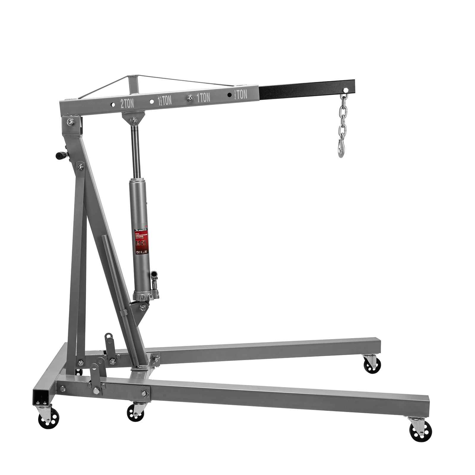 Складной гидравлический кран Matrix 567325 грузоподъемностью до 2 т, поставляющийся комплектом из 2 частей, — мобильное устройство для подъема на высоту с 25 до 2200 мм и перемещения тяжелых элементов автомобильного оборудования. Устройство изготовлено из стали и выдерживает повышенные нагрузки. Величина вылета стрелы регулируется в зависимости от массы груза. Кран совместим с траверсой Matrix 567275. Используется в автосервисах для демонтажа и монтажа автомобильных двигателей, будет полезен и в частном гараже.