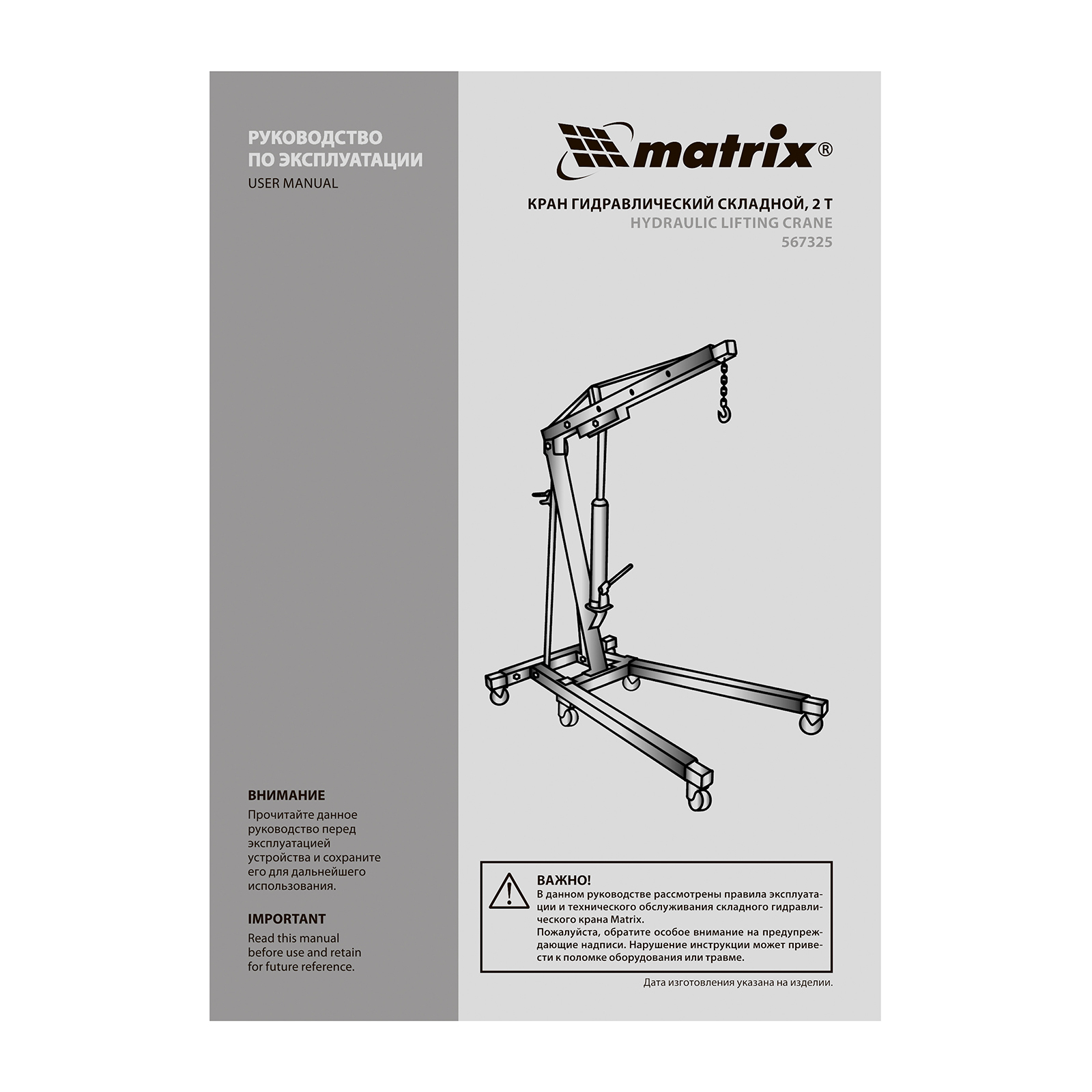 Кран гидравлический, 2 т, H подъема 25-2200 мм, складной (комплект из 2 частей) Matrix