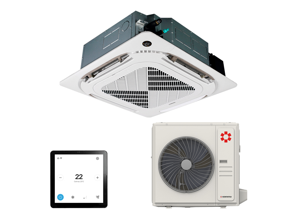 Сплит-система кассетного типа Kentatsu KOMASU — это современные инверторные технологии, которые позволяют решать задачи по кондиционированию коммерческих, административных и офисных зданий. Оригинальный современный дизайн нели внутренних блоков органично впишется в любой интерьер.