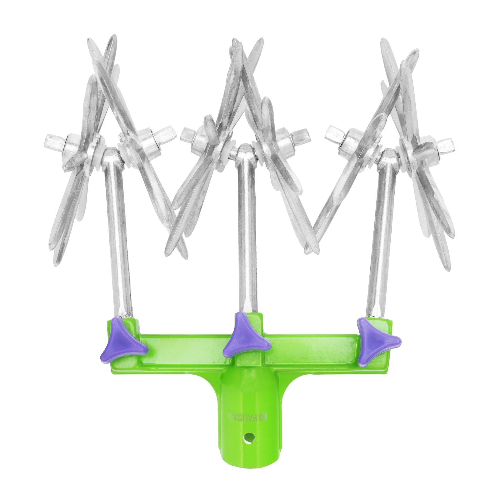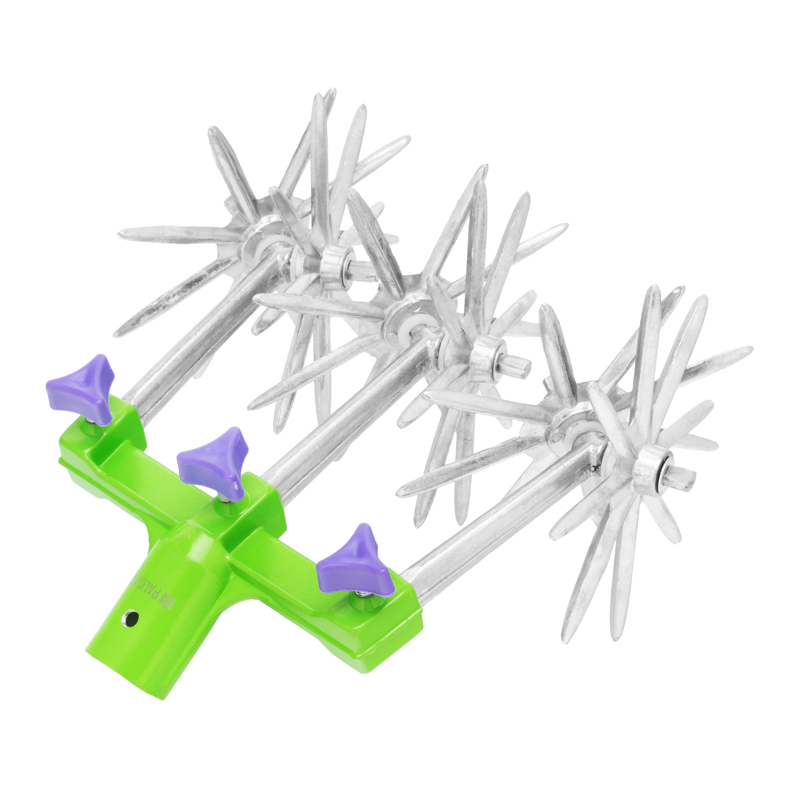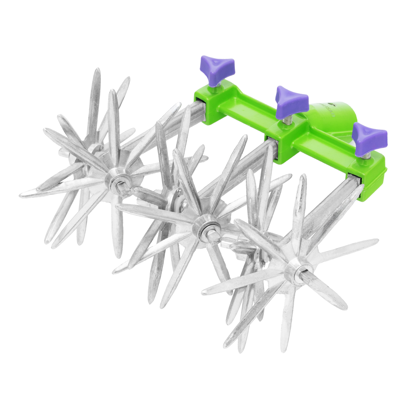 - Съемная рукоятка позволяет с удобством рыхлить грунт на небольших участках одной парой колес.