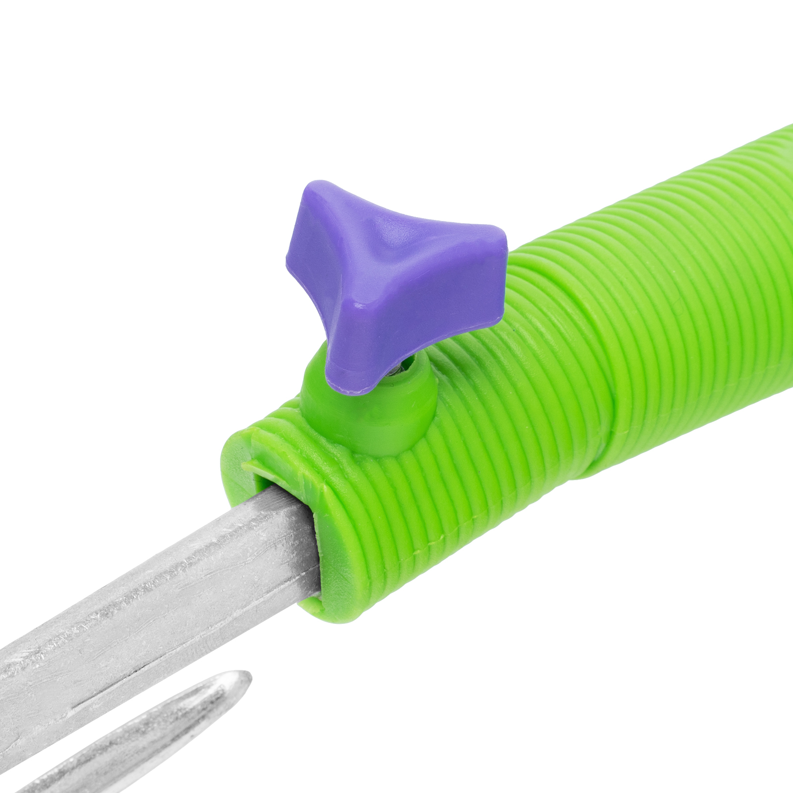 - Рабочая часть выполнена из коррозионностойкого алюминиевого сплава, а рукоятка — из полипропилена, что гарантирует долговечность культиватора.