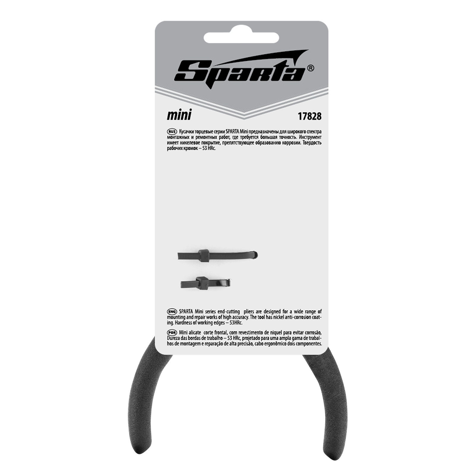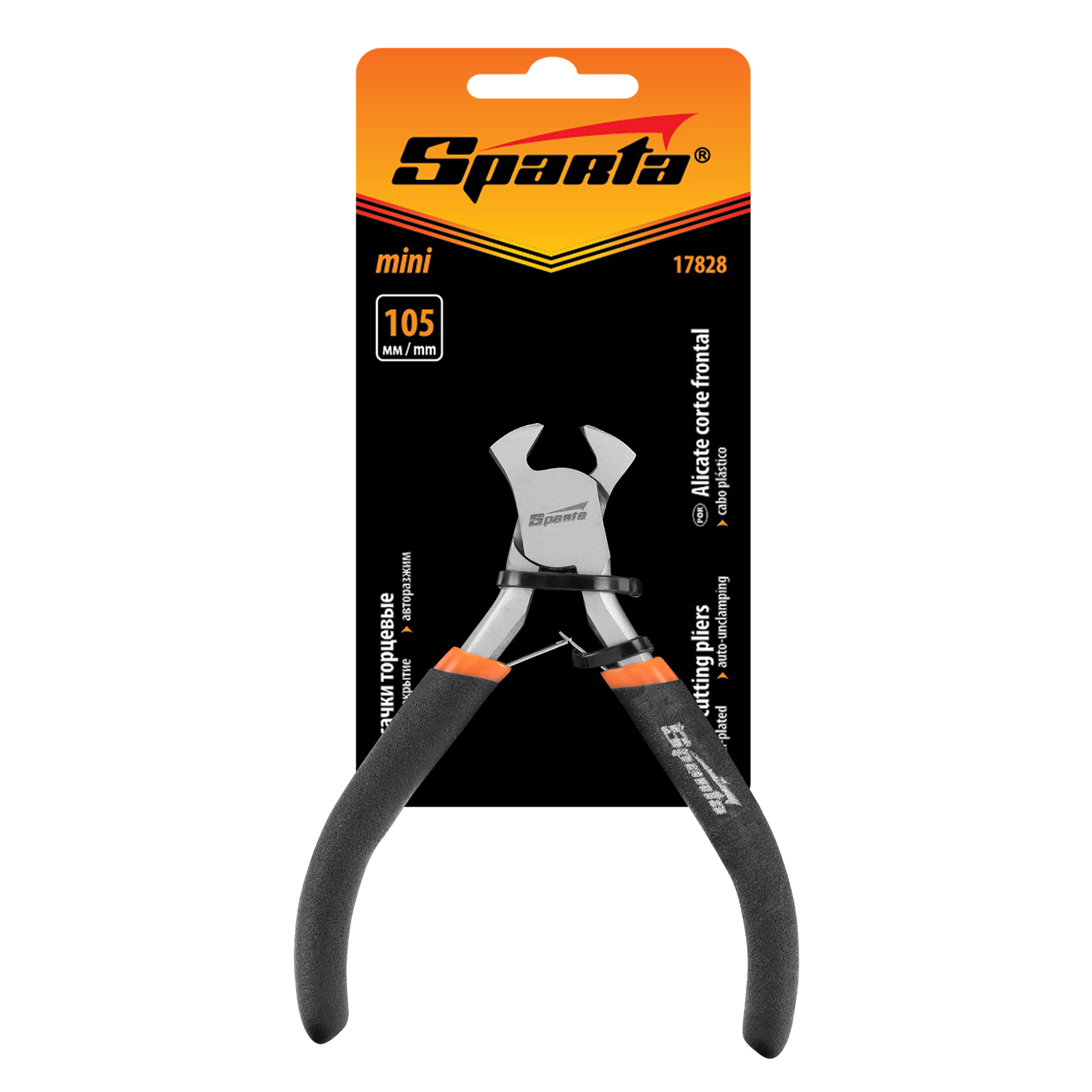 <p>Никелированные торцевые кусачки Sparta Mini 17828 длиной 105 мм, с авторазжимом, используются для выполнения мелких слесарно-монтажных работ. Успешно перекусывают проволоку и небольшие провода. Авторазжим мгновенно возвращает губки в исходное положение, экономя время и силы мастера. Кусачки пригодятся на строительной площадке, в слесарной мастерской, будут полезны дома и в гараже.</p><h2>Преимущества</h2><ul><li>Прочность и износостойкость — рабочие части выполнены из инструментальной стали У7.</li><li>Долговечность — никелированная поверхность устойчива к коррозии.</li><li>Высокий ресурс — кромки твердостью 53 HRC хорошо держат заточку.</li><li>Комфортная работа — обрезиненные рукоятки не выскальзывают из руки.</li><li>Компактность — инструмент удобен для хранения и транспортировки.</li></ul>