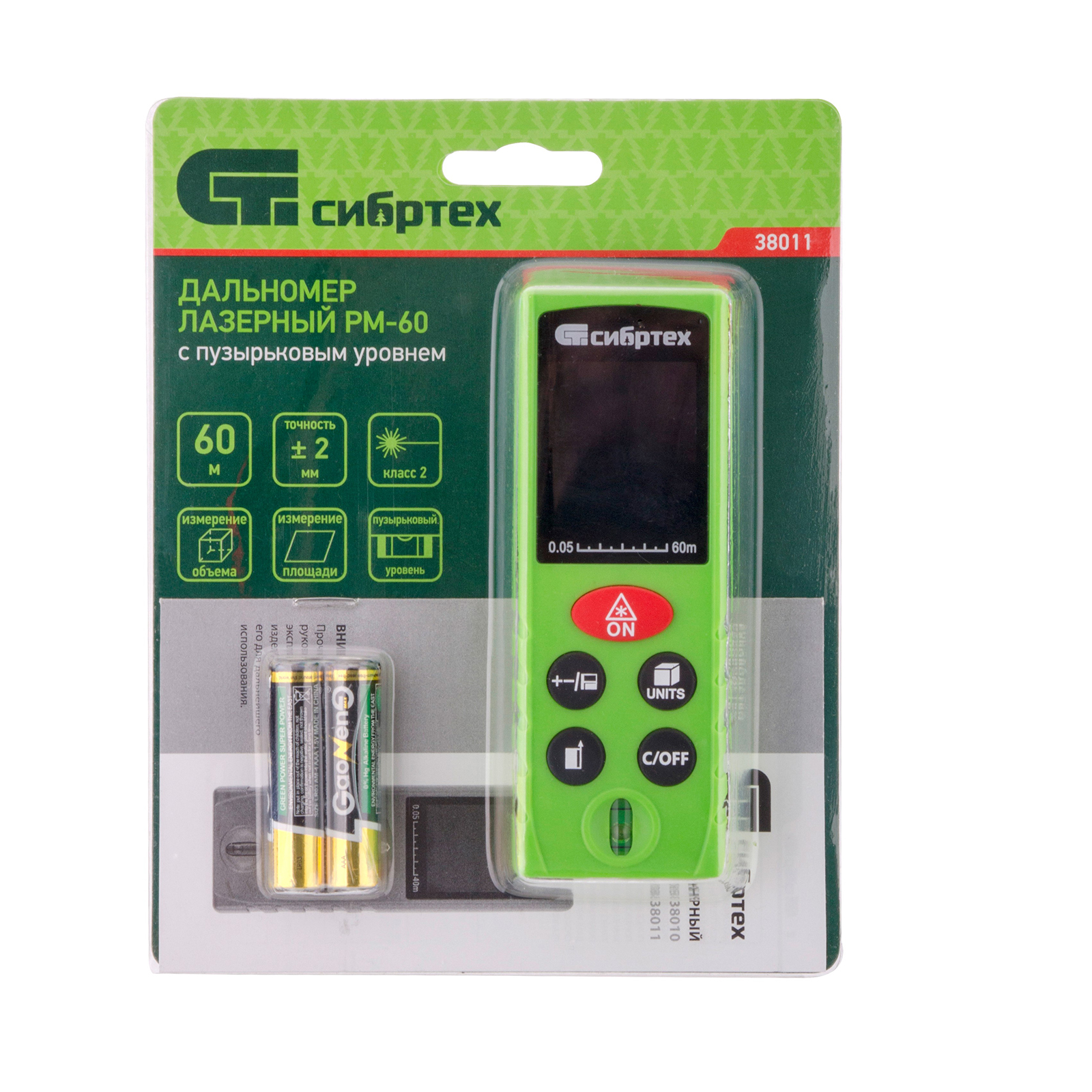 Лазерный дальномер PM-60,60 м,с пузырьковым уровнем Сибртех