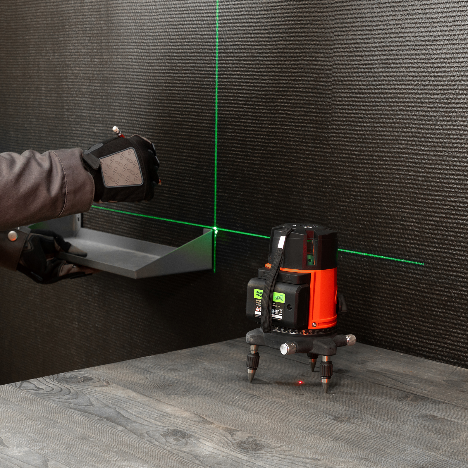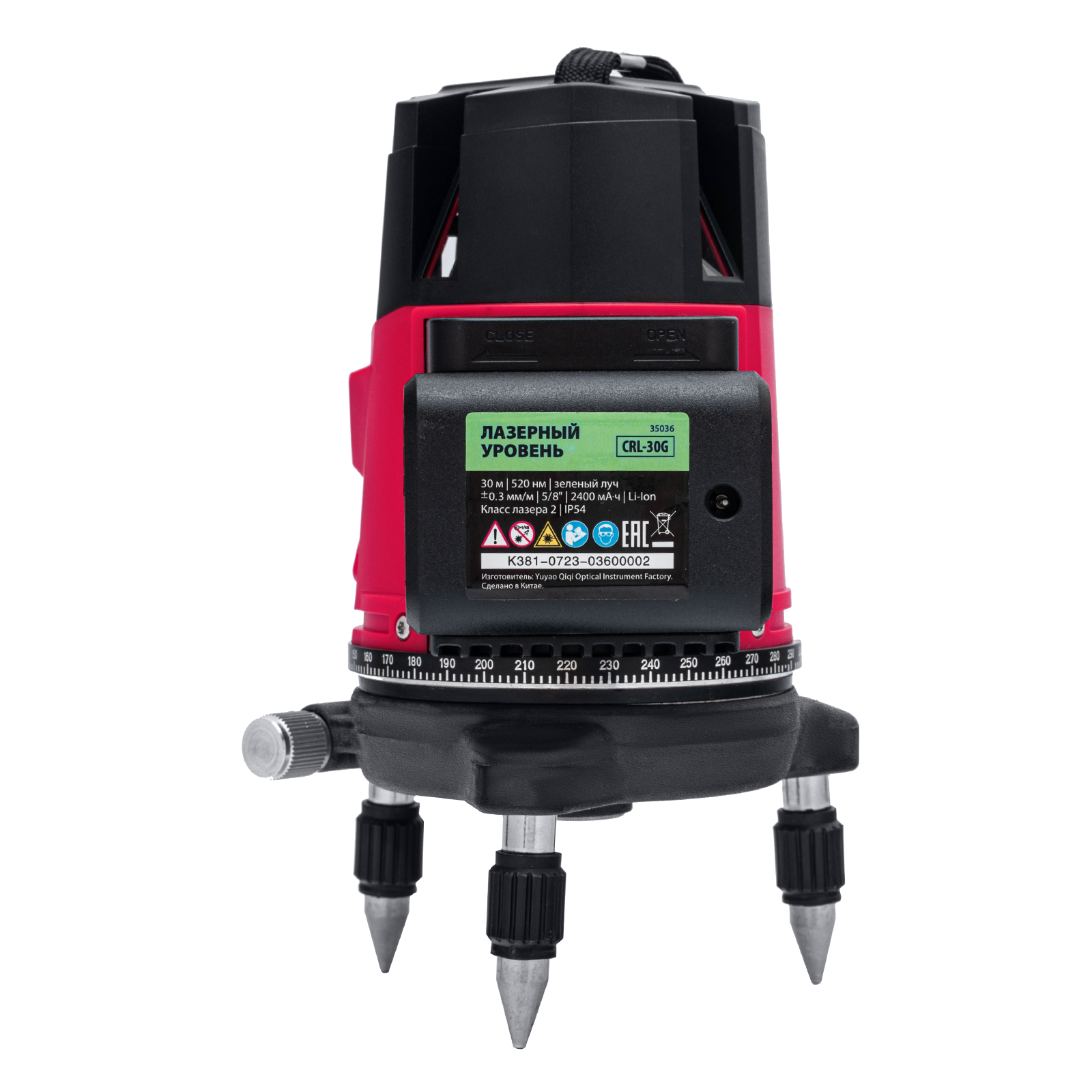 Лазерный уровень CRL-30G, 30 м, зеленый луч, акк. Li 2400 mah, резьба 5/8" MTX