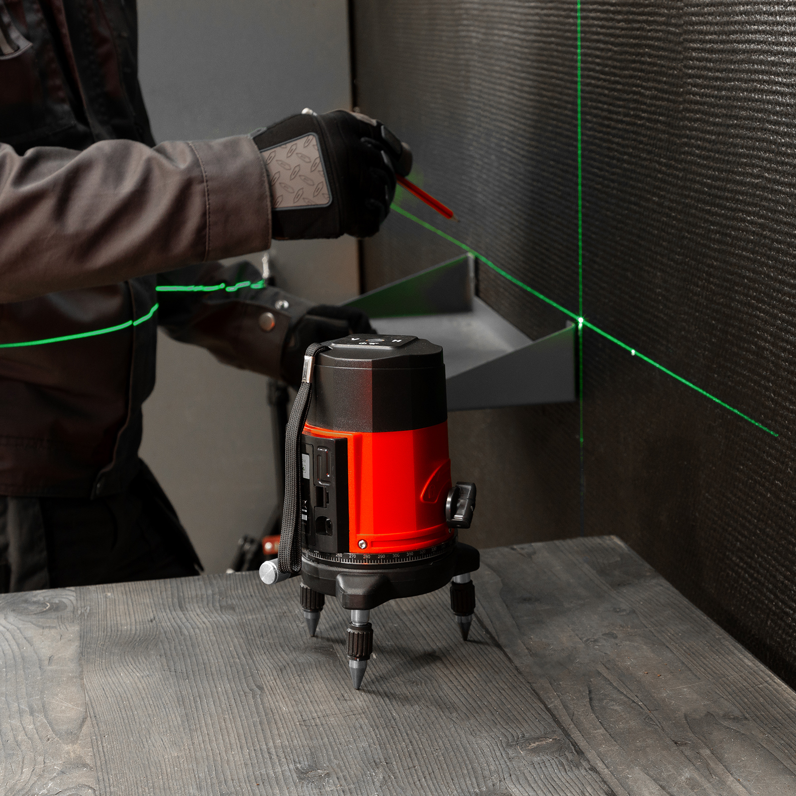 - Поворотное основание — можно плавно и точно наводить вертикальные лучи на нужный участок поверхности.