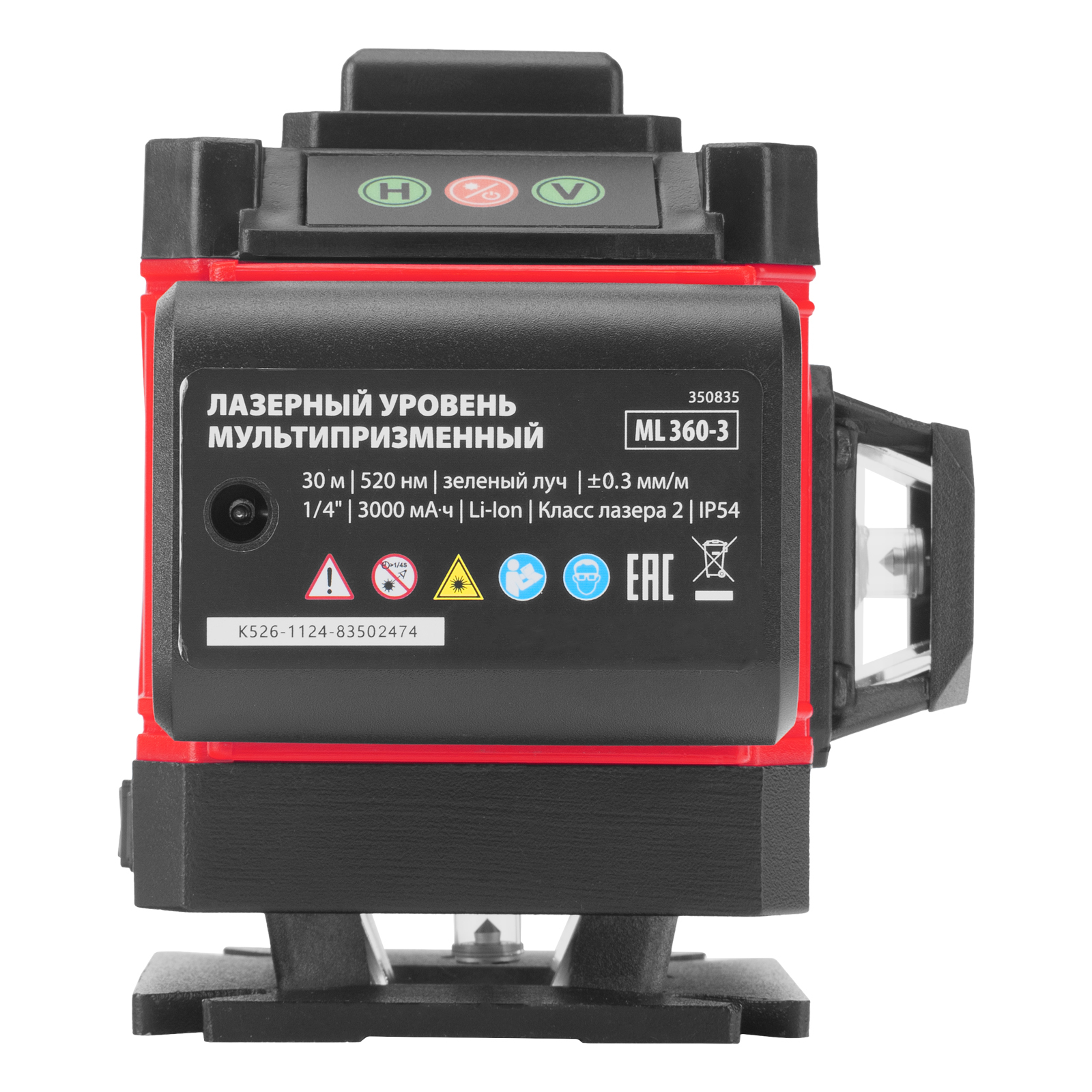 Лазерный уровень м-призм. ML 360-3 Pro SET, 30 м, акк. Li 3000 мАч, состоит из 2 частей// MTX