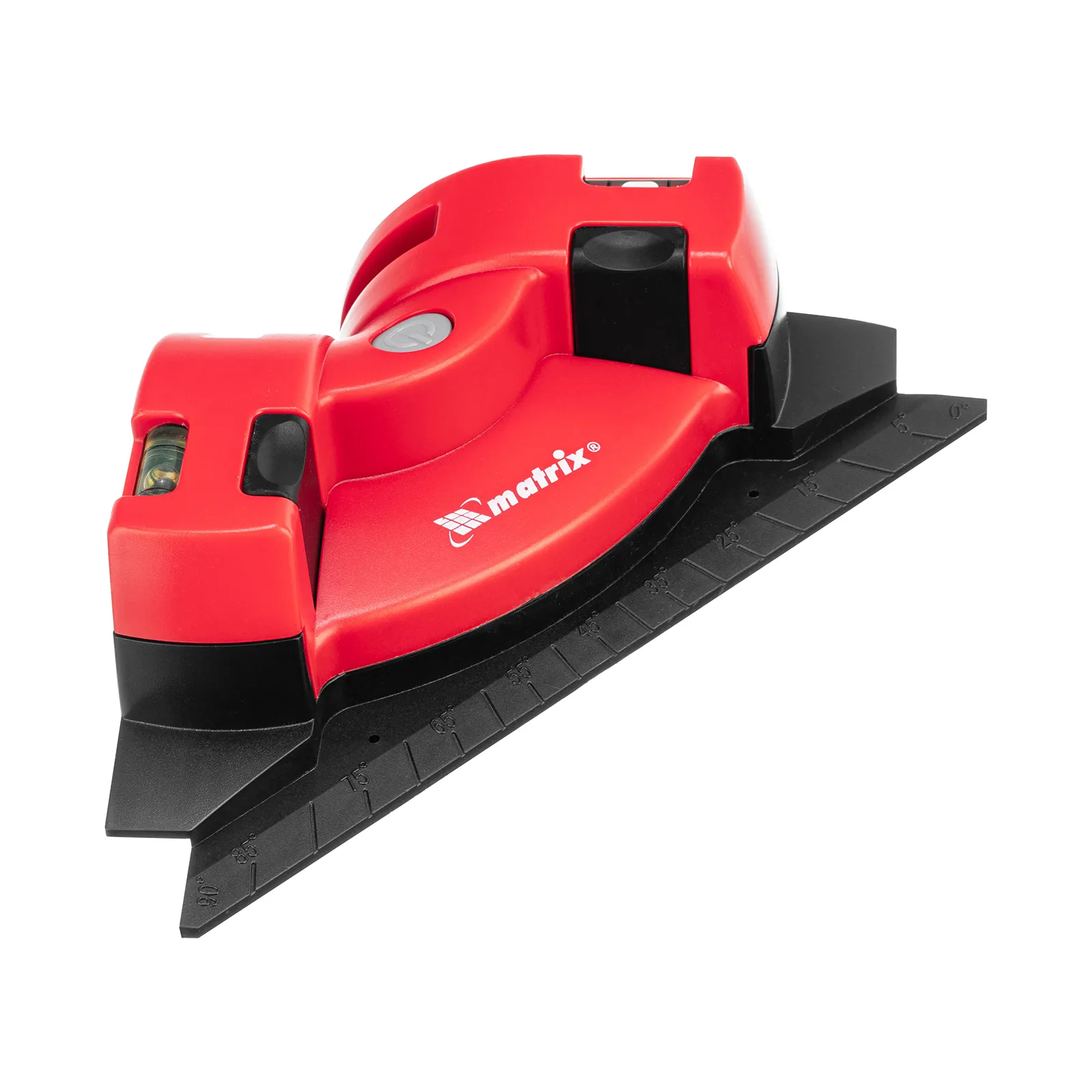 Лазерный уровень Matrix 35007 в форме угольника предназначен для разметки поверхностей по горизонтали, вертикали и диагонали. Проецирует 2 лазерные линии под углом 90 градусов на поверхность, параллельно которой он установлен. Угловая форма позволяет использовать инструмент для укладки покрытия на полу, например, ламината, паркета или плитки, или для отделки стен, планировки розеток и выравнивания конструкций.