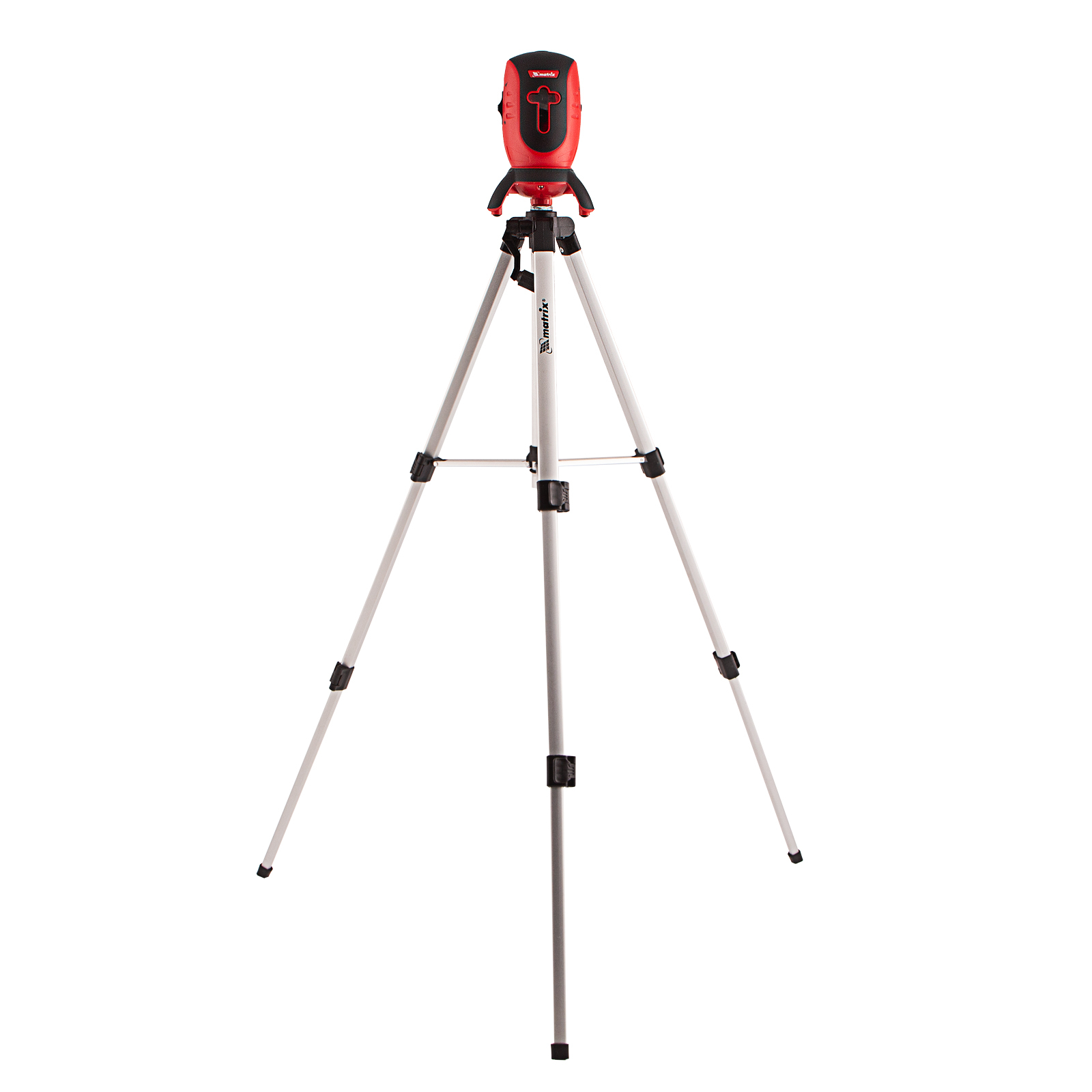 - Штатив в комплекте — уровень можно установить на высоте до 1 м и работать в одиночку.