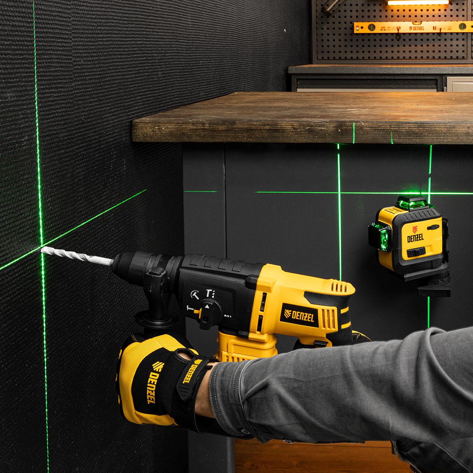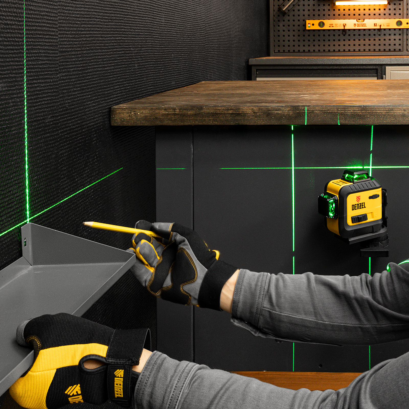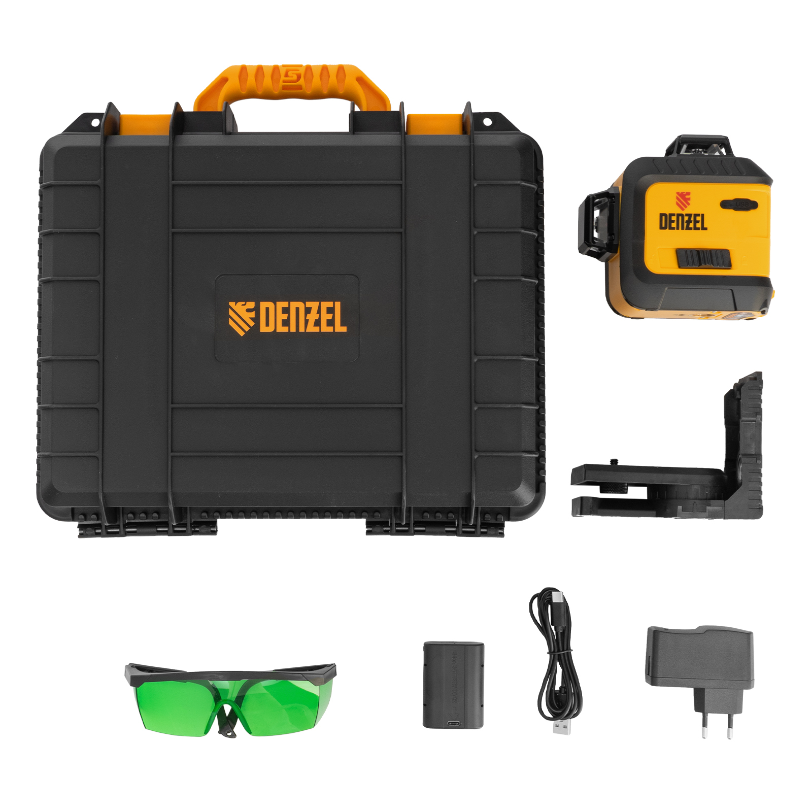 Лазерный уровень мультипризм. LXI 360-3 Green, 30 м, 520 Нм, акк. Li 2800 mAh, резьба 1/4" Denzel