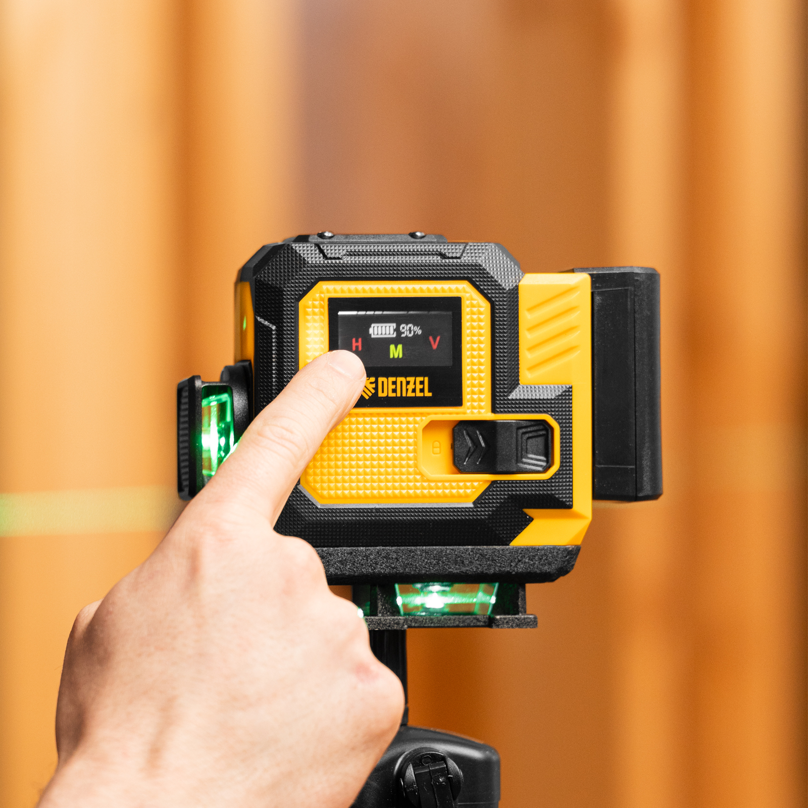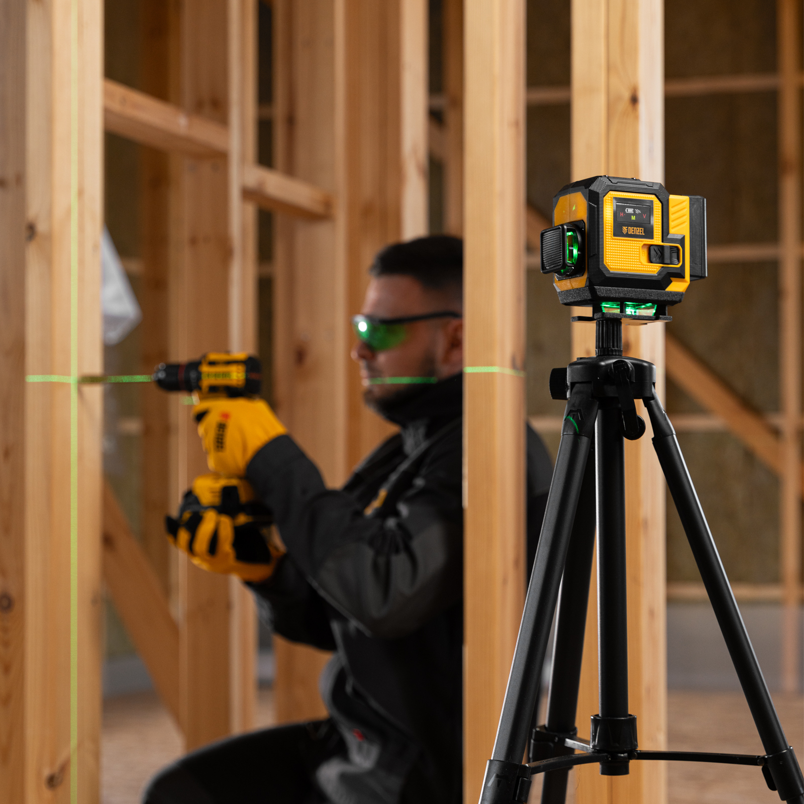 Лазерный уровень мультипризменный DLV-360-3T, 30 м, зеленый луч, Li-Ion 2,4 Aч, штатив // Denzel