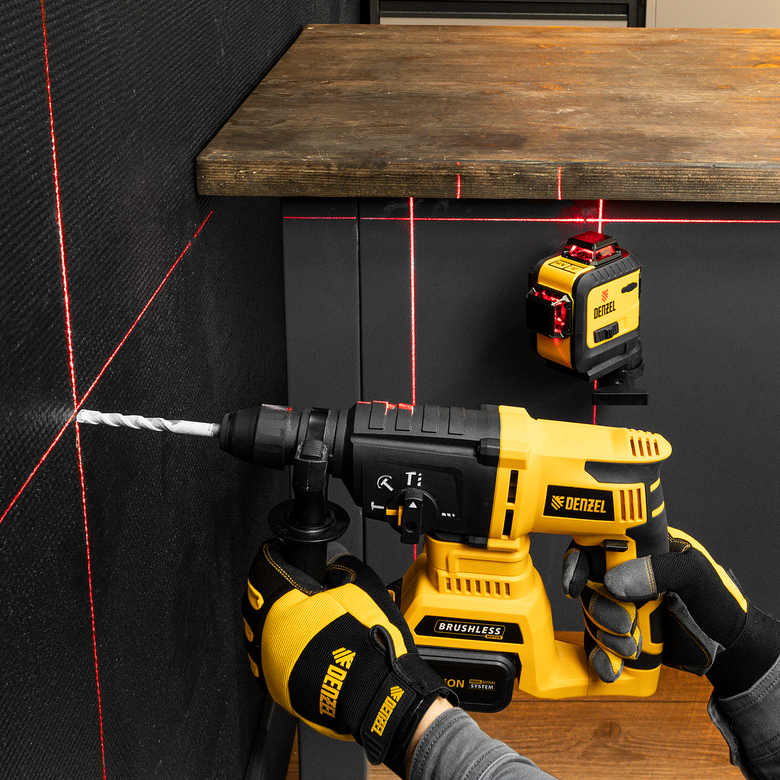 Лазерный уровень мультипризменный LX 360-3 Red, 30 м, 635 нм, аккумулятор Li 2800 мАч, резьба 5/8" Denzel