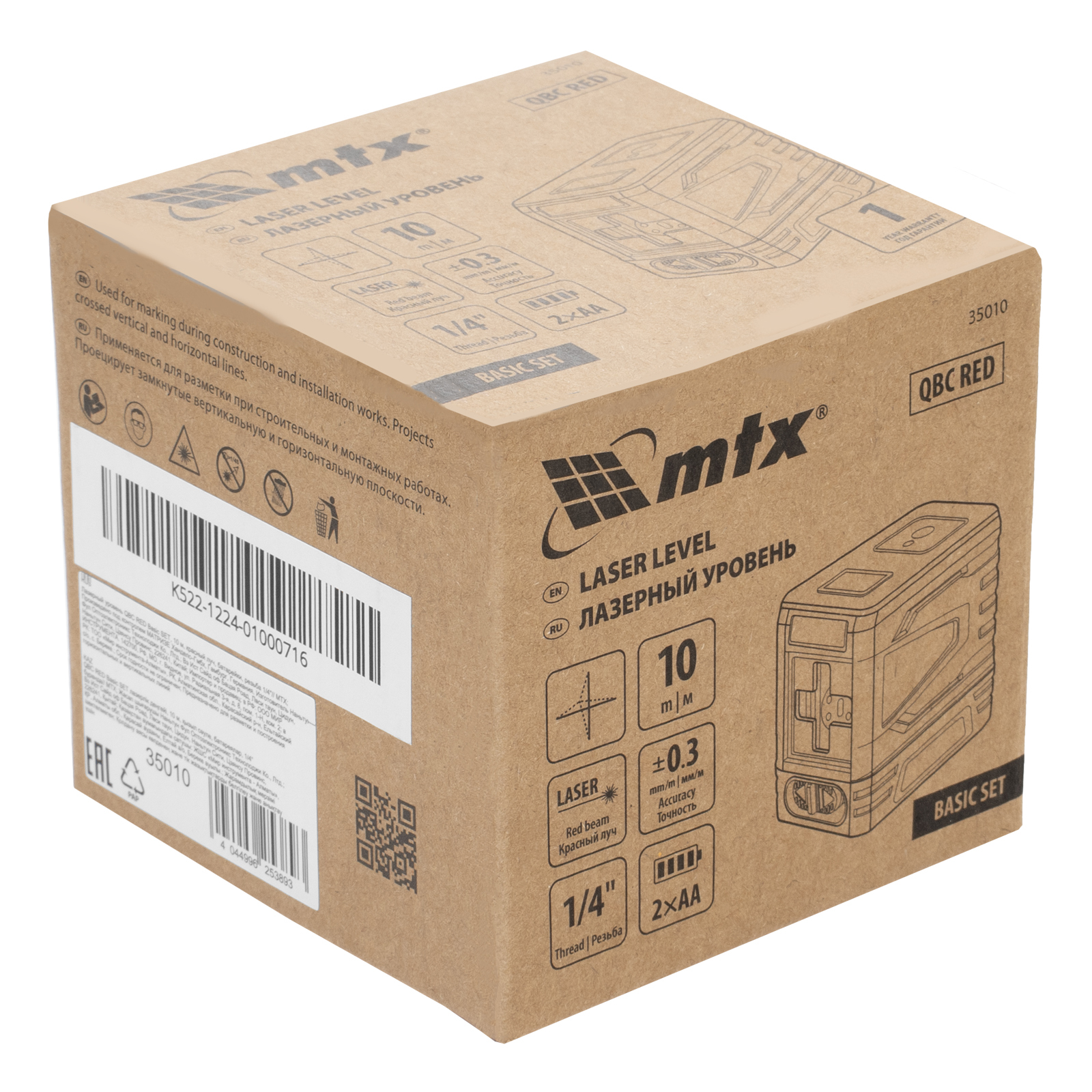 Лазерный уровень QBC RED Basic SET, 10 м, красный луч, батарейки, резьба 1/4" MTX