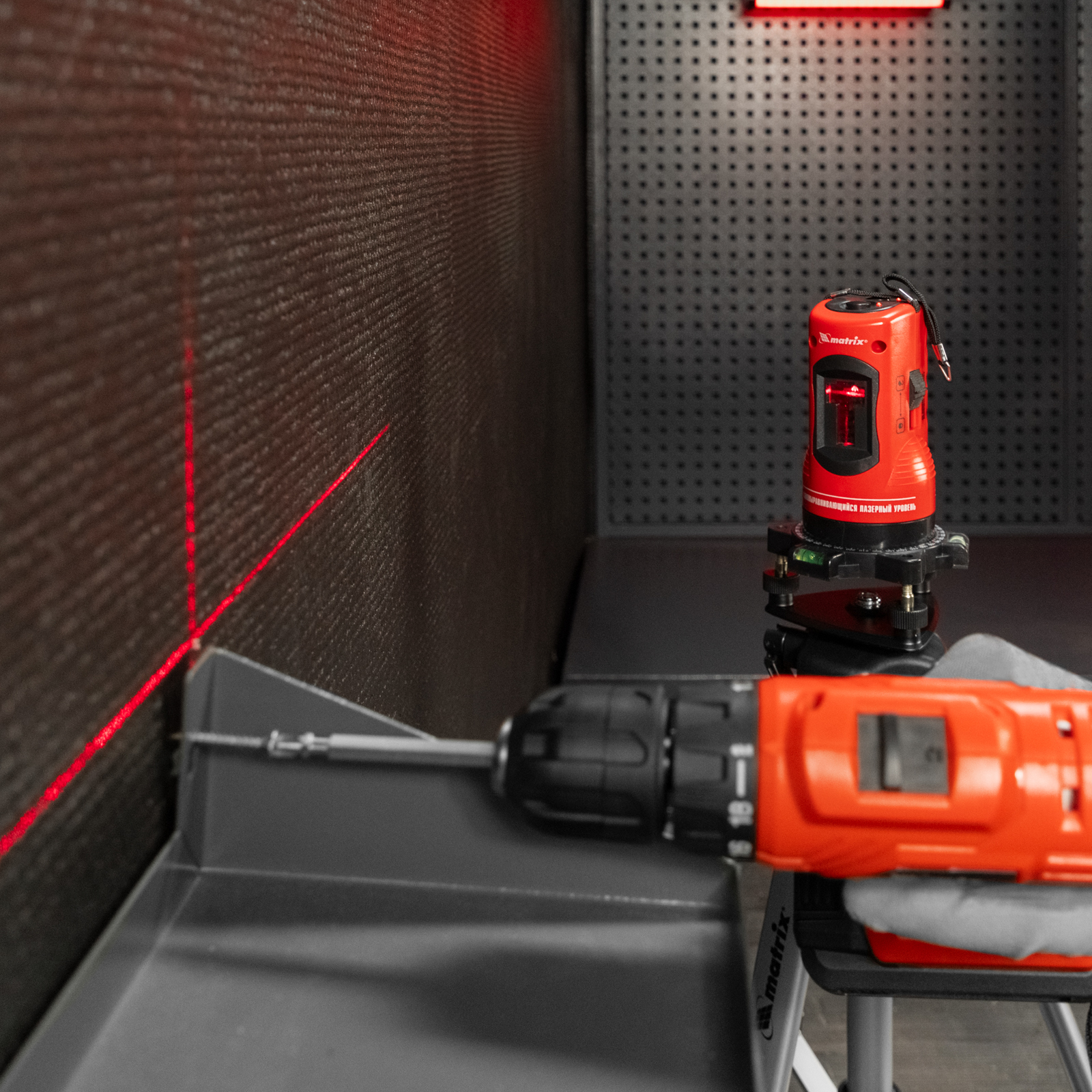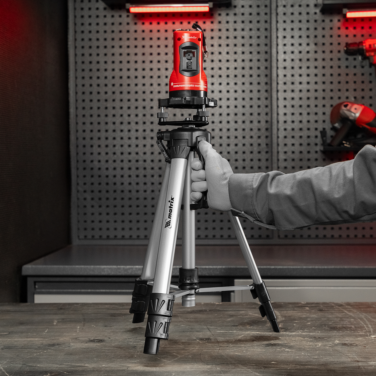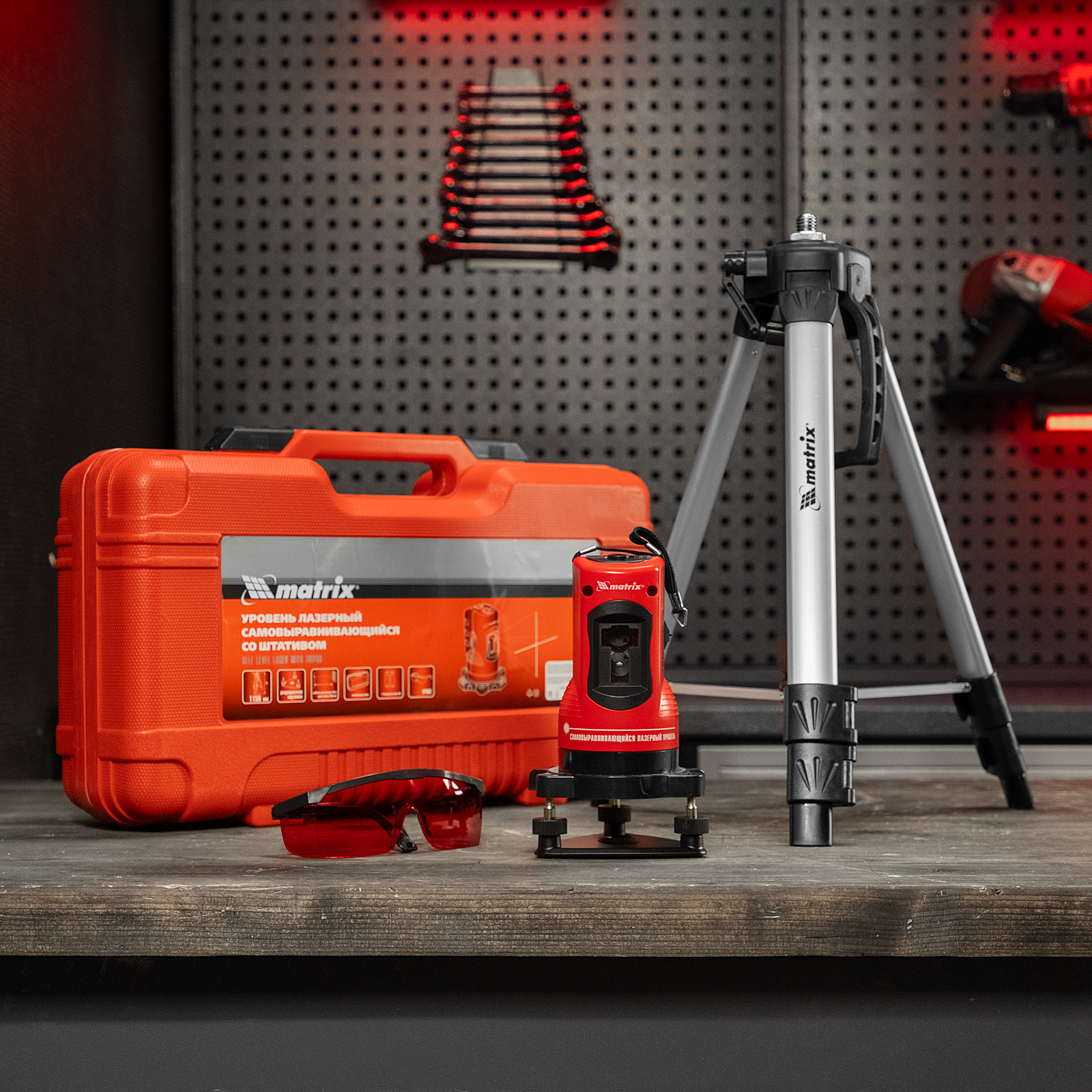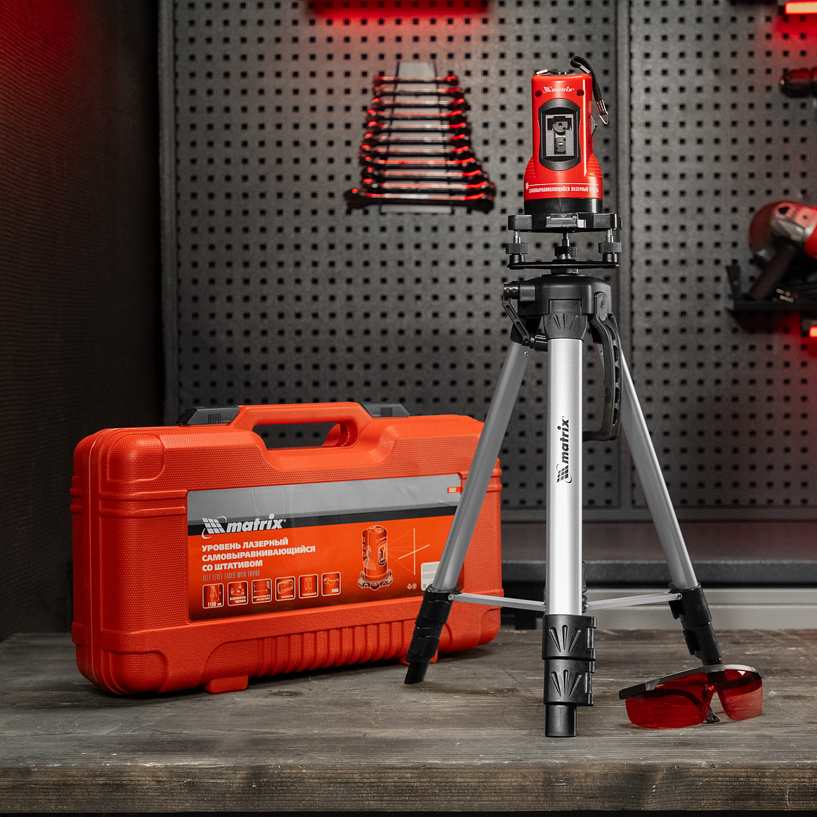 Лазерный уровень самовыравнивающийся, 150 мм, штатив 1150 мм, набор в пластиковом кейсе Matrix